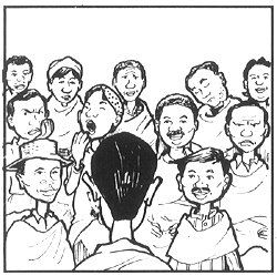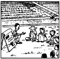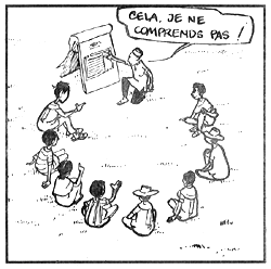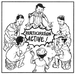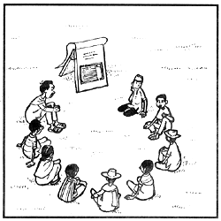 ![]() | Une approche participative pendant laquelle les participants identifient eux-mêmes leurs problèmes et trouvent également des solutions est considérée comme l'une des meilleures méthodes pour une séance de vulgarisation en groupe, comparable au dialogue pour une séance de vulgarisation individuelle. |