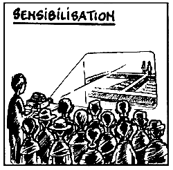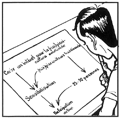 Une sensibilisation par petits groupes est plus efficace que lorsqu'elle est destinée au grand public. Une série de diapositives, moyen de sensibilisation pour petits groupes, est disponible à la cellule de Vulgarisation à l'attention des producteurs/animateurs.