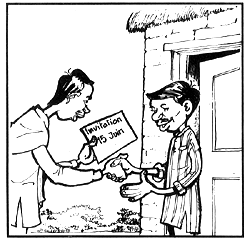 ![]() | Afin de créer un premier intérêt pour la (rizi)pisciculture améliorée, il faut faire de la sensibilisation (= information). Les (rizi)pisciculteurs traditionnels constituent le groupe cible pour les amener à démarrer la (rizi)pisciculture améliorée. La sensibilisation pourra être effectuée à l'attention du grand public, aux petits groupes et au niveau individuel. En général, une sensibilisation aux petits groupes de 25–30 personnes est la manière la plus efficace au point de vue temps investi-résultat, surtout quand on pratique une approche de participation active. |
