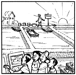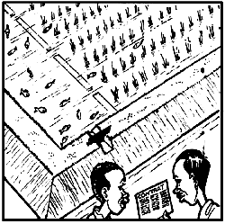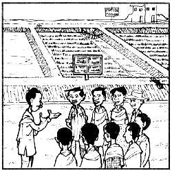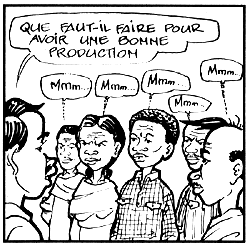 ![]() | Le jour de la démonstration - éventuellement le jour de la récolte - le producteur/animateur donne une brève introduction dans laquelle il explique les objectifs de la séance qui consistent à faire comprendre aux (rizi)pisciculteurs familiaux les avantages de la (rizi)pisciculture améliorée et à les convaincre de les mettre en application. Il commence par inventorier les problèmes (rizi)piscicoles des participants en leur posant des questions et en les aidant à trouver euxmêmes les solutions pendant la séance de démonstration. |
