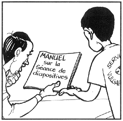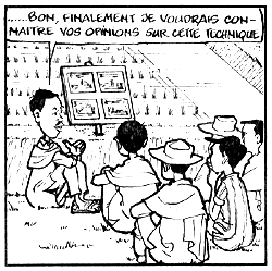 images”. Attention : la boîte à images, comme pour les affiches techniques, se prête à des formations de groupe, avec un nombre de participants restreint. L'efficacité de ces deux matériels d'appui, en particulier celle de la boîte à images est considérablement réduite quand le nombre de participants est trop élevé (plus de 10 personnes à la fois). |