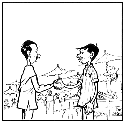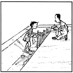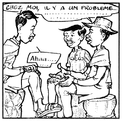 pratiquant de (rizi)pisciculture au marché et ils engagent une conversation, ou des