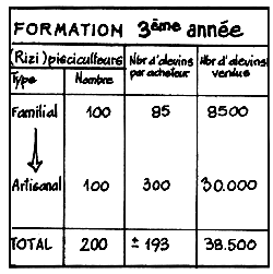 ![]() | En revanche, suite à la vulgarisation par la CIRRH/ projet, il existe également des paysans qui s'intéressent à la (rizi)pisciculture améliorée préconisée par cet organisme et qui veulent améliorer leur récolte. Le niveau d'application des techniques est encore faible avec des résultats que l'on peut qualifier, pour l'instant, de “marginaux”. Pour cela, nous pouvons les classer comme (rizi)pisciculteurs familiaux. Actuellement, sur ces mêmes régions des Hautes-Terres, on estime leur nombre à environ 25.000. |