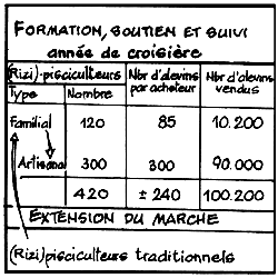 activité. Exemple : un rizipisciculteur qui a acheté 85 alevins et qui obtient une mauvaise récolte sera beaucoup moins motivé pour acheter des alevins pour la campagne suivante. |