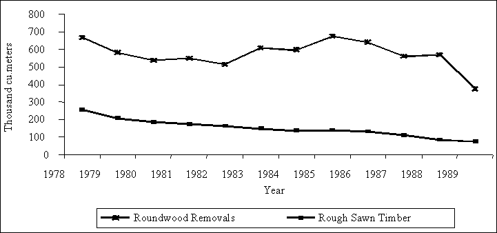 A large number of generally small individual mills, over half of which are portable mills, process the natural forest timber harvest. Approximately 180 mills qualified for the 1992-1996 allowable cut. This allocation enables the mills to either progressively wind-down or to use alternative timber sources. However, about 260 mills are currently registered, many of which process very small volumes of timber. Despite the consistently high number of registered mills, many have ceased processing indigenous timber. Six larger companies now process logs from natural forests into veneer and other products.