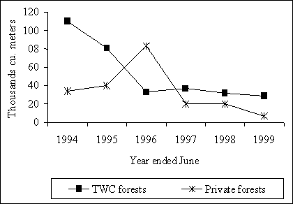 After 1987, new policies and legislation focused on private forests. Timber harvests have not been banned in these forests. Commercial timber harvests are, however, restricted by export, sawmilling, and sustainable forest management constraints.