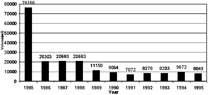 Before 1990, the STC operated 16 sawmills and 35 timber sales depots. In 1992/1993 the STC closed down 8 sawmills and 16 timber sales depots mainly because of timber shortages, and partially due to the reduction of Mahaweli forest clearing areas and security problems in the north and east.