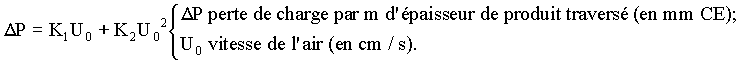 La perte de charge provoquée par la traversée du grain pour un écoulement unidimensionnel est donnée par la formule de KOZENY-CARMAN ET ERGUN-MEYER.