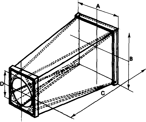 L'angle du divergent devra être compris entre 7 et 15' et sa longueur devra être au moins égale à 1,5 fois le diamètre de sortie du ventilateur (Fig. 159).