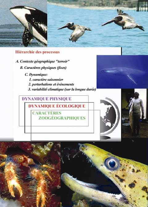 Les événements, les conditions météorologiques et le climat, tels sont les termes du problème pour ceux qui étudient et espèrent pouvoir prévoir la production halieutique des océans. Dans aucune des sphères de la nature le problème n'est plus aigu. Quand les mouvements constants des océans sont renforcés ou perturbés par des «événements» singuliers, tels la fermeture dans les temps géologiques de l'isthme de Panama, ou sous l'effet d'un tsunami (déclenché par un événement sismique de forte puissance), les courants et les marées se trouvent soumis à de nouvelles forces, dont la longévité et l'intensité sont déterminantes. Dans le premier cas, des changements de caractère relativement permanent se produisent de manière contrainte, tant localement qu'à l'échelle des bassins. Dans l'autre cas, une fois dissipée l'énergie du tsunami, seuls des effets mineurs sur l'écologie océanique sont probables, quels que soient les changements rémanents qui se produisent sur la côte, voire plus loin à l'intérieur des terres. À des échelles de temps courtes, les conditions locales peuvent se trouver modifiées de façon spectaculaire, et revêtir une importance majeure pour les processus environnementaux dans des contextes profondément modifiés.