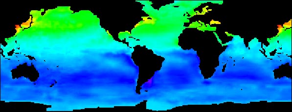 Il apparaît qu'au fil des millénaires, au moins deux faunes tout à fait distinctes et dynamiques ont évolué dans chacun de ces écosystèmes marins, dont la moitié seulement bénéficie de l'un ou l'autre côté des contextes divergents résultant des processus physiques mus par le climat. L'on peut identifier plusieurs dynamiques physiques interdépendantes comme le changement des schémas des précipitations, les périodes connexes d'emmagasinage et le débit des fleuves et cours d'eau, ainsi que les processus côtiers locaux. Il est vraisemblable aussi que beaucoup d'espèces de prédateurs migratoires sont directement affectés par ces changements et peuvent constituer des indicateurs de changements physiques qui, fréquemment, ne sont identifiés qu'a posteriori par les océanographes et les climatologues. Nous ne sommes pas terriblement préoccupés par les changements climatiques et leurs conséquences sur les espèces océaniques les plus mobiles étant donné qu'elles ont par le passé acquis une expérience considérable et ont été sélectionnées du fait de leur réaction rapide et de leur adaptabilité. Ces régions, où les dynamiques saisonnières sont les plus fortes, constituent l'habitat d'espèces qui sont mieux adaptées aux changements et qui sont dynamiques des points de vue aussi bien de leur répartition que de leur abondance, d'où l'étonnante productivité des zones de transition aux latitudes élevées. La figure 25 illustre les régions où les dynamiques saisonnières sont les plus fortes.