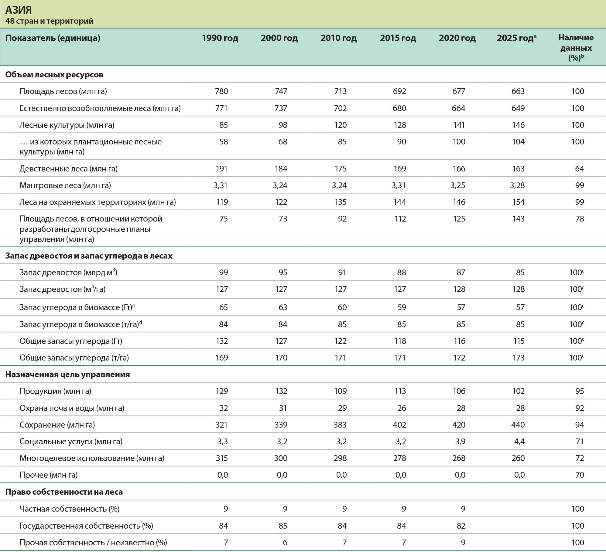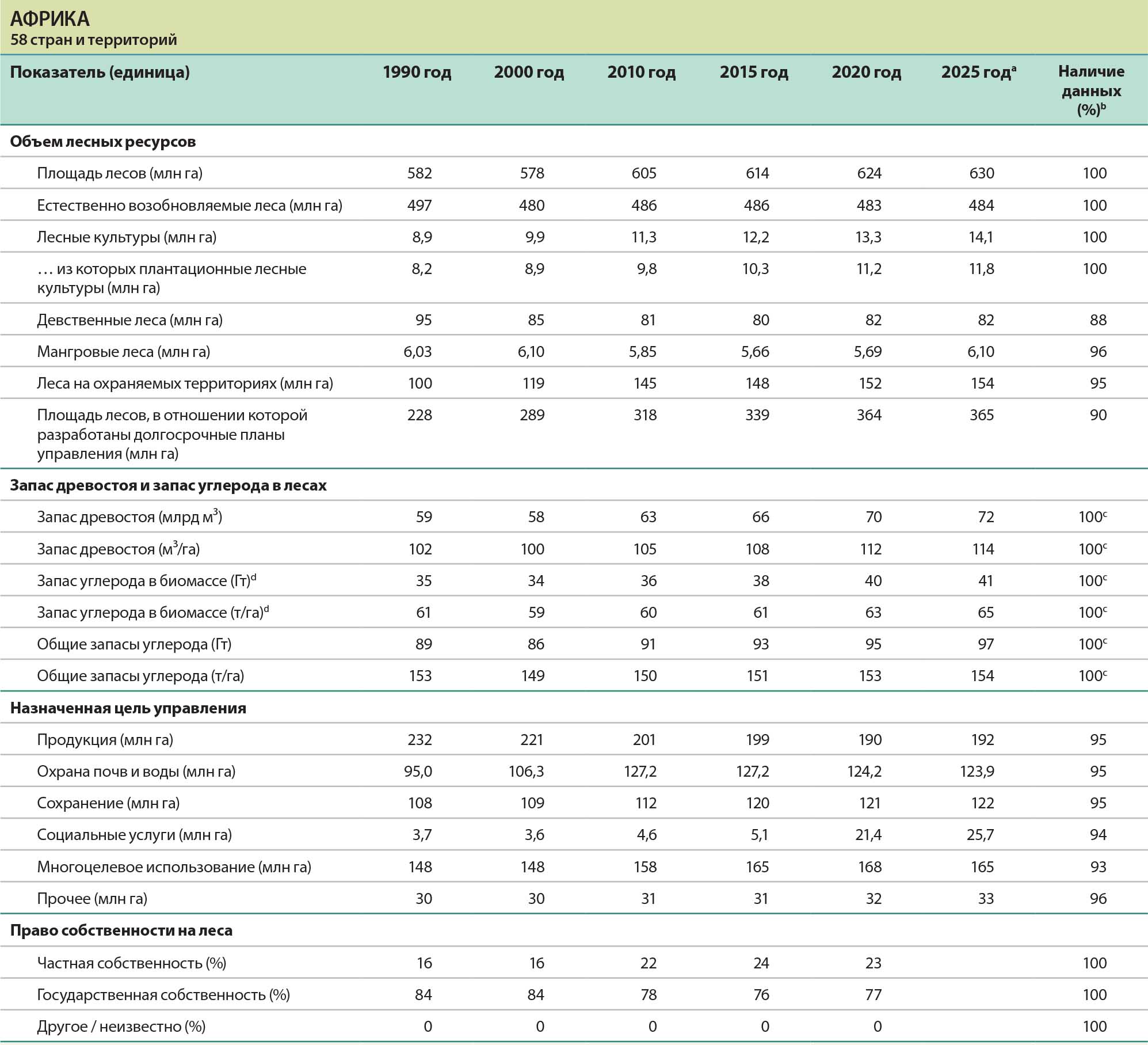 b Наличие данных относится к доле площади лесов, приходящейся на страны, представившие данные.
