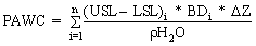 USL = the upper storage limit, the gravimetric water content of the wet soil after downward drainage is negligible.