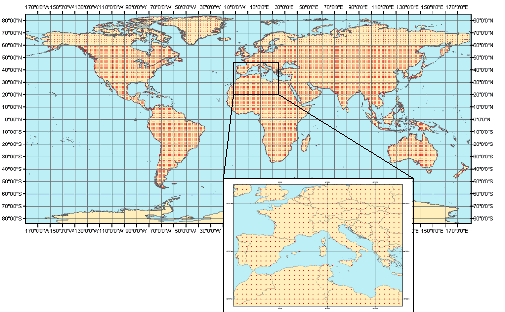 The survey will primarily be based on the use of available Landsat imagery, but will incorporate auxiliary information including other remote sensing images, results from existing and past field inventories etc. A systematic sampling design will be used based on each longitude and latitude intersects as illustrated below, with a reduced intensity above 60 degrees North due to the curvature of the Earth. The assessment will cover the whole land surface of the Earth and will consist of about 13,500 samples, of which about 9,000 samples are outside deserts and areas with permanent ice. The area covered at each sample site is 10 km x 10 km, providing a sampling intensity of about 1 percent of the global land surface. This grid of sample plots is the same as used for the national forest assessments supported by FAO and by many national forest inventory programmes.
