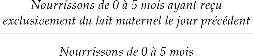 Indicateur: Pourcentage de nourrissons de 0 à 5 mois alimentés exclusivement par du lait maternel, sans aliment ni boisson supplémentaire, pas même de l’eau, au cours des 24 heures précédant l’enquête11.