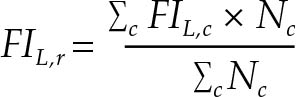 où r indique la région, FIL,c est la valeur de FI de niveau L estimée pour le pays c dans la région, et Nc la taille de la population correspondante. En l’absence d’estimation de FIL pour un pays, on considère que cette valeur est égale à la moyenne, pondérée par la population, des valeurs estimatives pour les pays restants de la même sous-région. L’agrégat régional est calculé uniquement si les pays pour lesquels une estimation est disponible représentent au moins 50 pour cent de la population de la région.