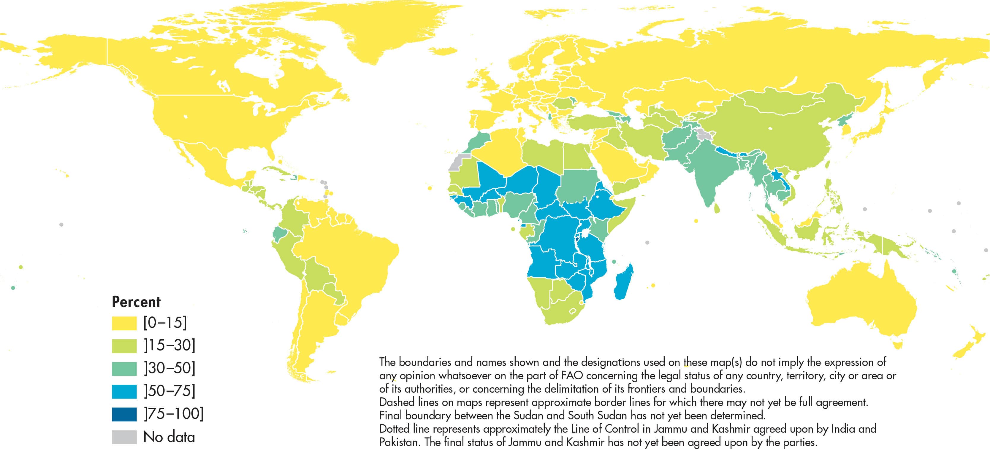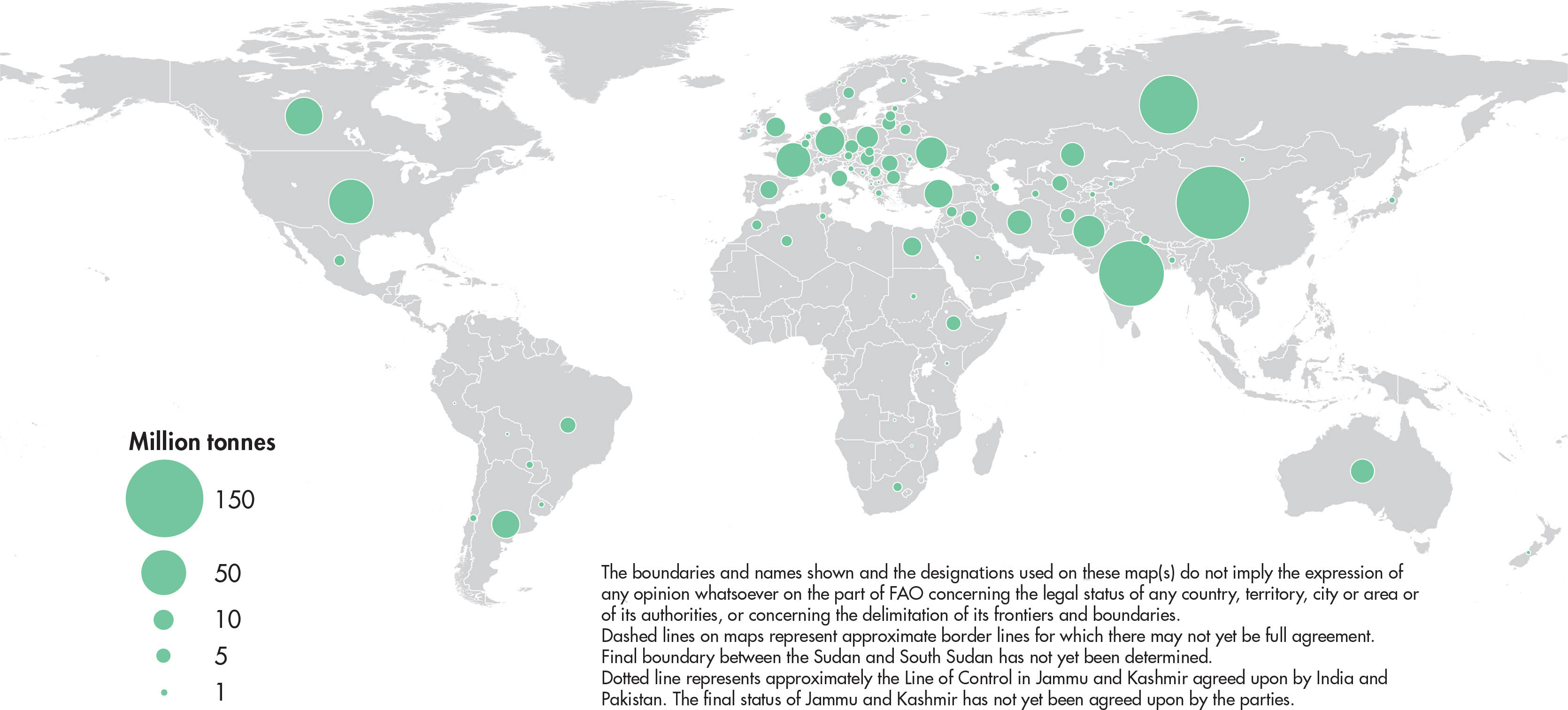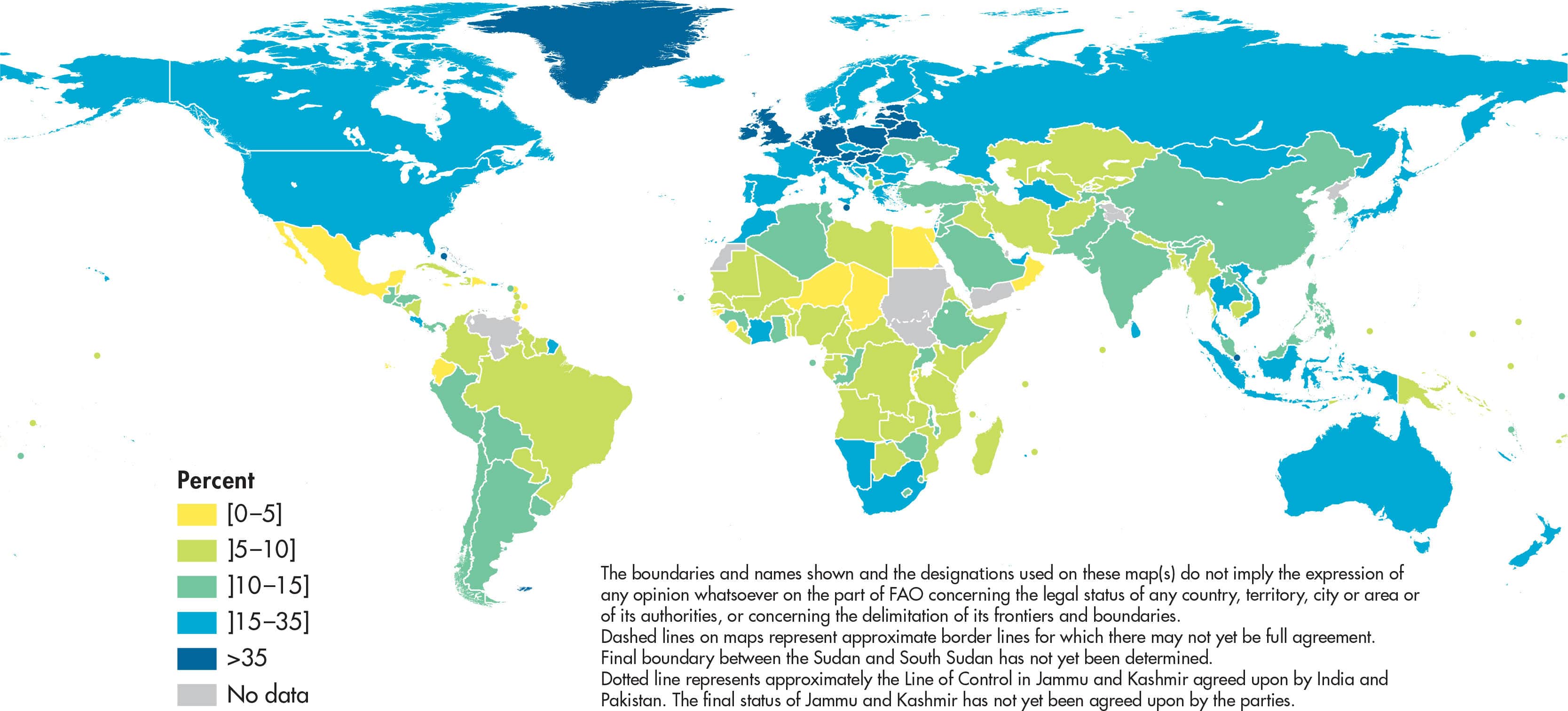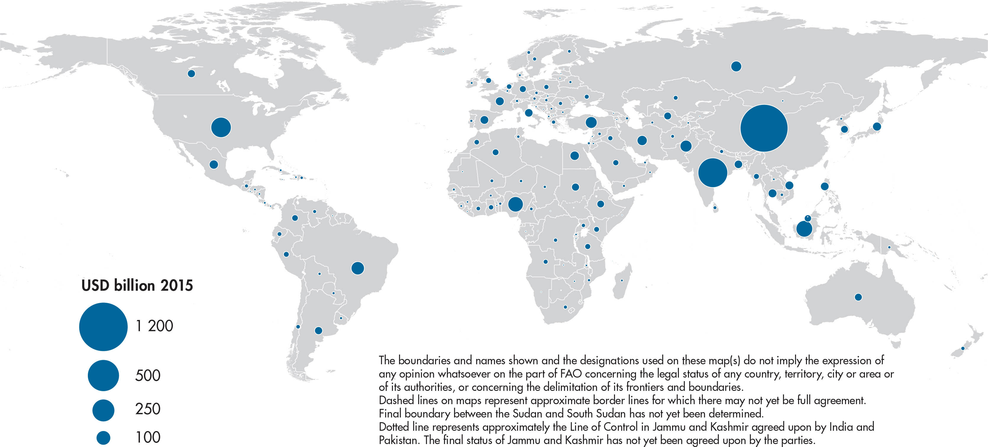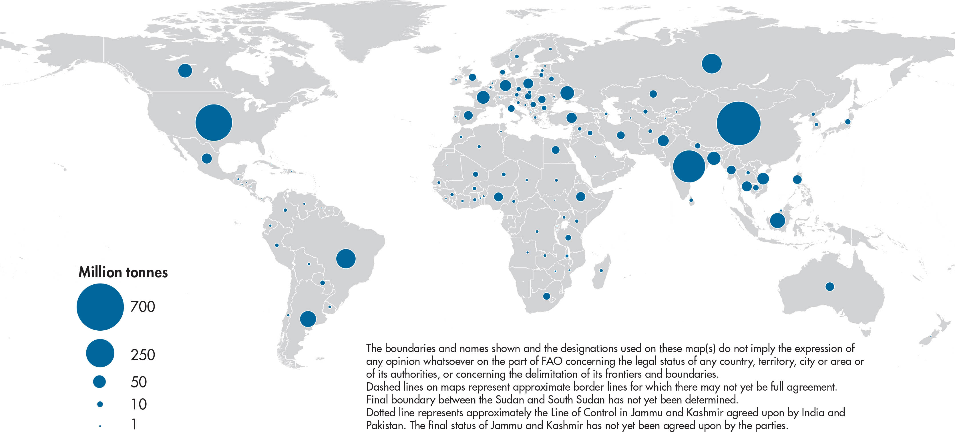 The country classification adopted in this publication is based on the United Nations M49 classification (https://unstats.un.org/unsd/methodology/m49/). The country names have been abbreviated in the data tables and figures. The official Food and Agriculture Organization of the United Nations (FAO) names can be found at http://www.fao.org/nocs/en.