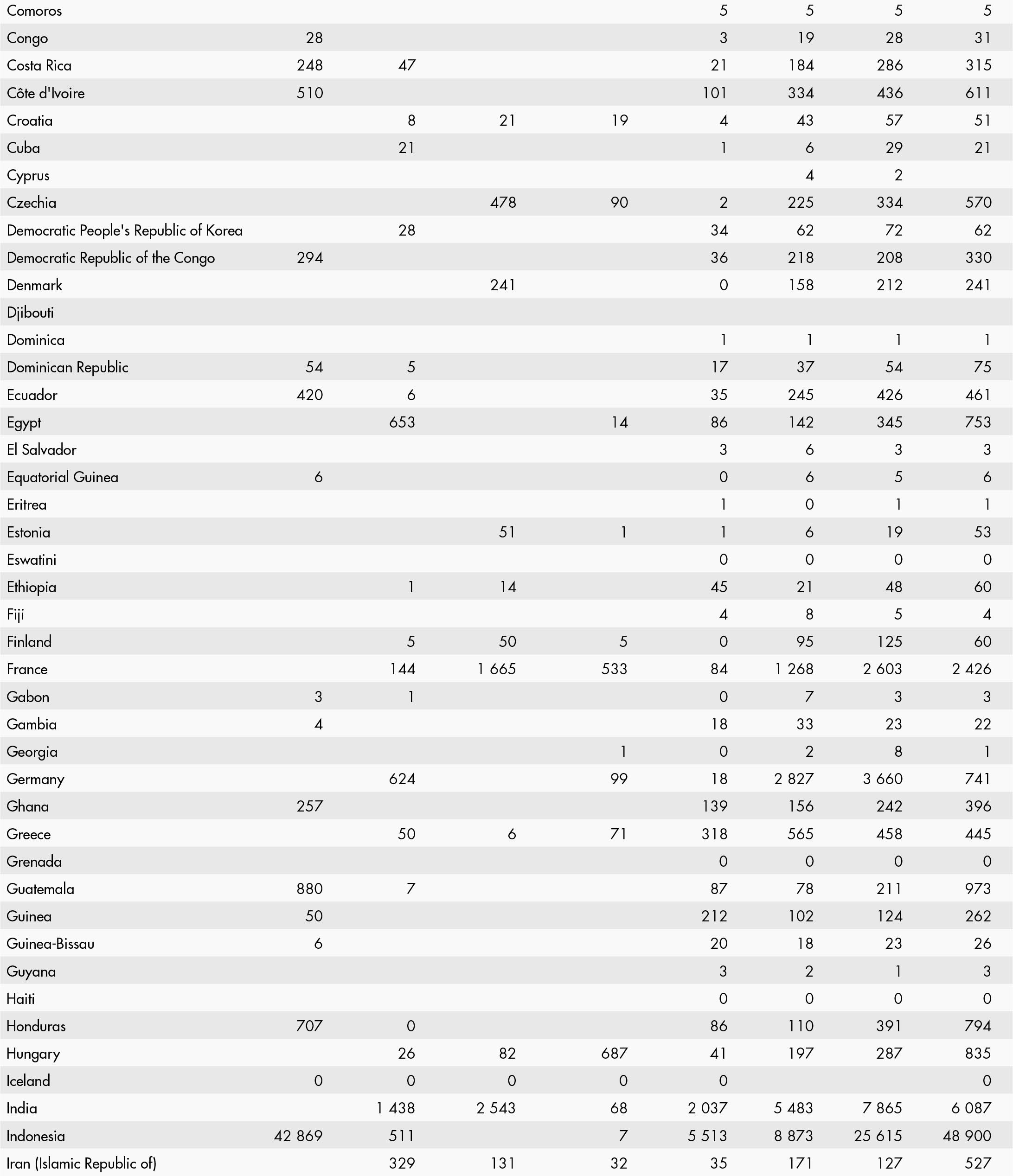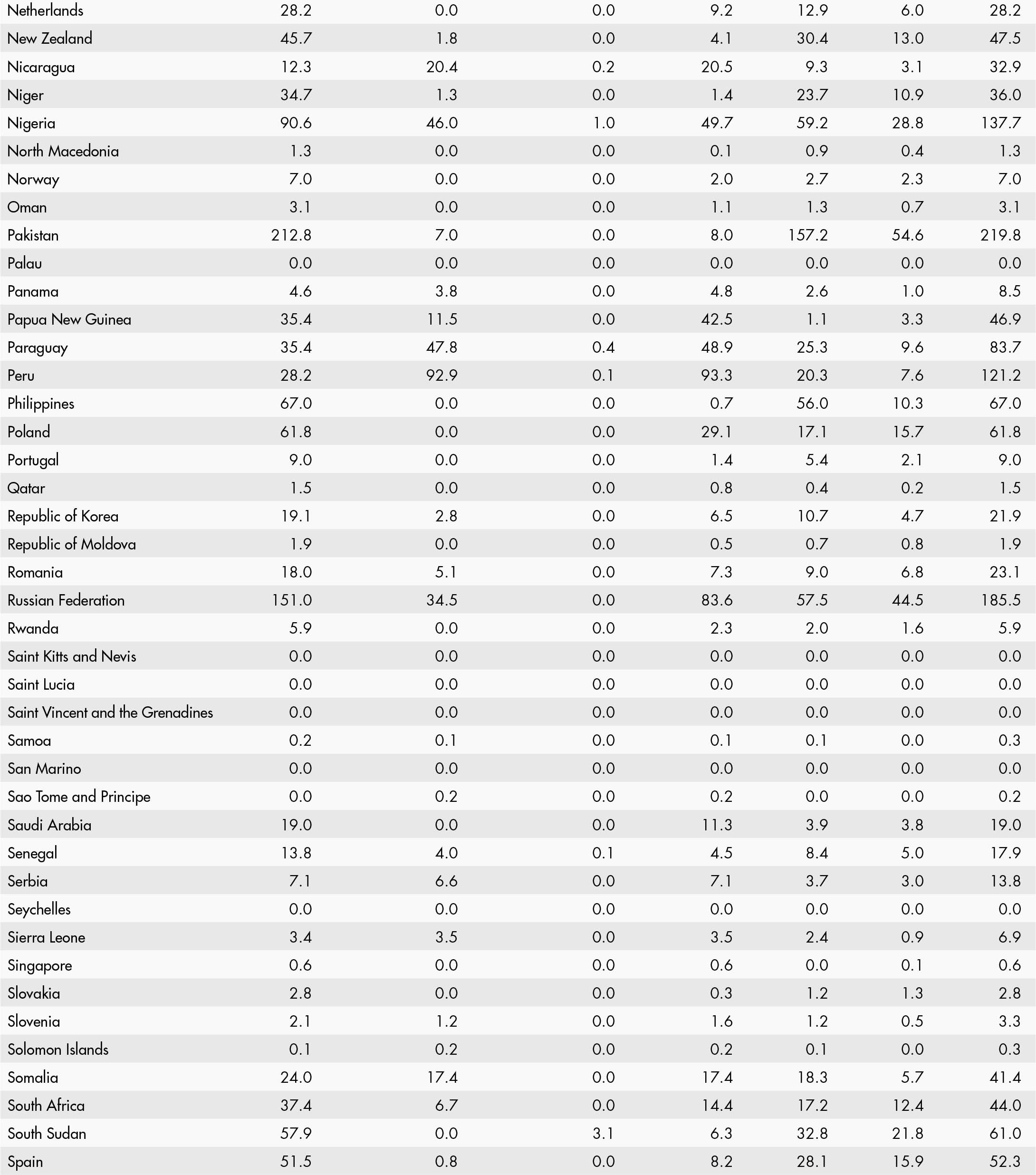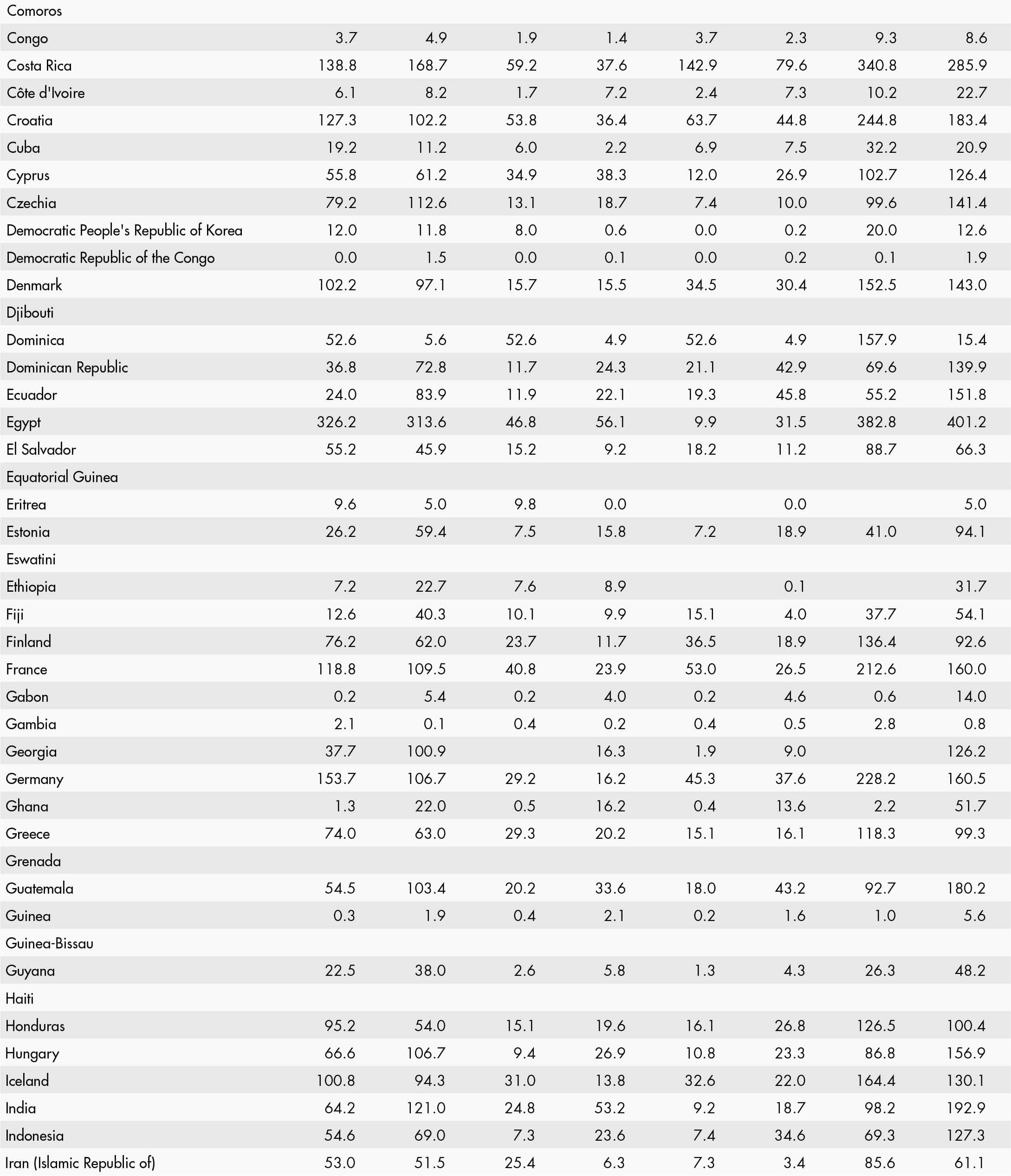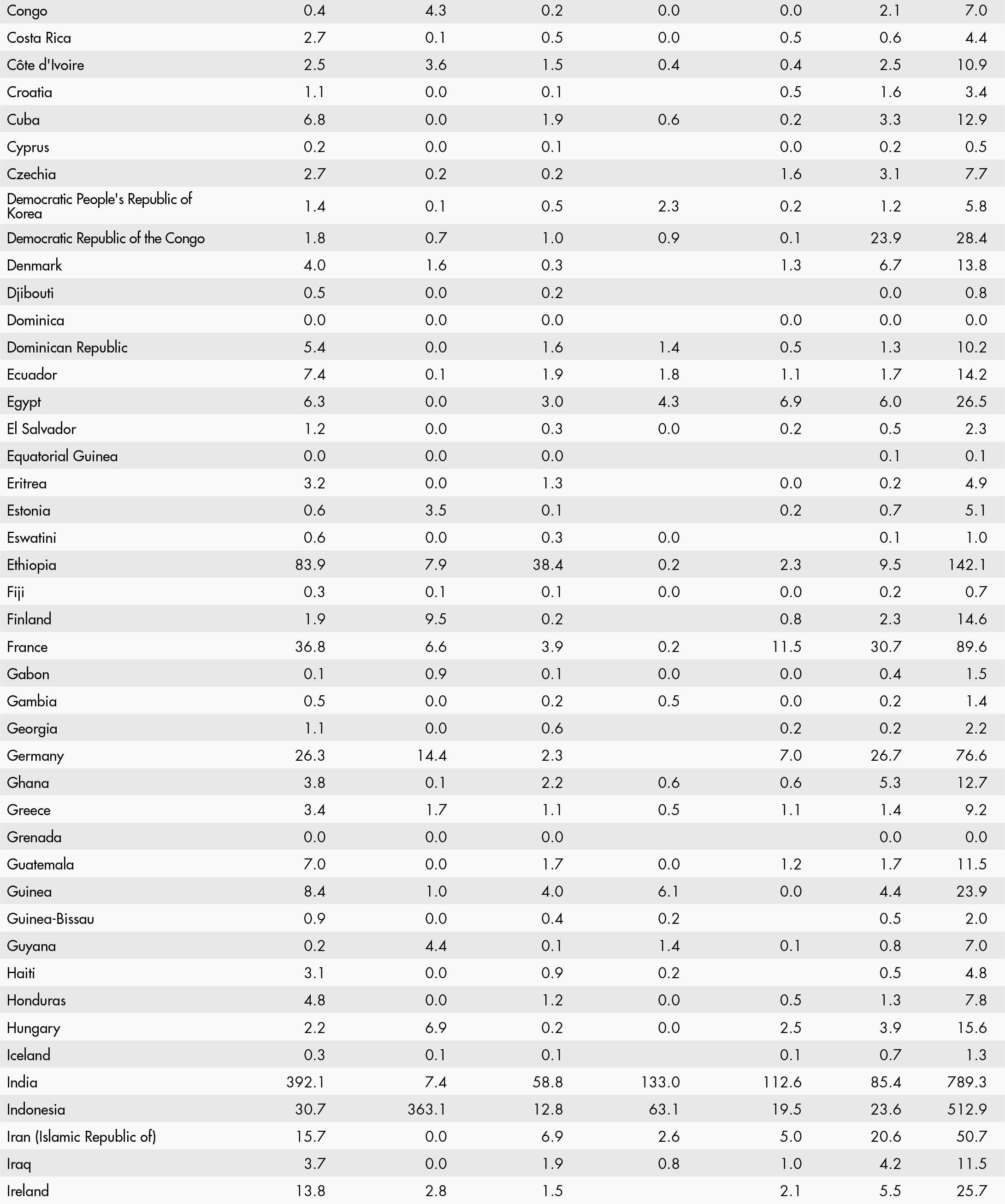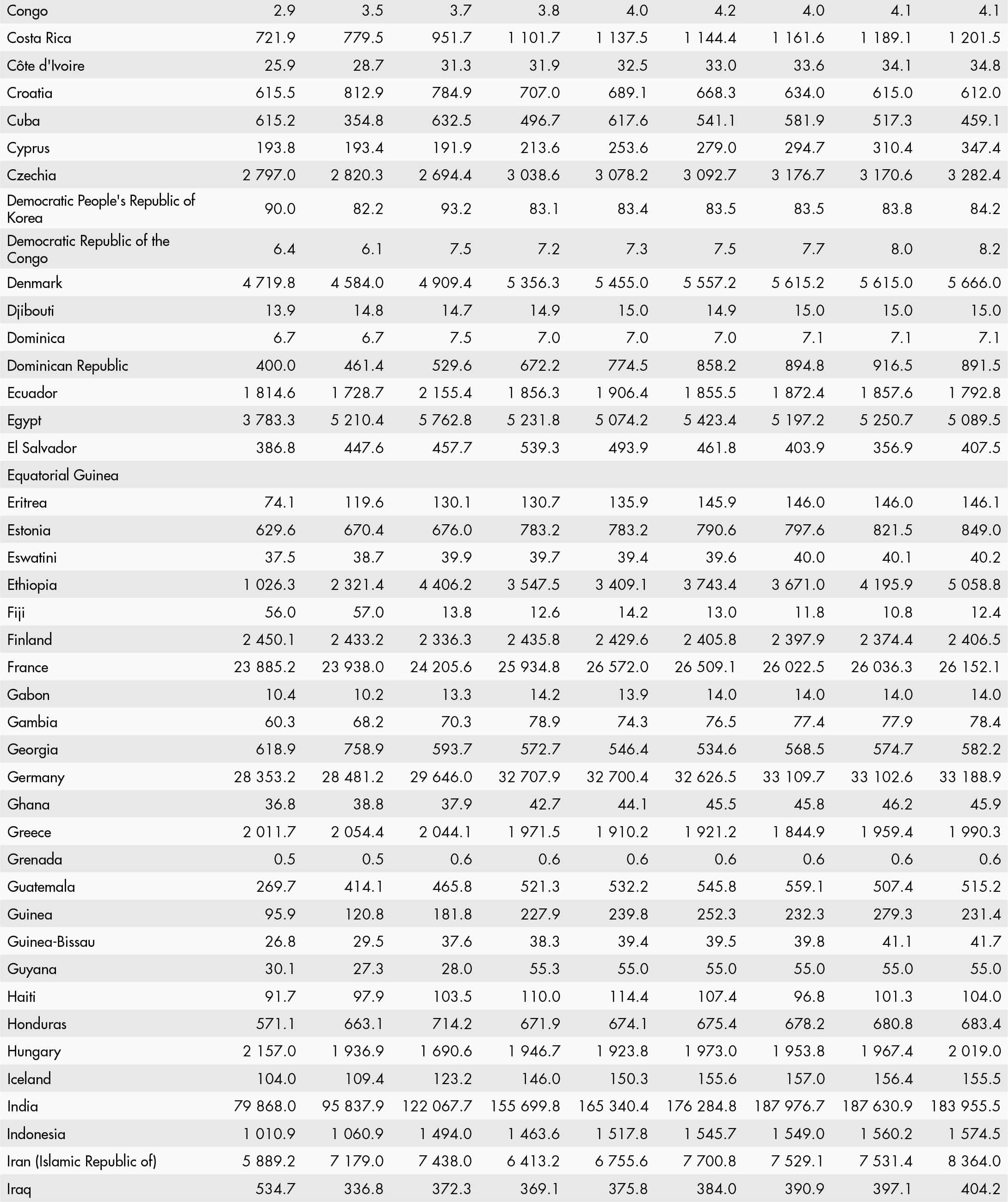 The country classification adopted in this publication is based on the United Nations M49 classification (https://unstats.un.org/unsd/methodology/m49/). The country names have been abbreviated in the data tables and figures. The official Food and Agriculture Organization of the United Nations (FAO) names can be found at http://www.fao.org/nocs/en.