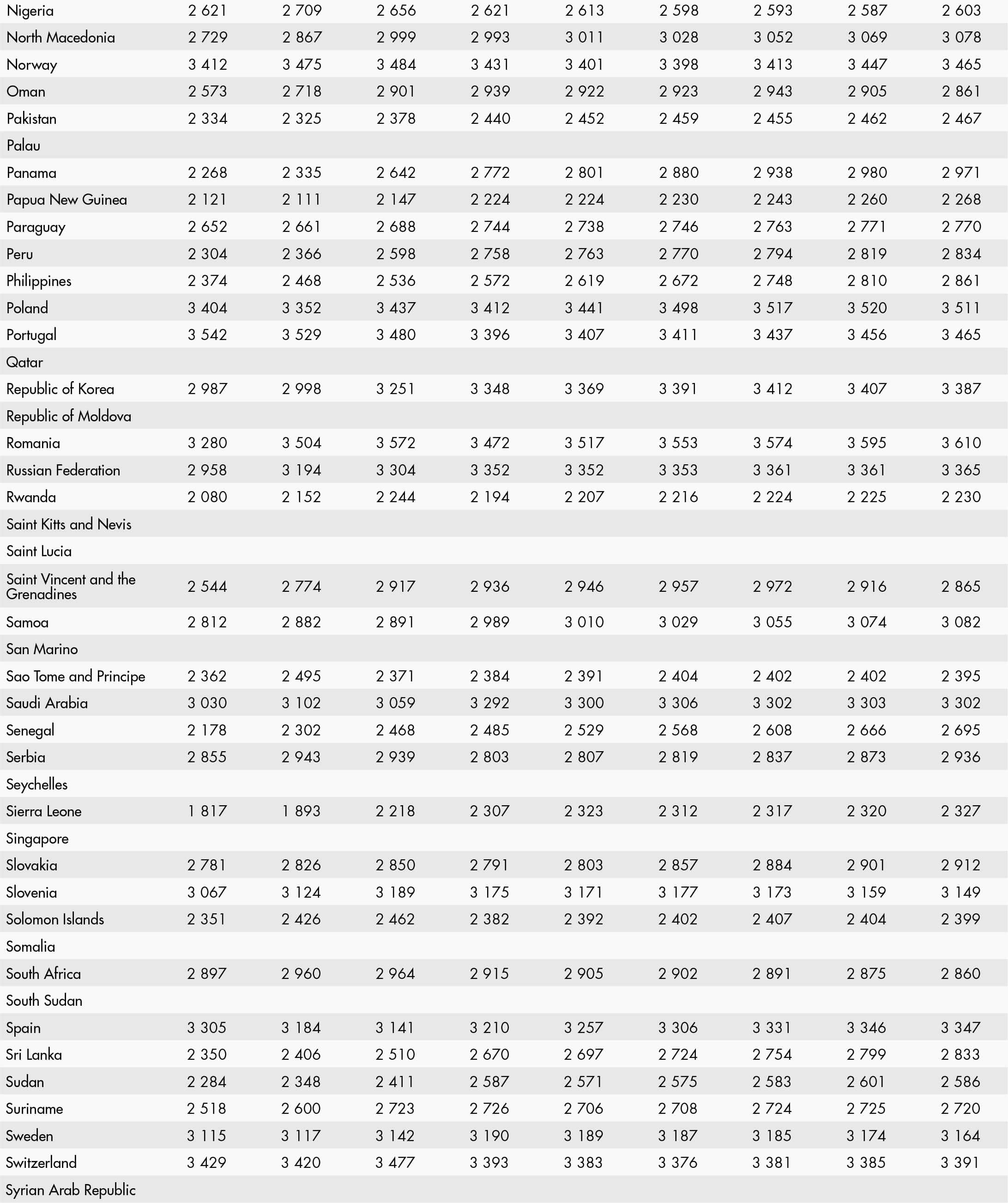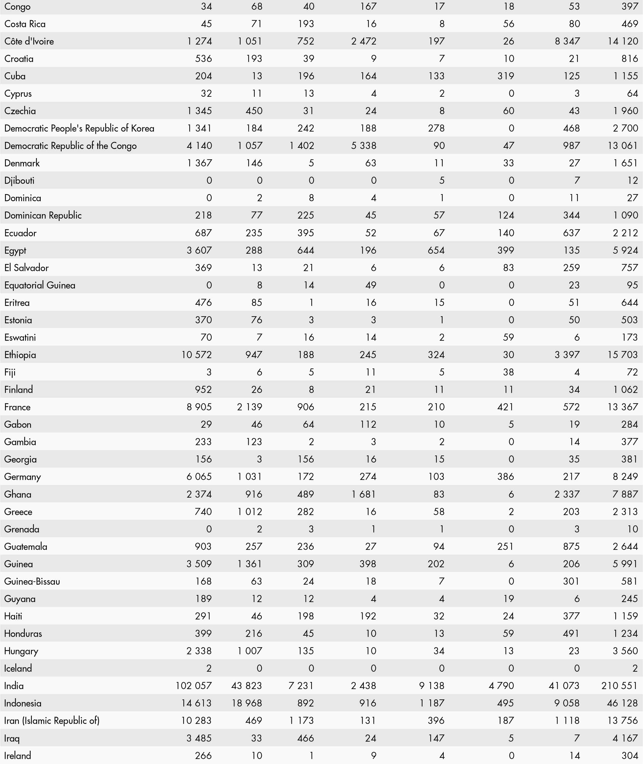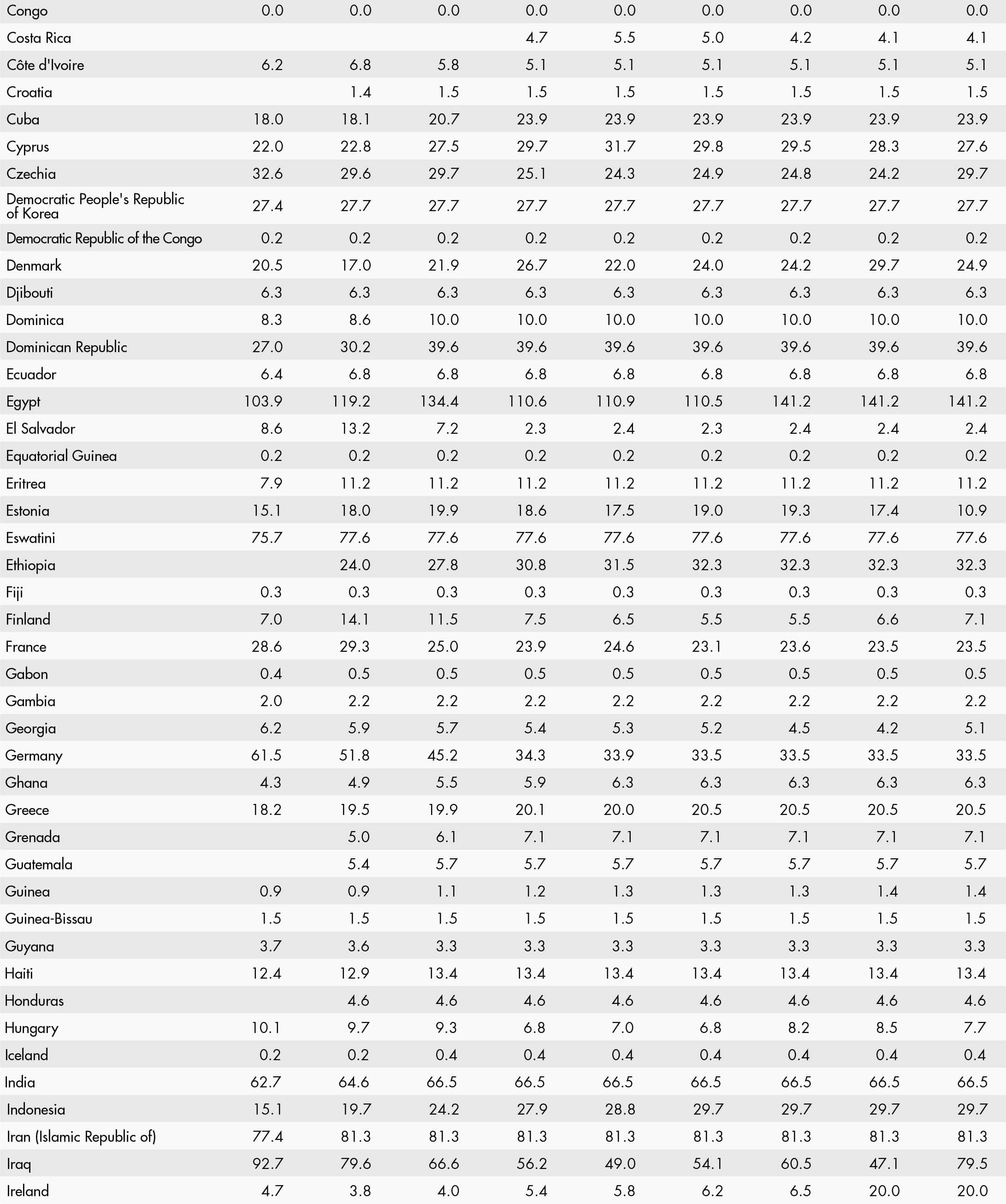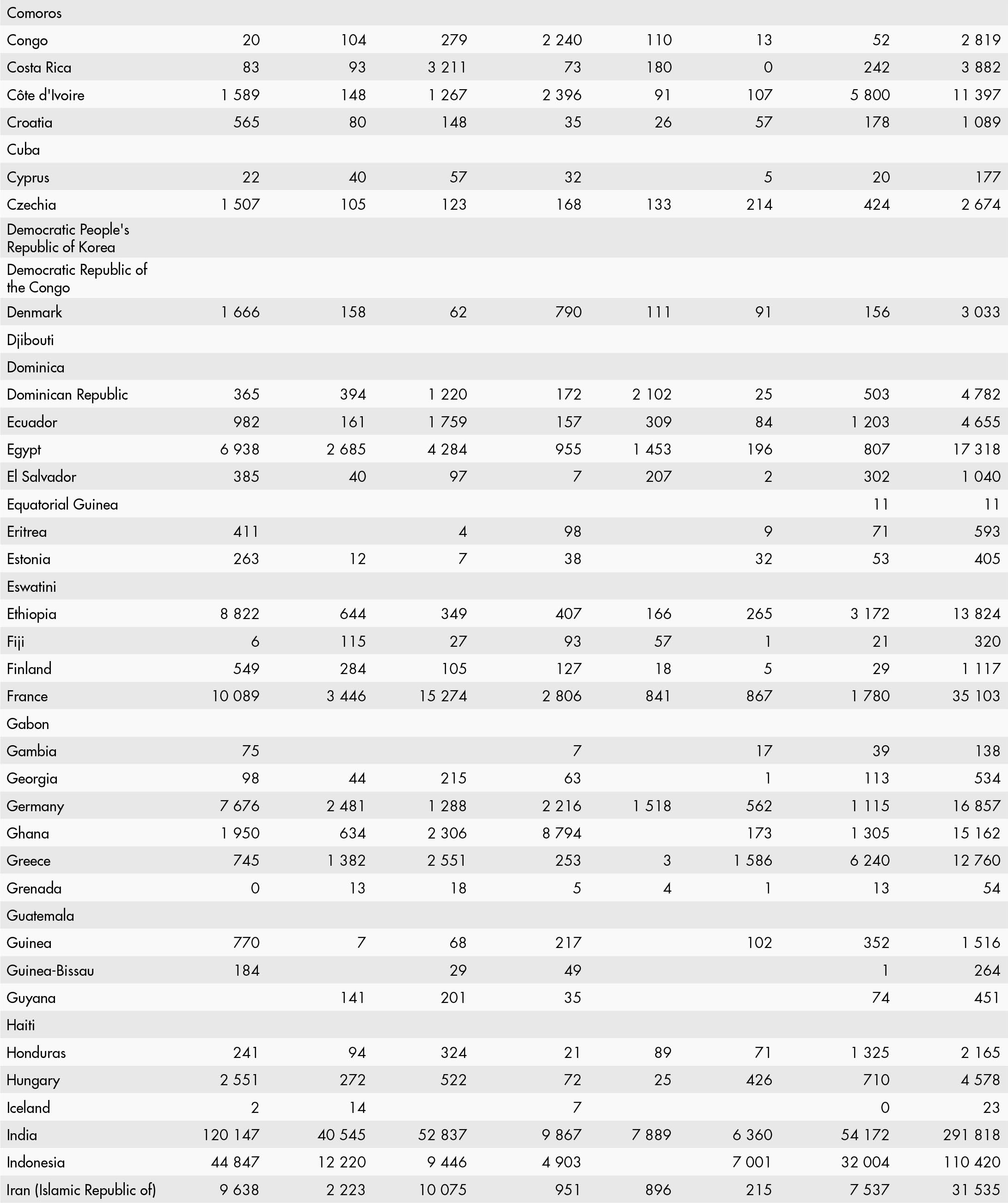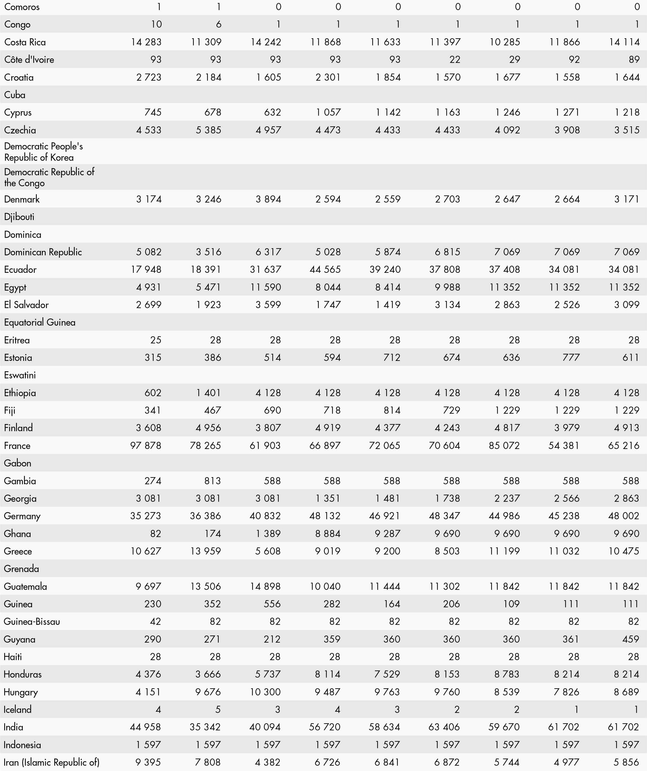 The country classification adopted in this publication is based on the United Nations M49 classification (https://unstats.un.org/unsd/methodology/m49/). The country names have been abbreviated in the data tables and figures. The official Food and Agriculture Organization of the United Nations (FAO) names can be found at http://www.fao.org/nocs/en.