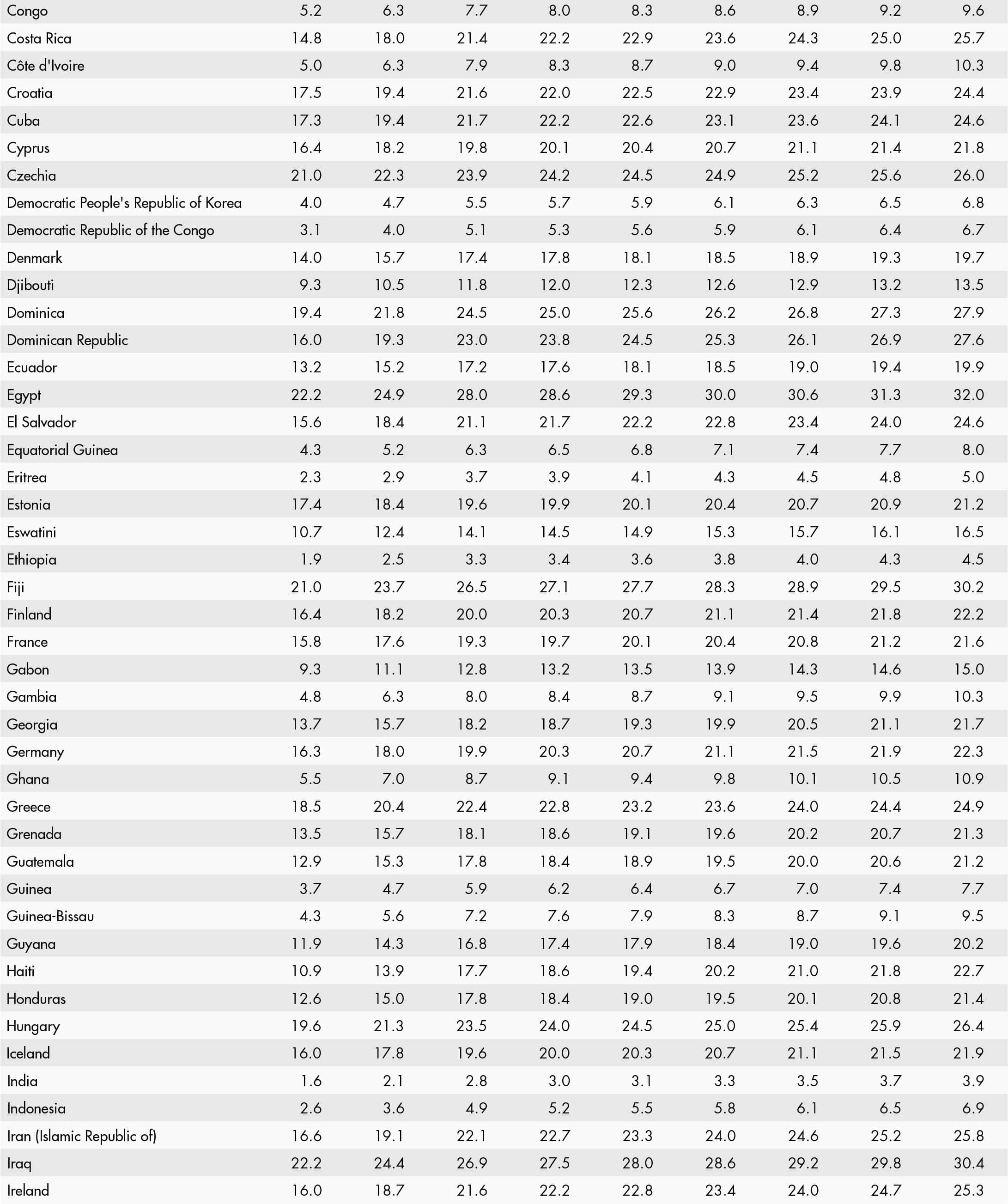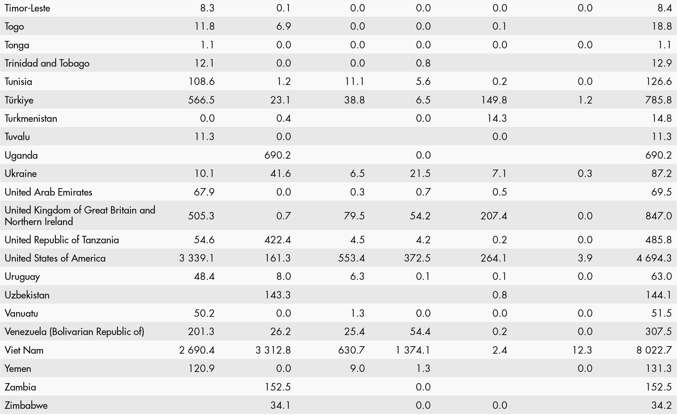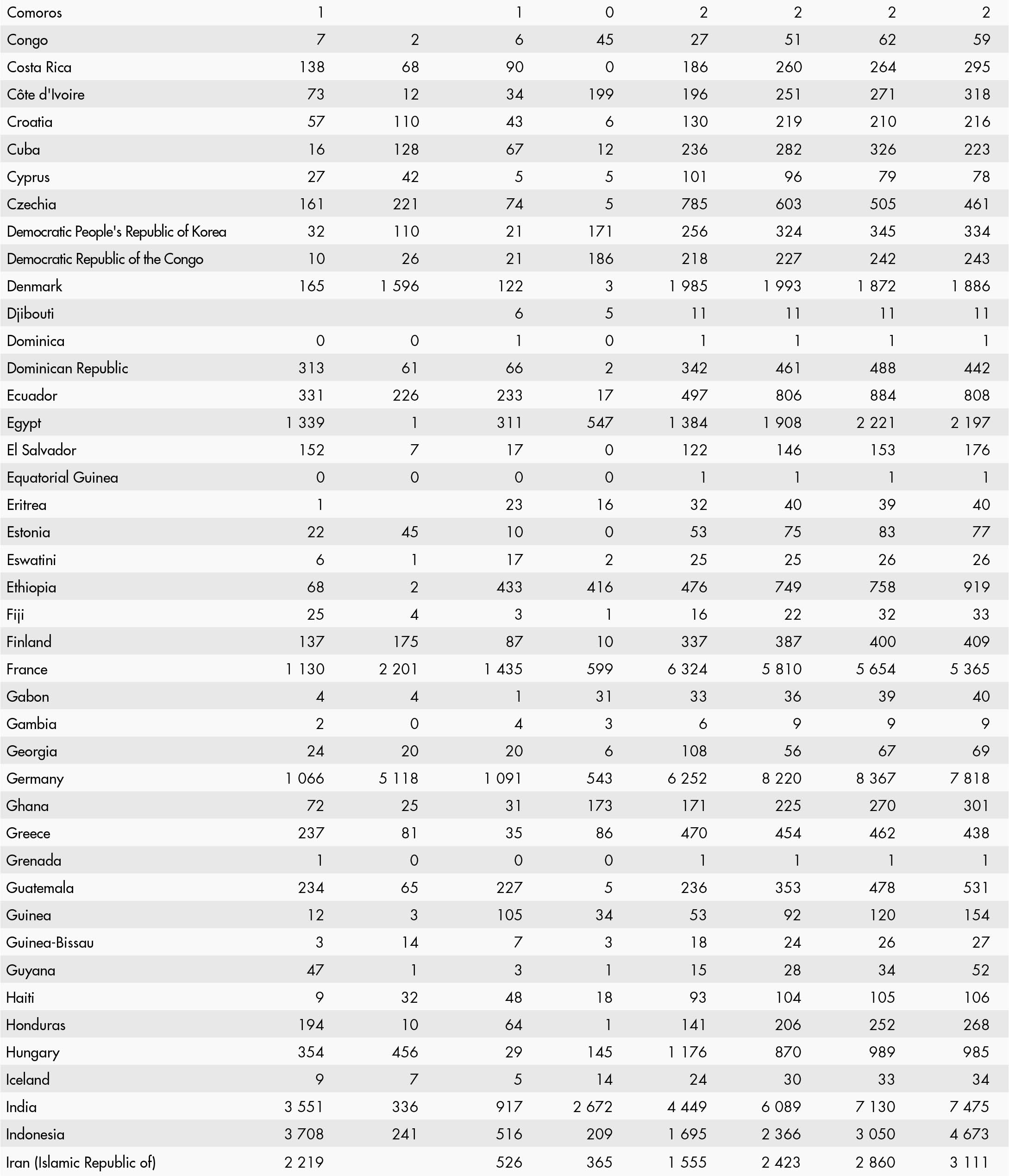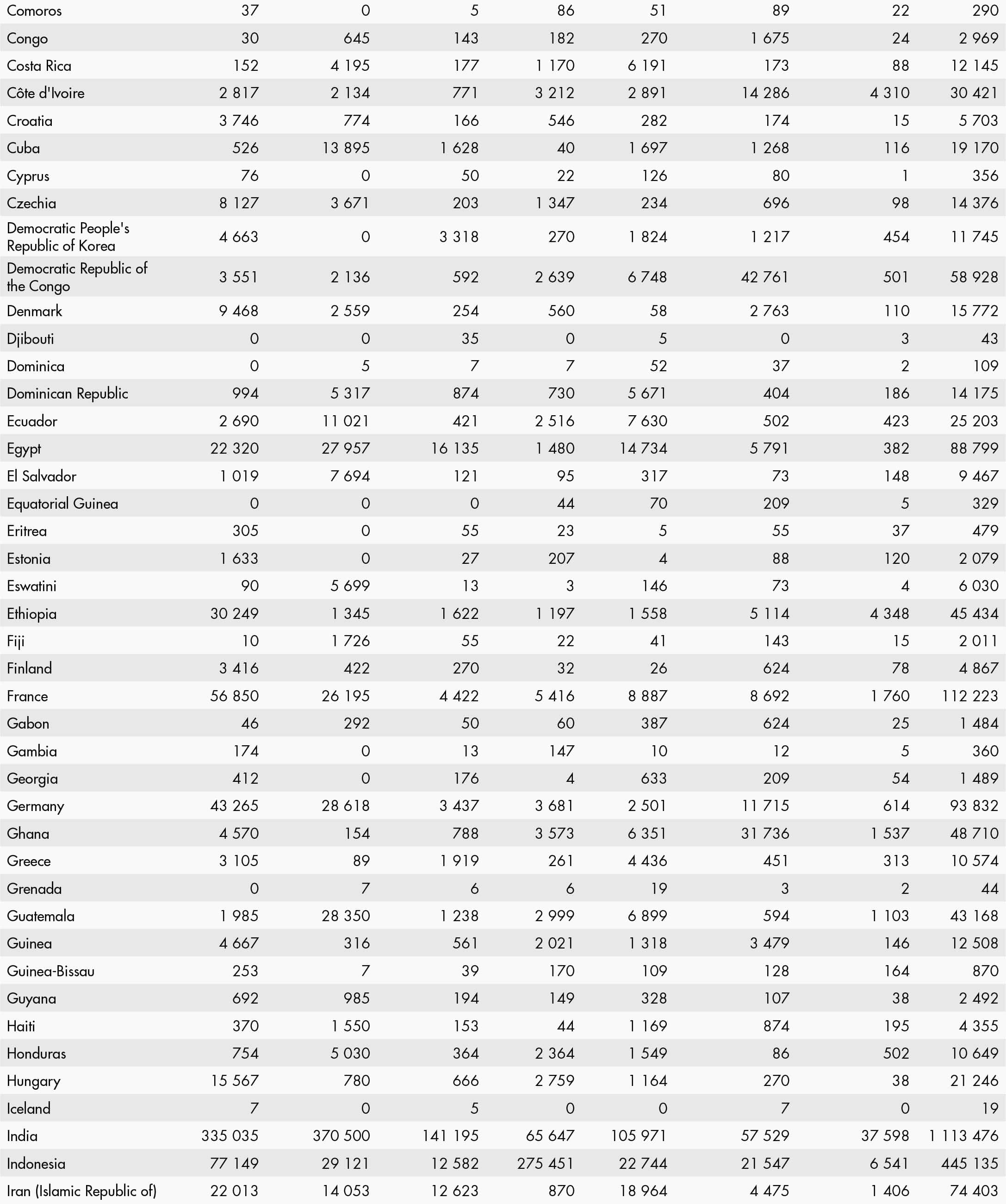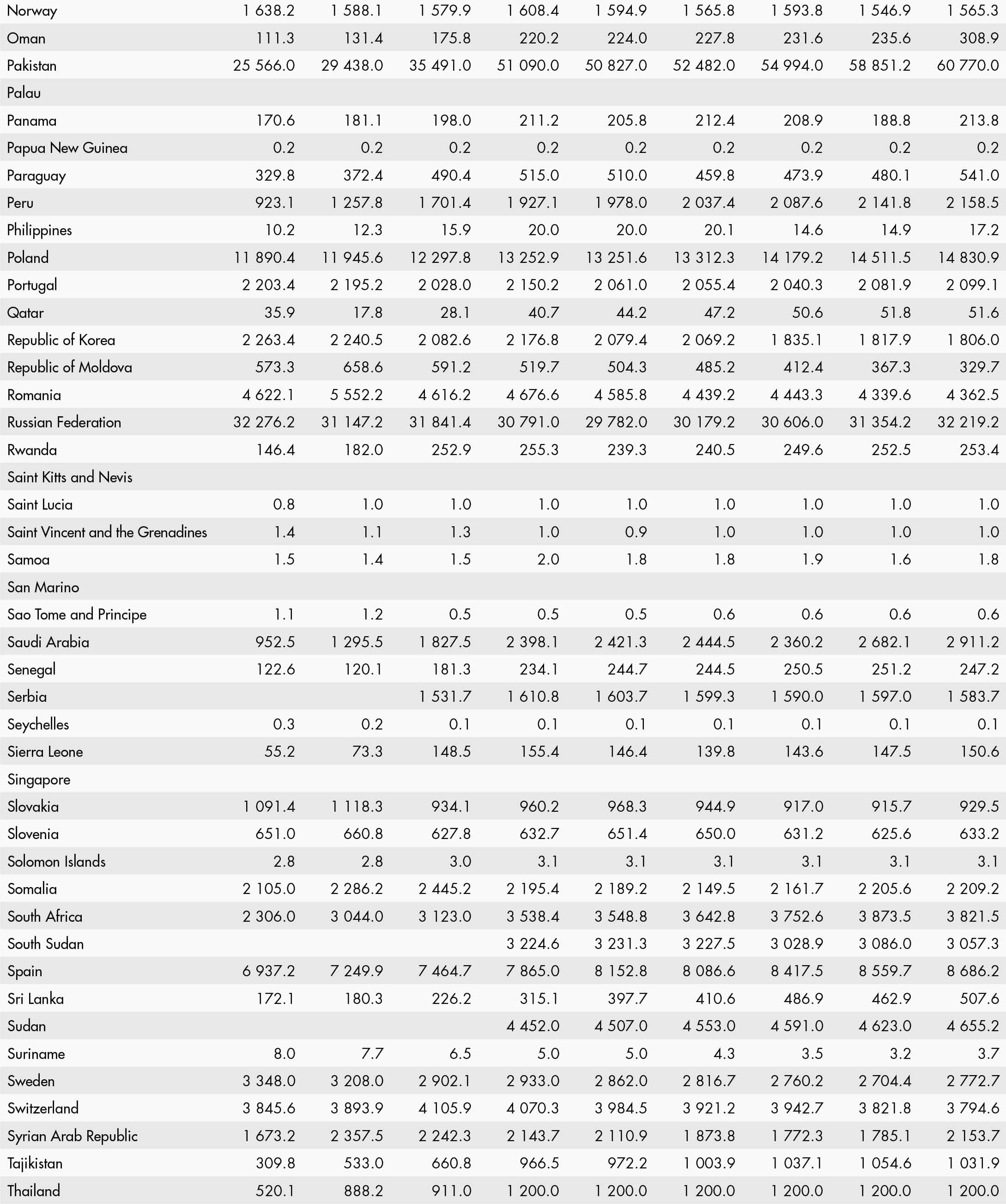 The country classification adopted in this publication is based on the United Nations M49 classification (https://unstats.un.org/unsd/methodology/m49/). The country names have been abbreviated in the data tables and figures. The official Food and Agriculture Organization of the United Nations (FAO) names can be found at http://www.fao.org/nocs/en.