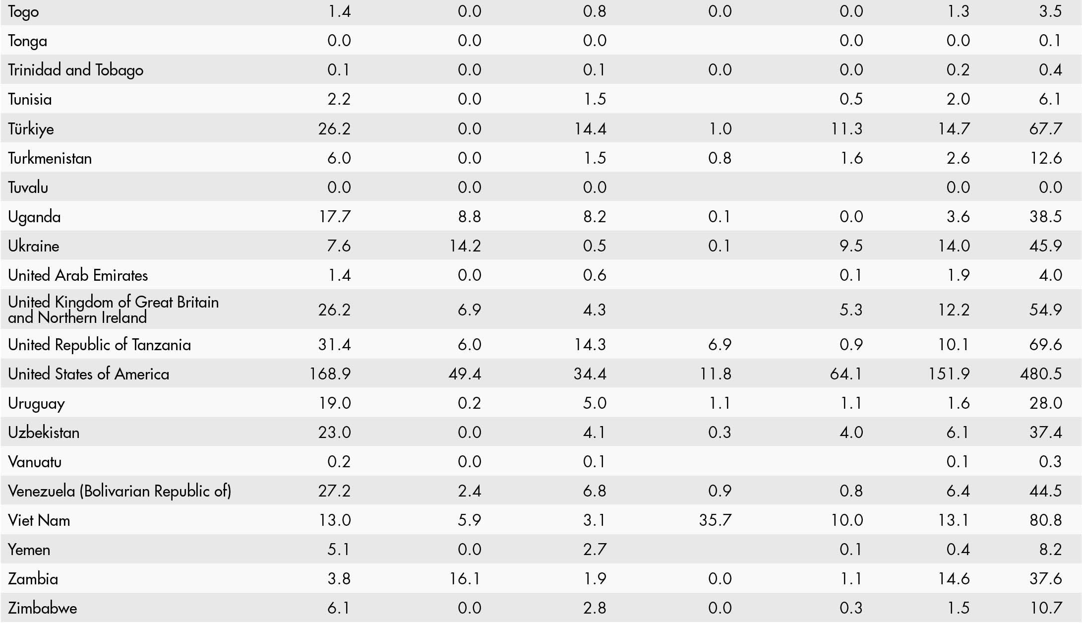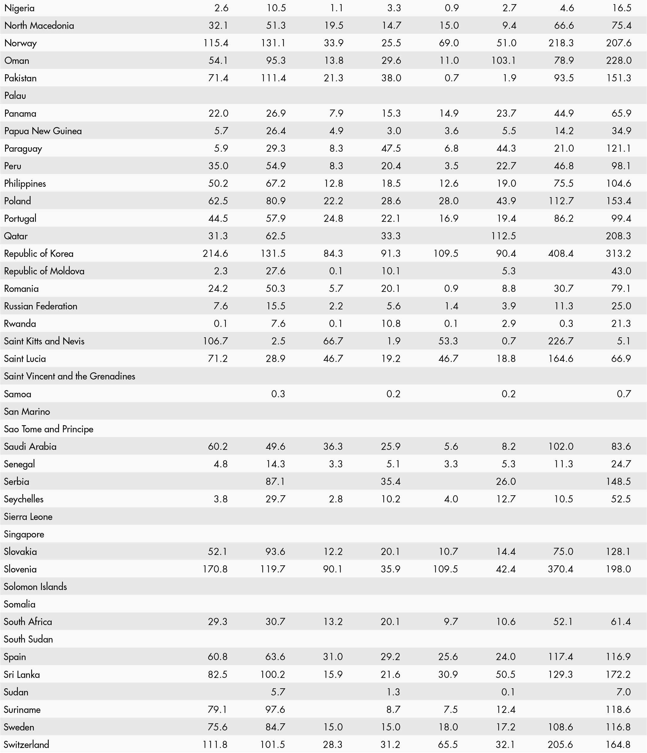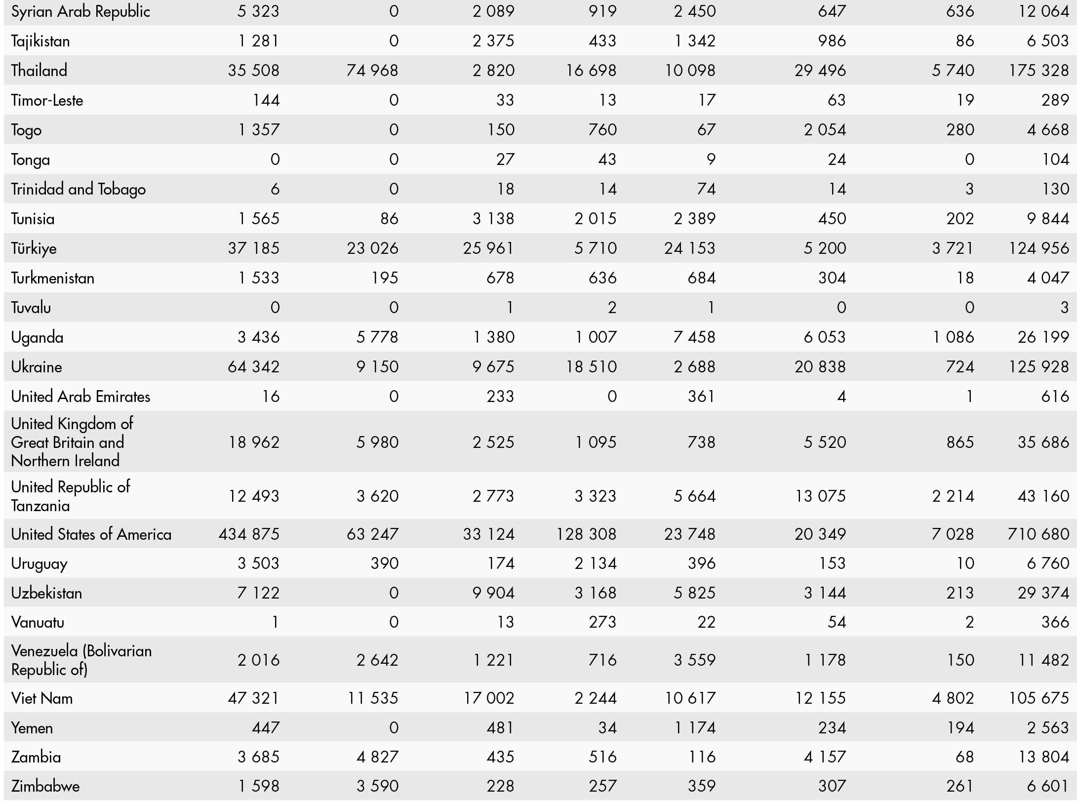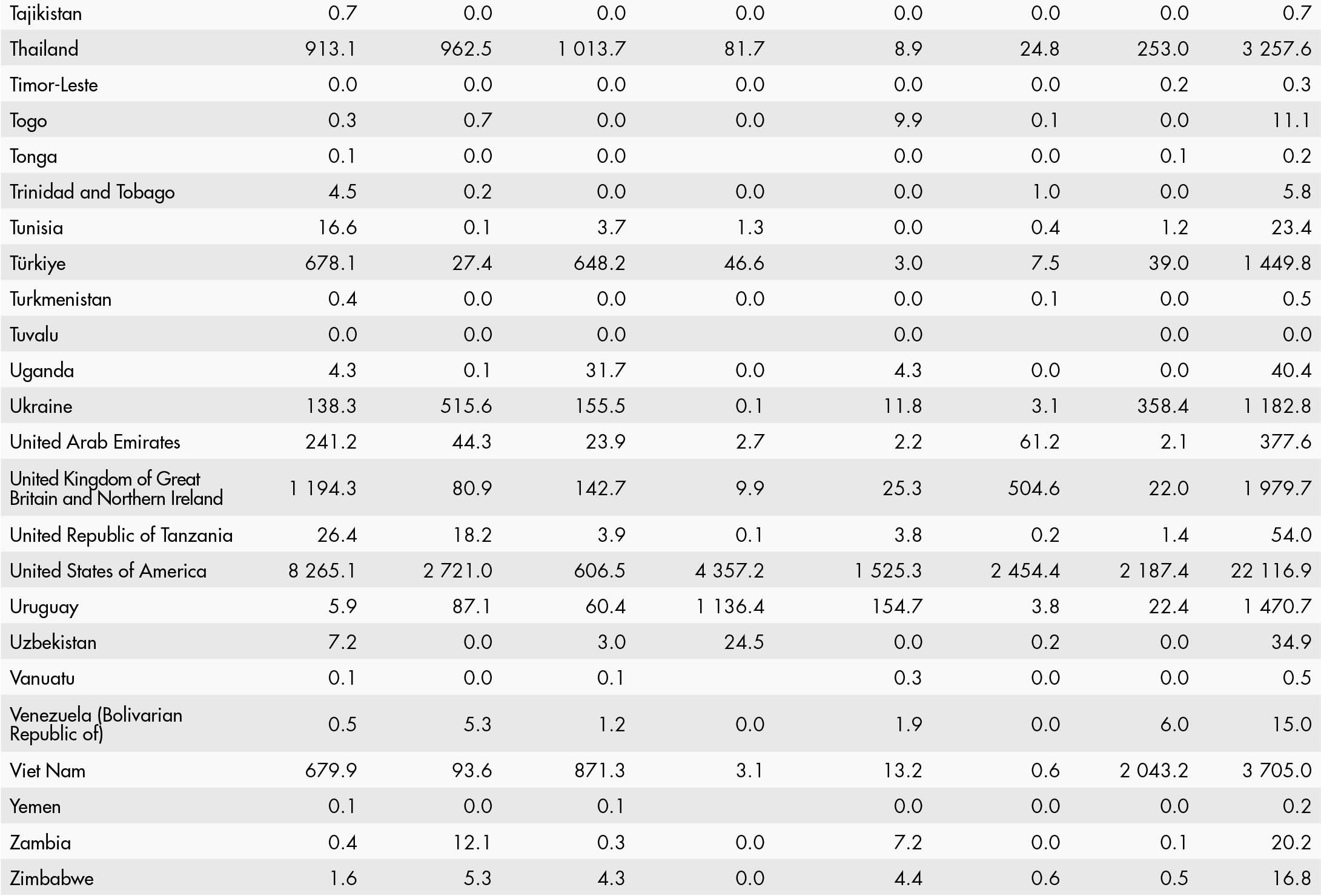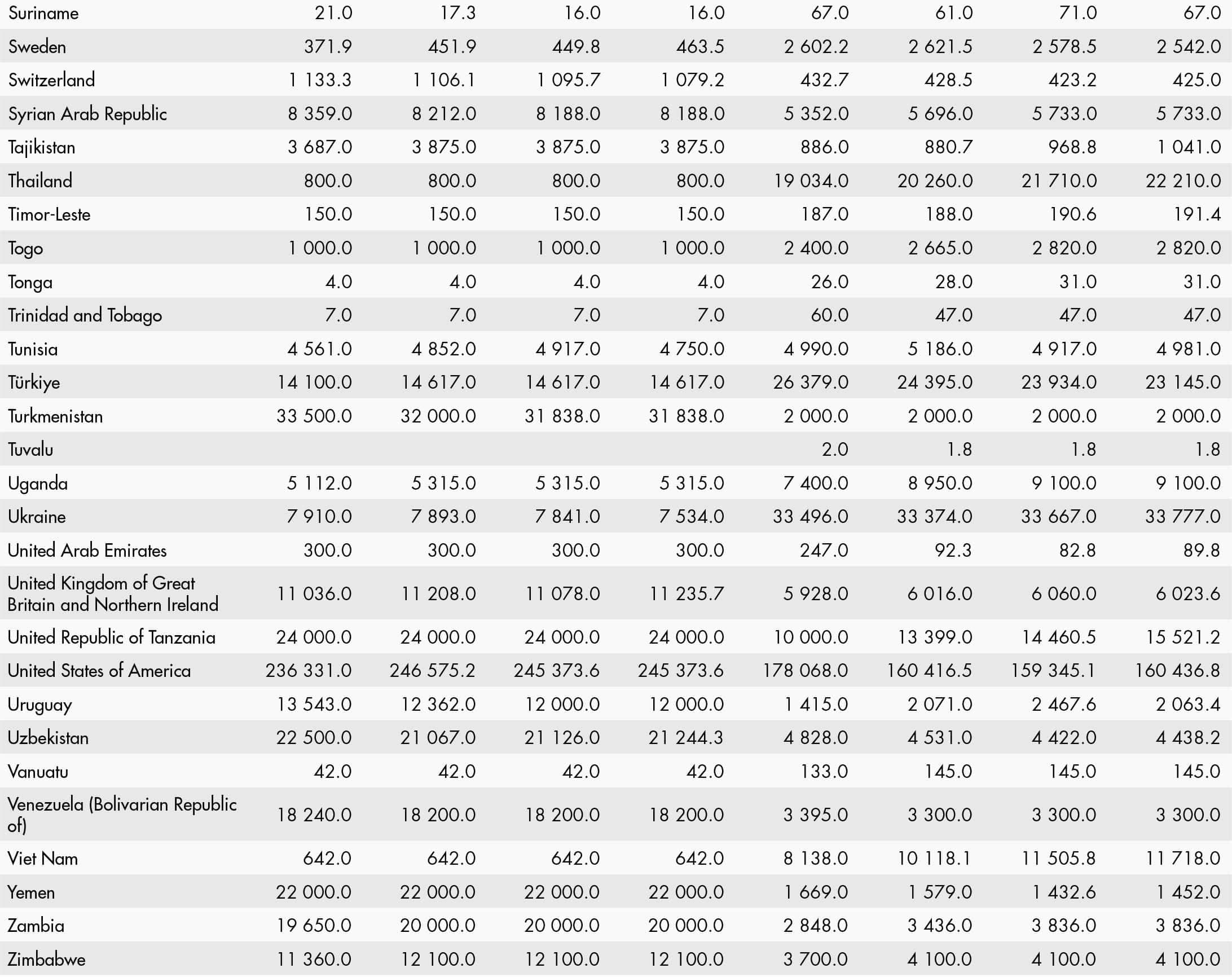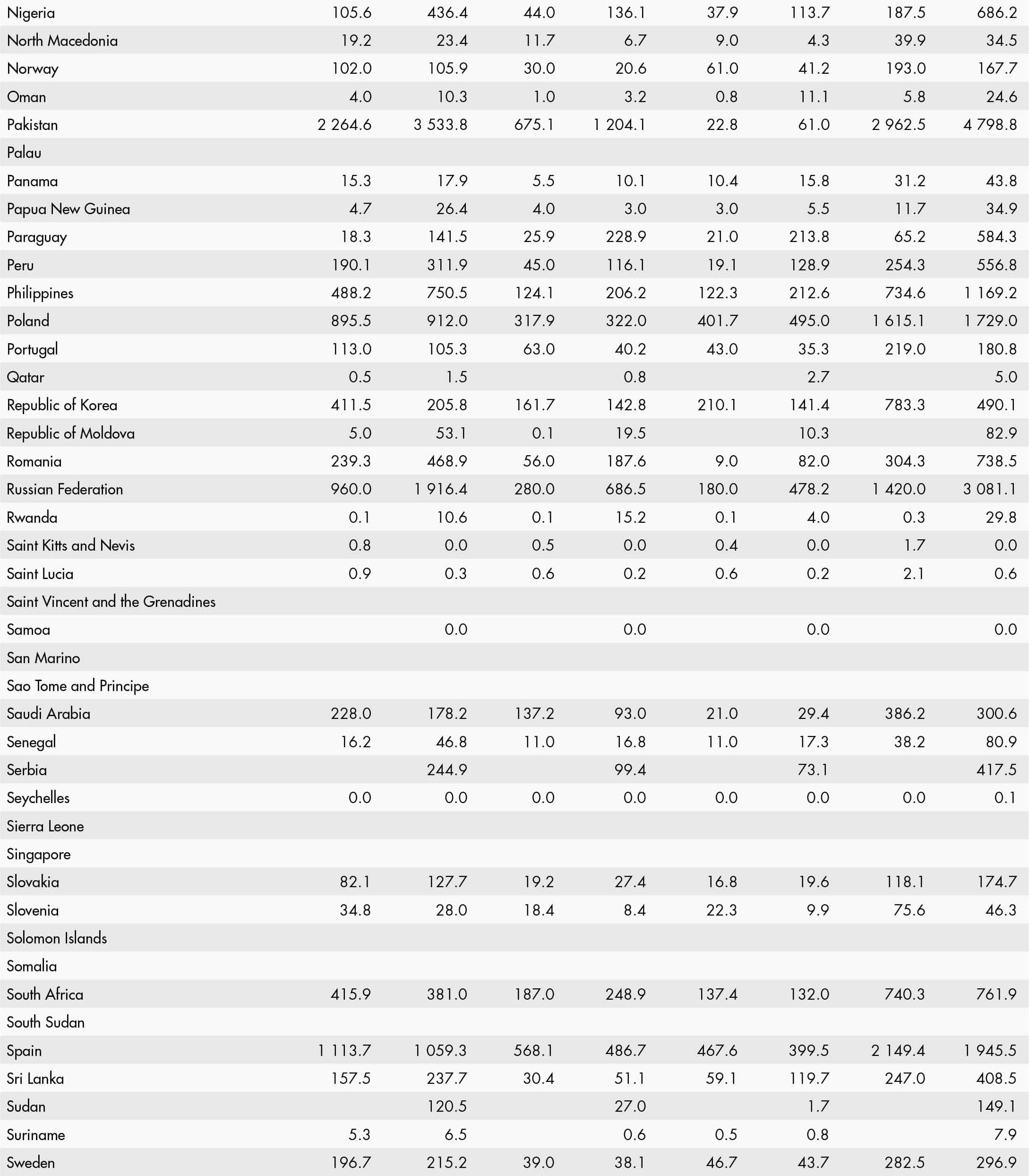 The country classification adopted in this publication is based on the United Nations M49 classification (https://unstats.un.org/unsd/methodology/m49/). The country names have been abbreviated in the data tables and figures. The official Food and Agriculture Organization of the United Nations (FAO) names can be found at http://www.fao.org/nocs/en.