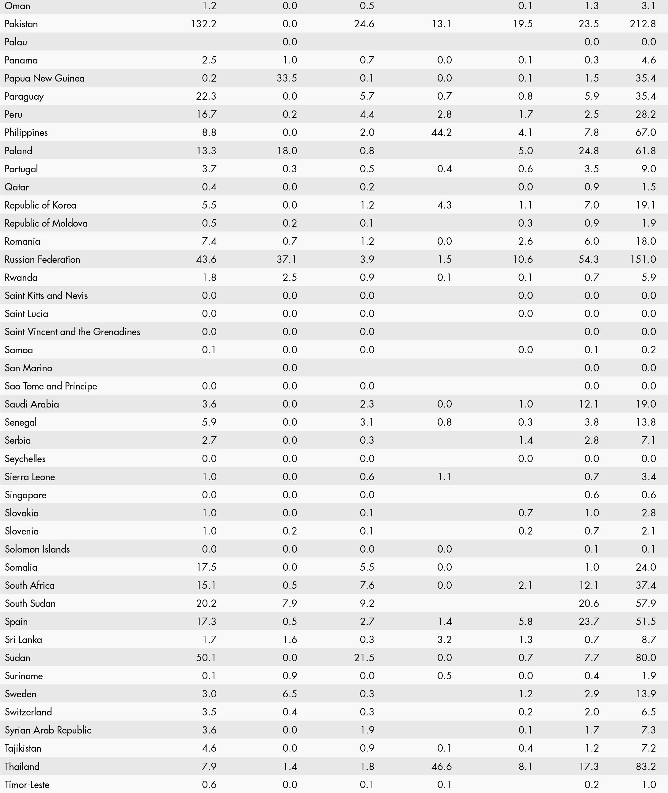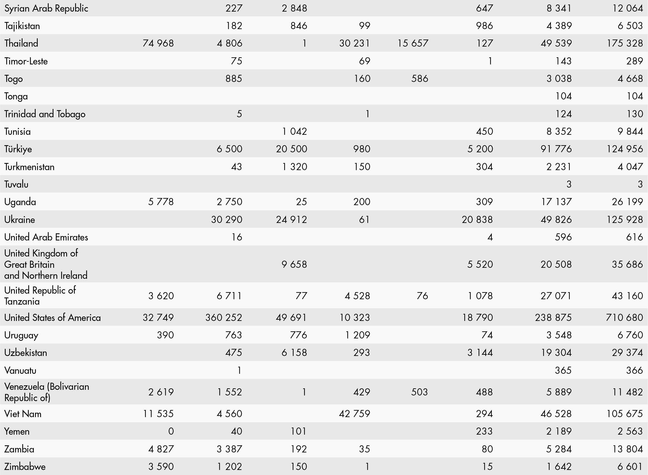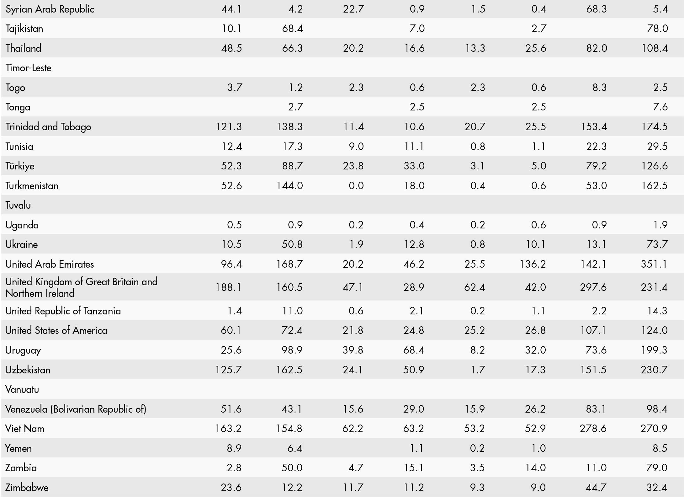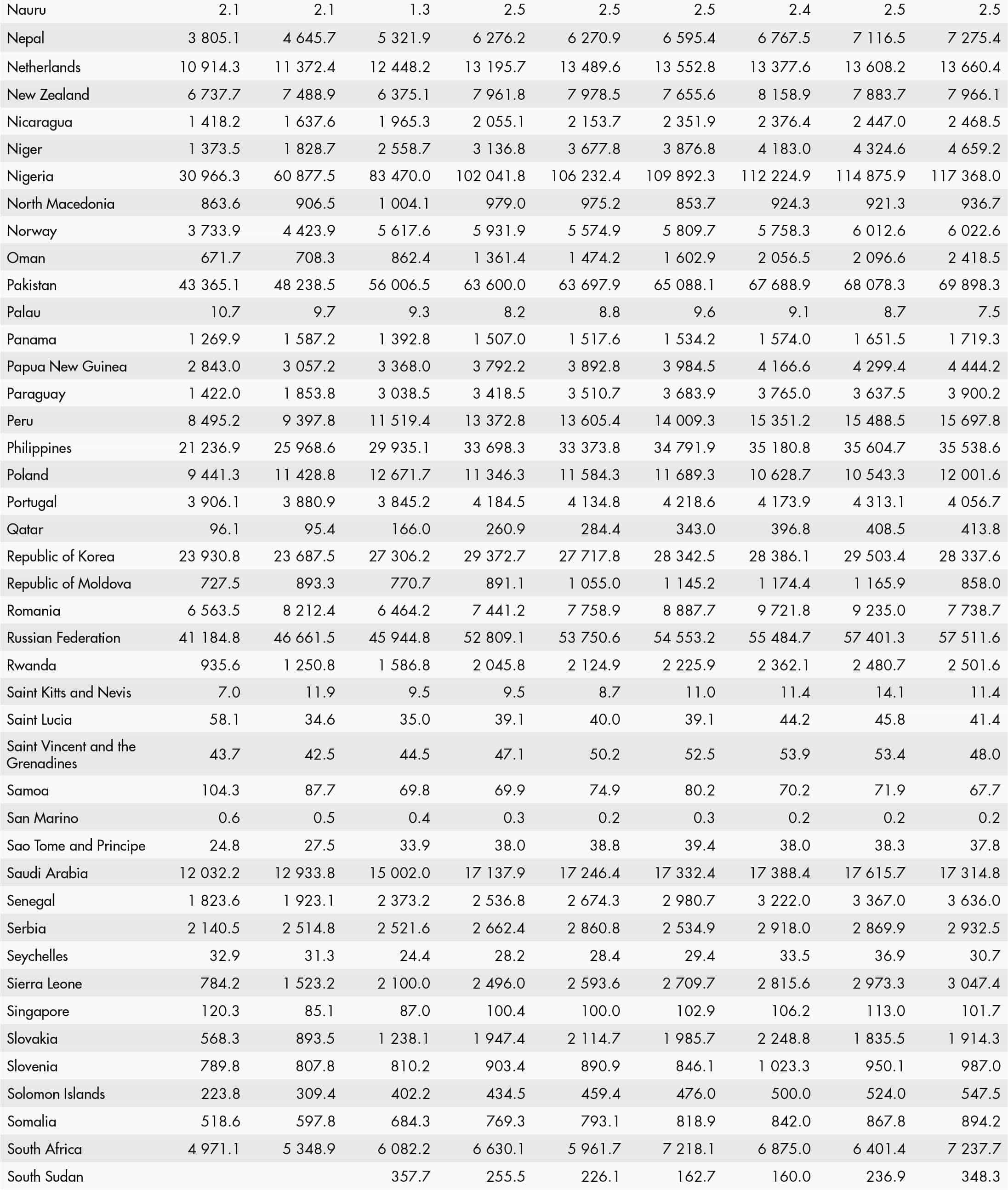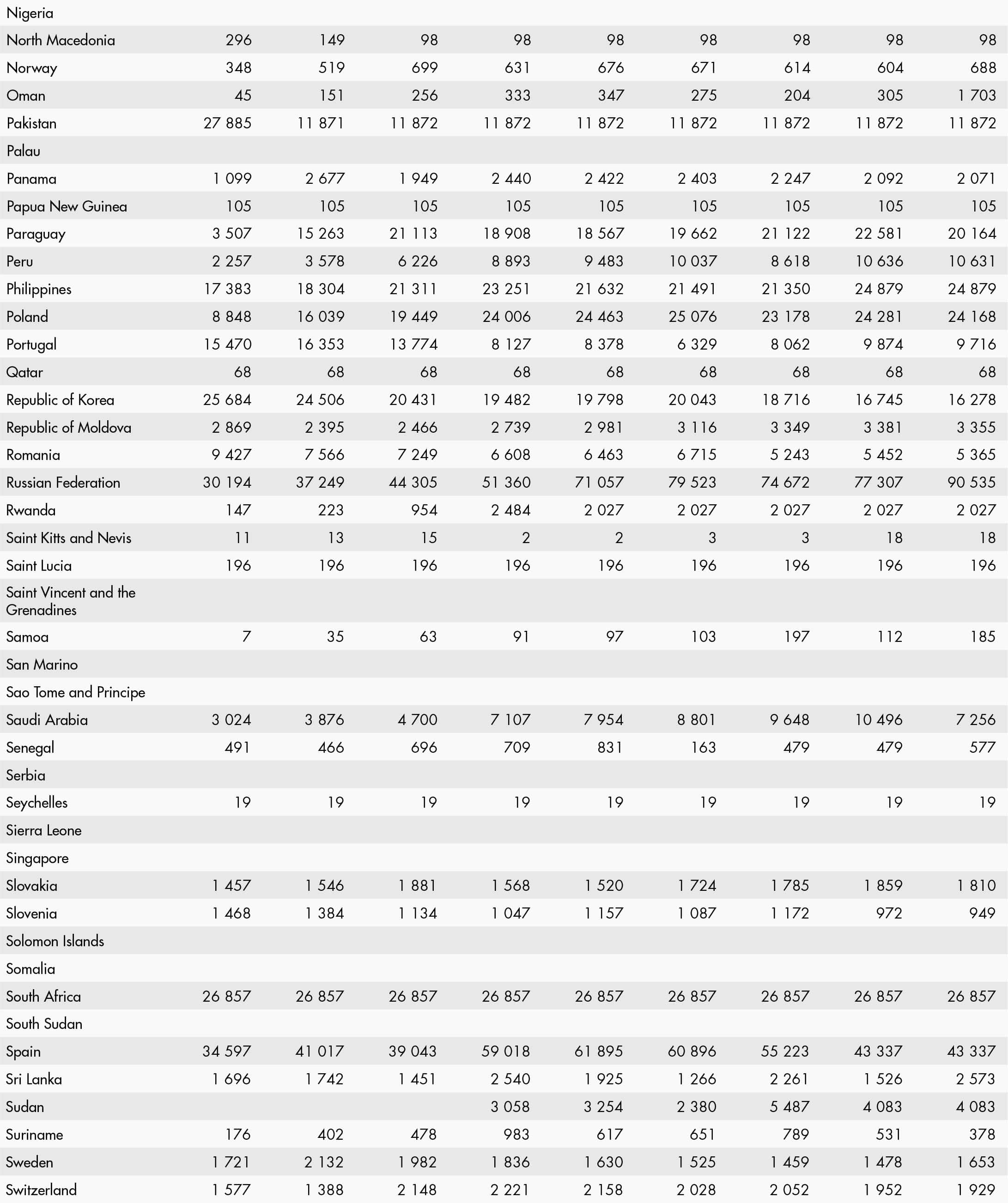 The country classification adopted in this publication is based on the United Nations M49 classification (https://unstats.un.org/unsd/methodology/m49/). The country names have been abbreviated in the data tables and figures. The official Food and Agriculture Organization of the United Nations (FAO) names can be found at http://www.fao.org/nocs/en.
