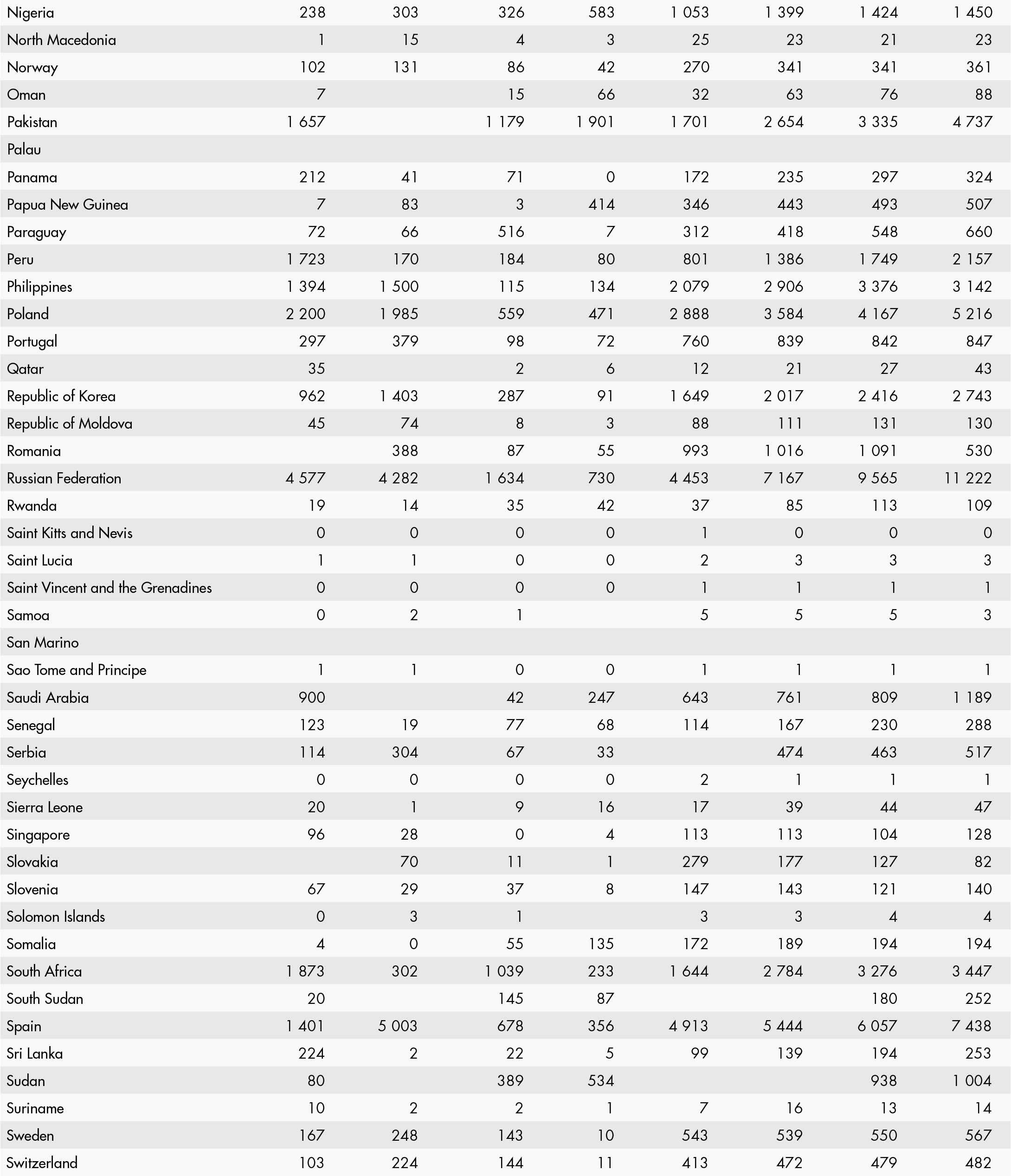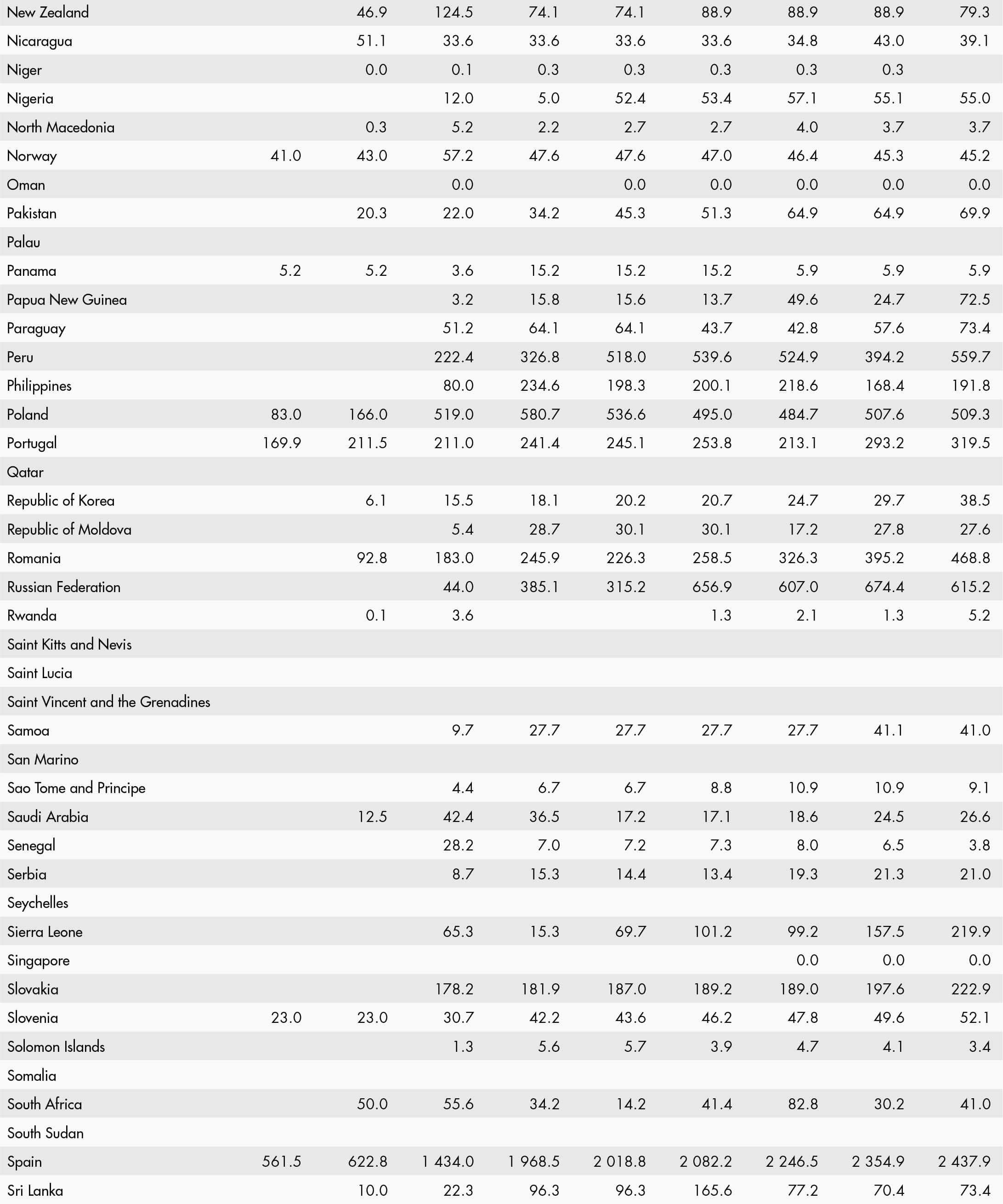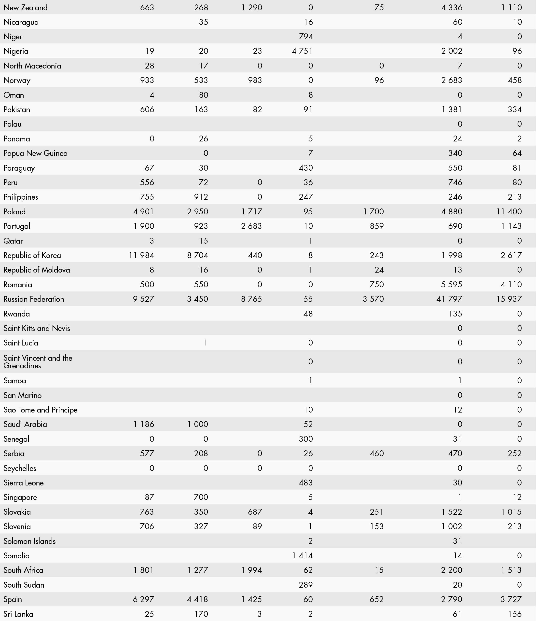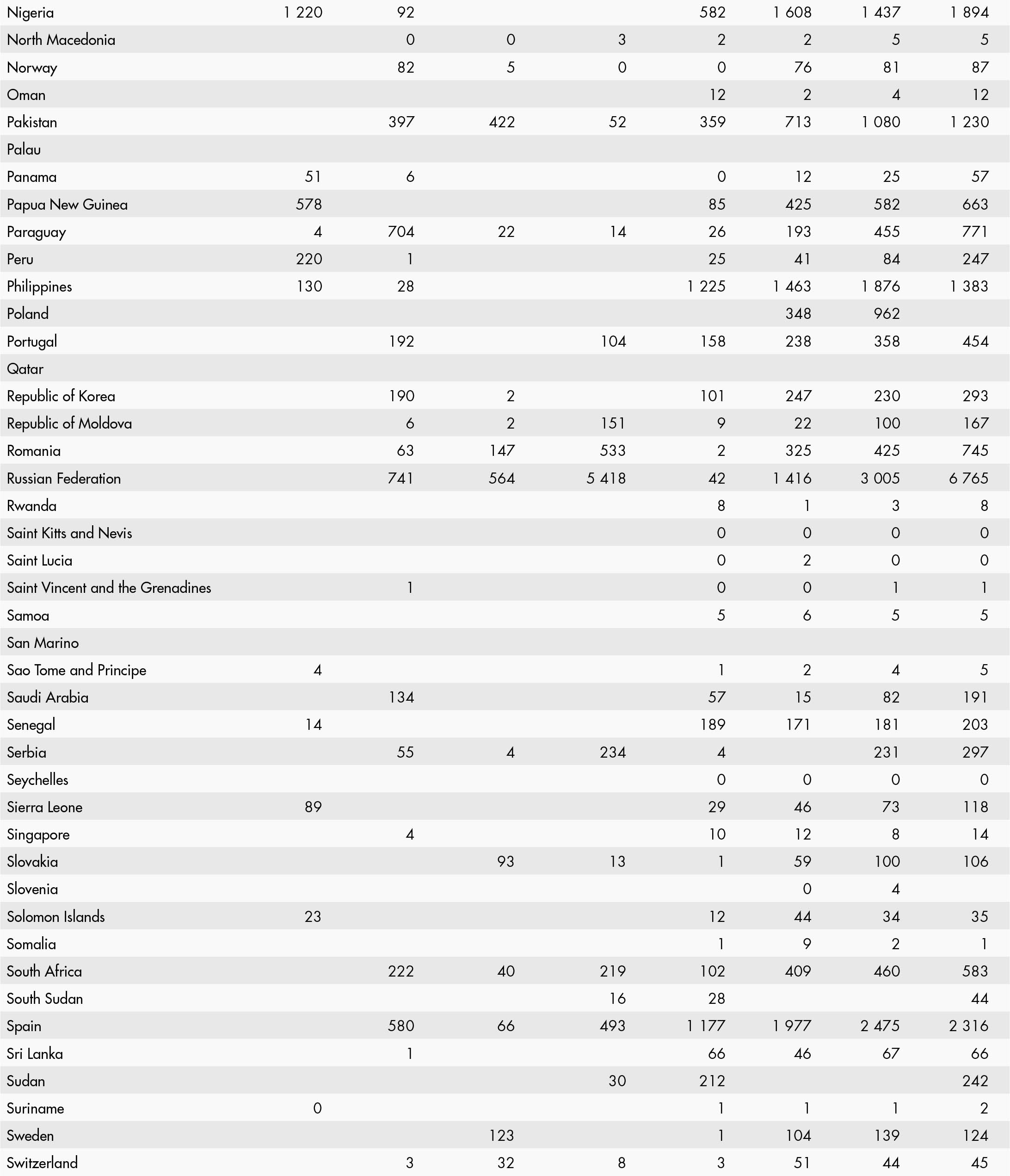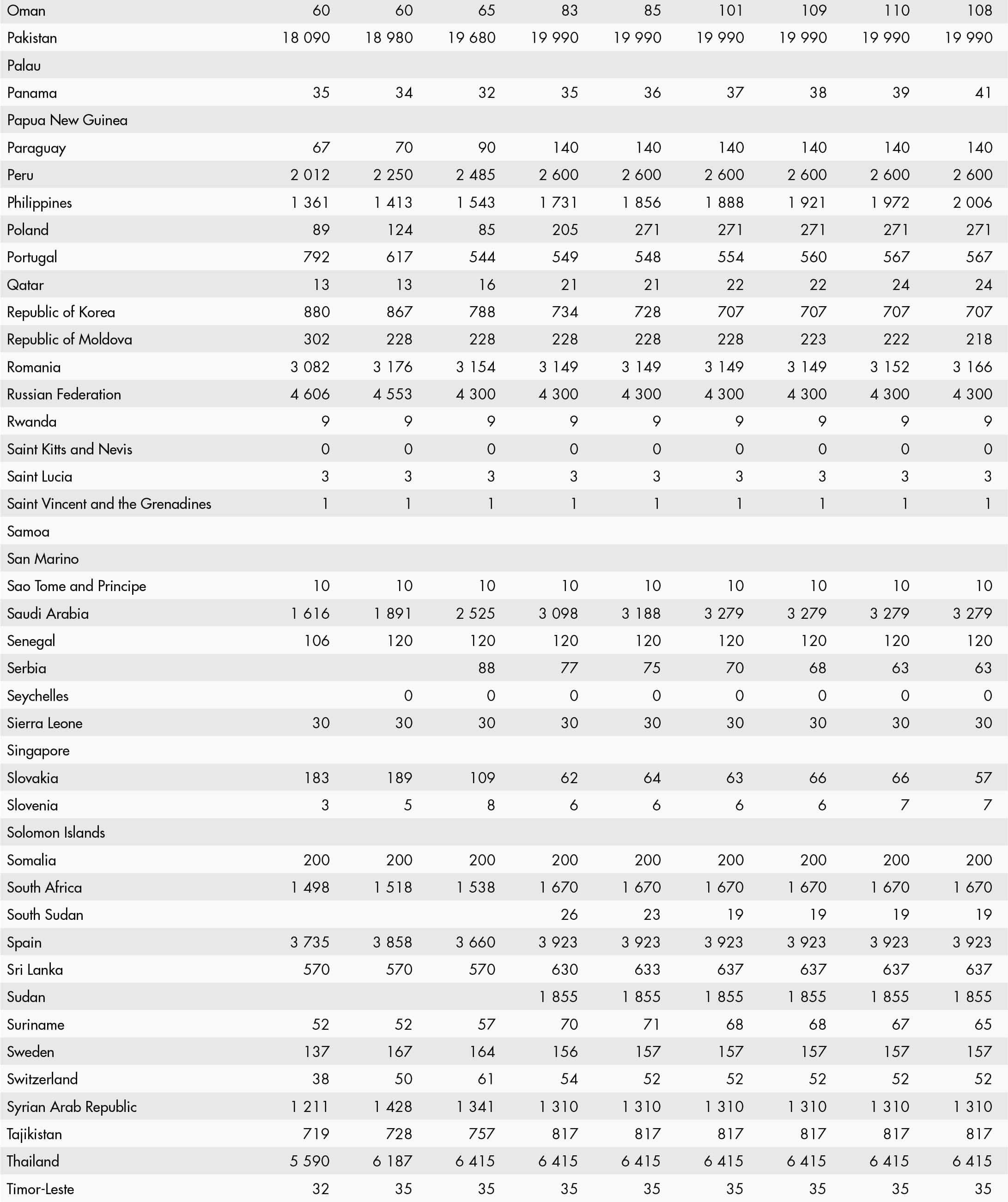 The country classification adopted in this publication is based on the United Nations M49 classification (https://unstats.un.org/unsd/methodology/m49/). The country names have been abbreviated in the data tables and figures. The official Food and Agriculture Organization of the United Nations (FAO) names can be found at http://www.fao.org/nocs/en.