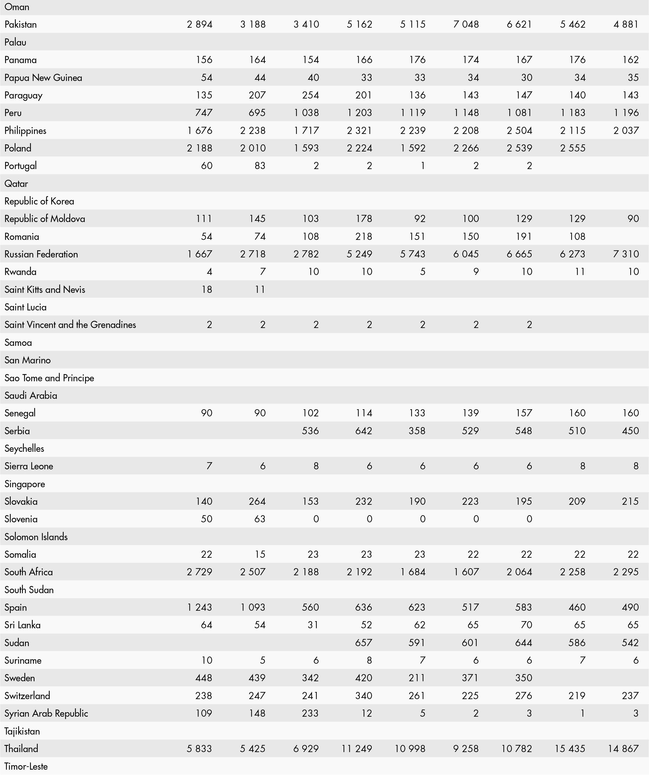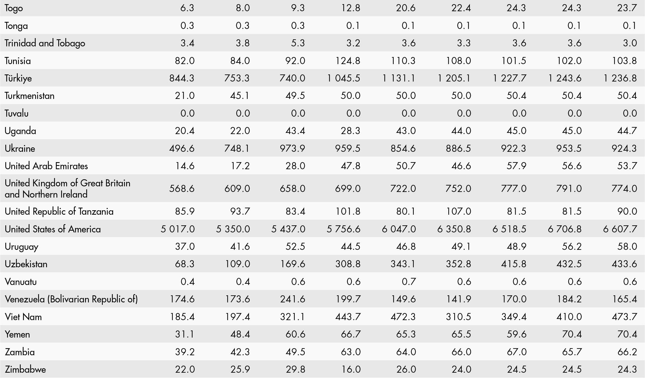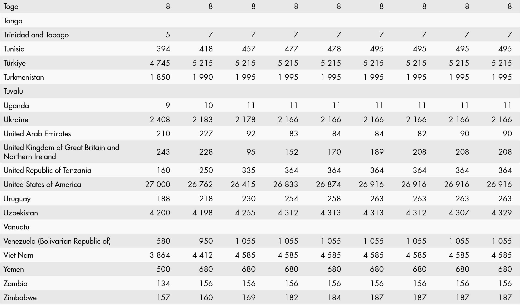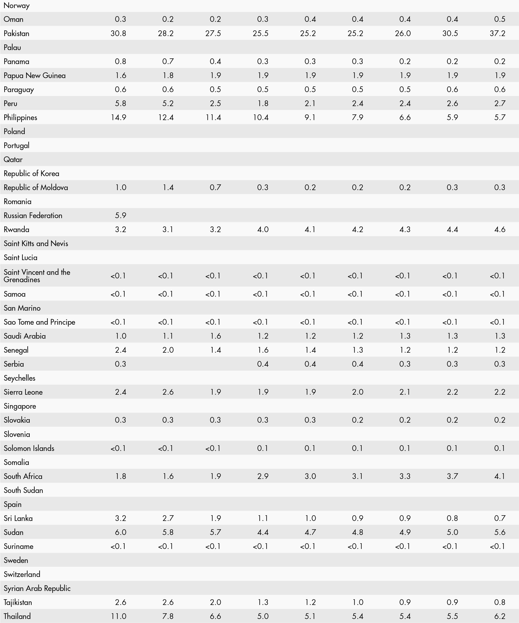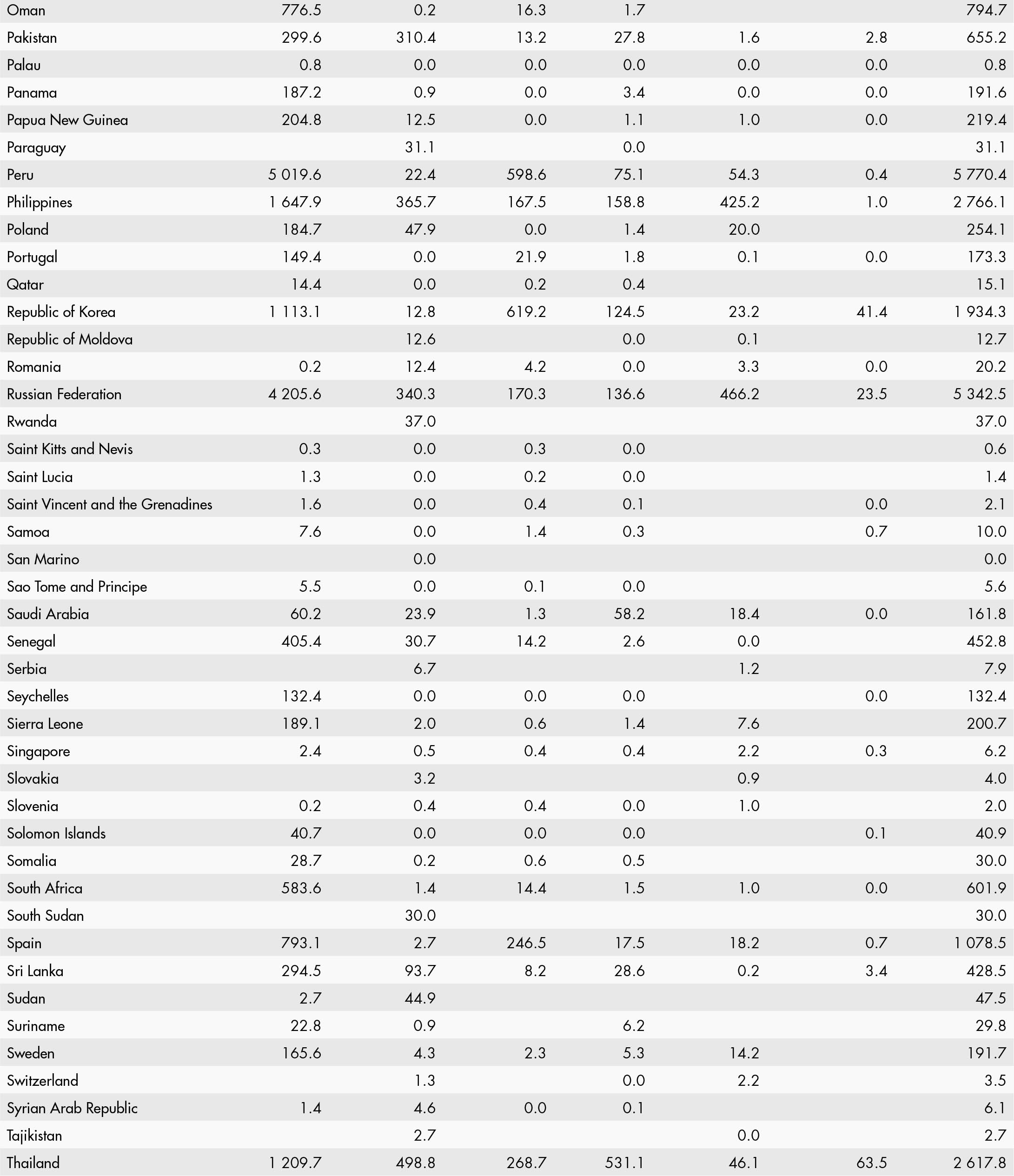The country classification adopted in this publication is based on the United Nations M49 classification (https://unstats.un.org/unsd/methodology/m49/). The country names have been abbreviated in the data tables and figures. The official Food and Agriculture Organization of the United Nations (FAO) names can be found at http://www.fao.org/nocs/en.