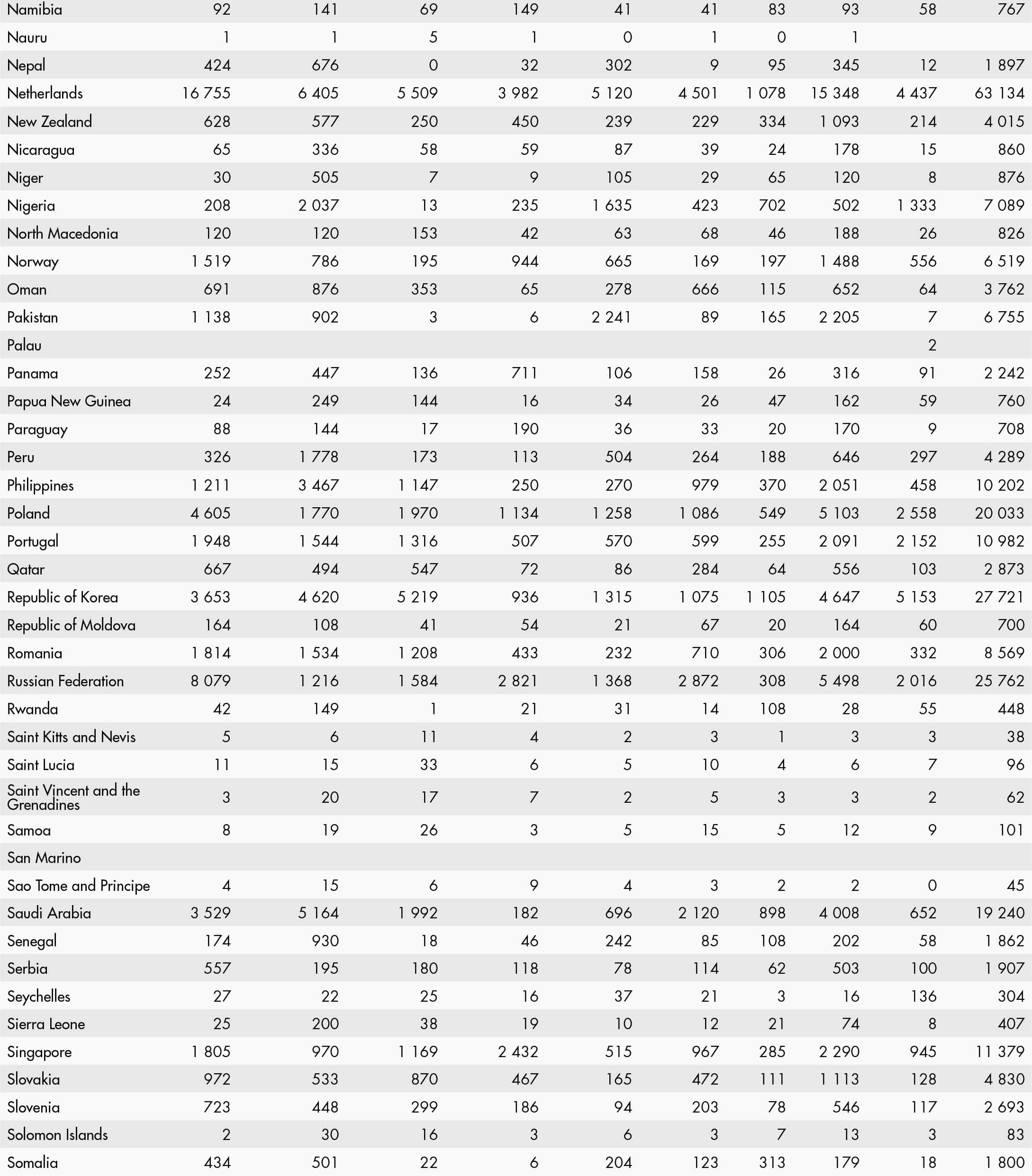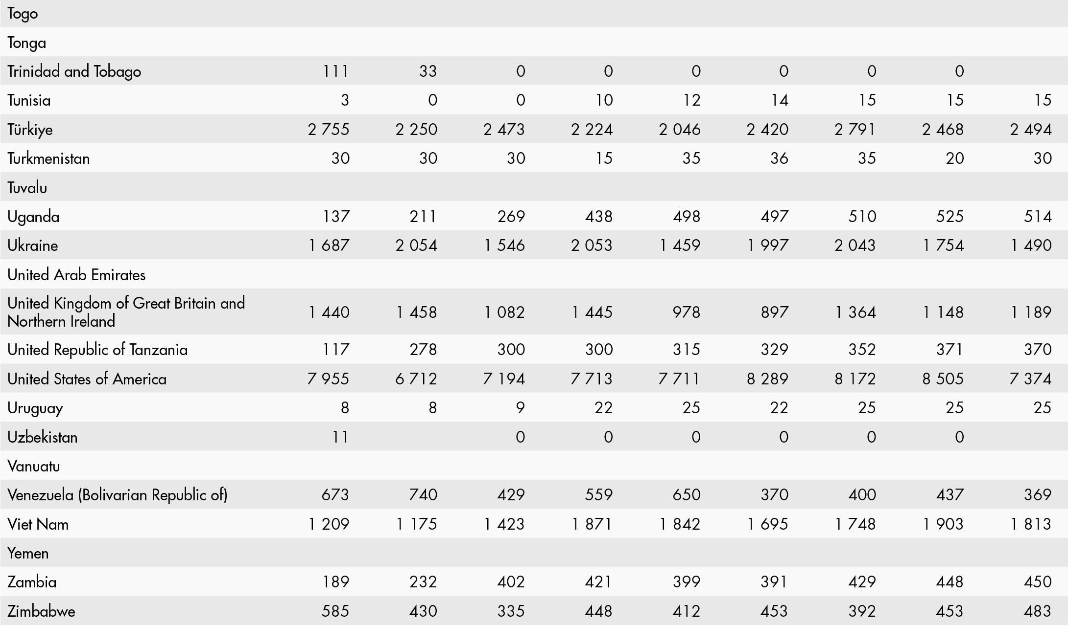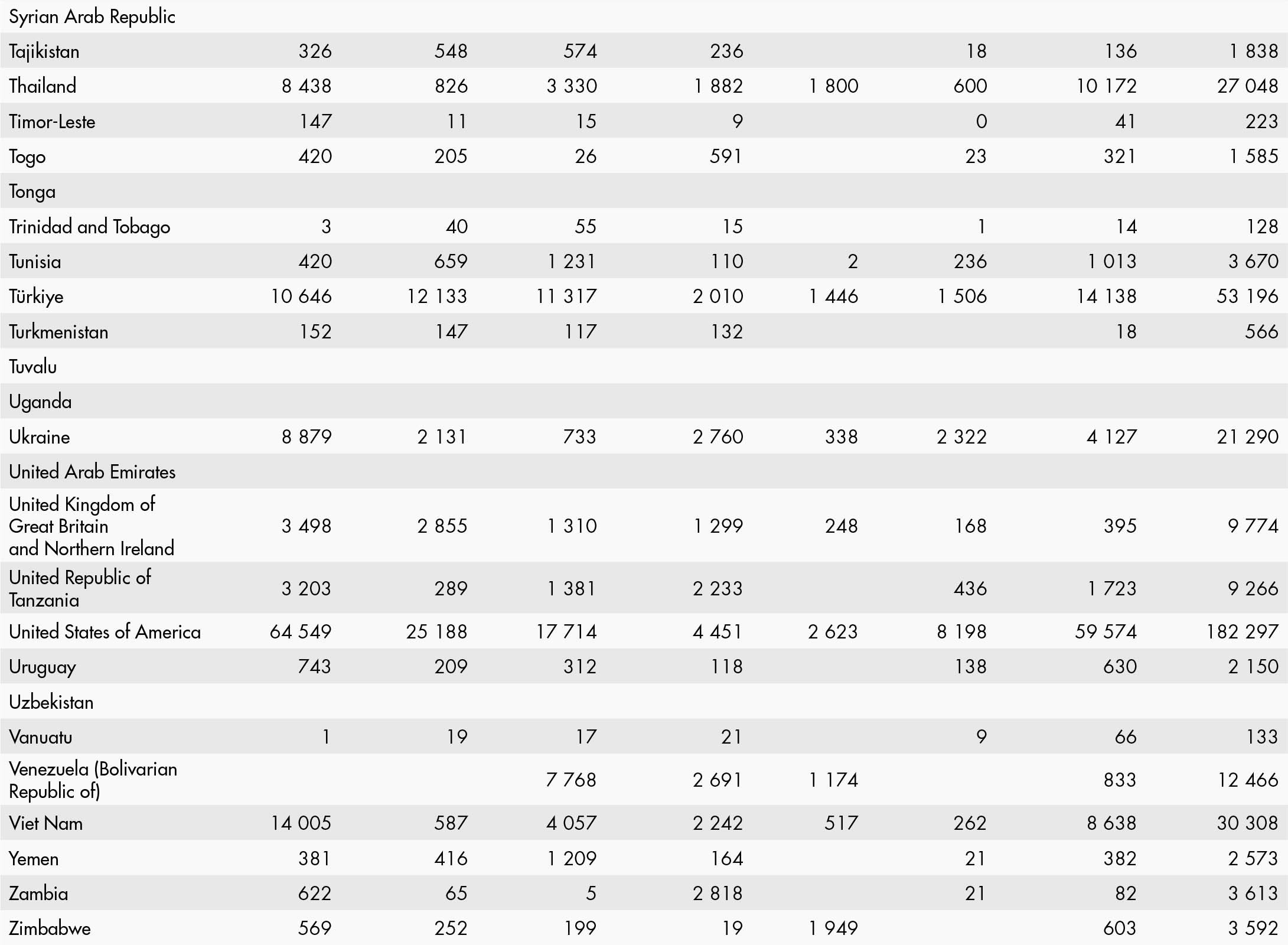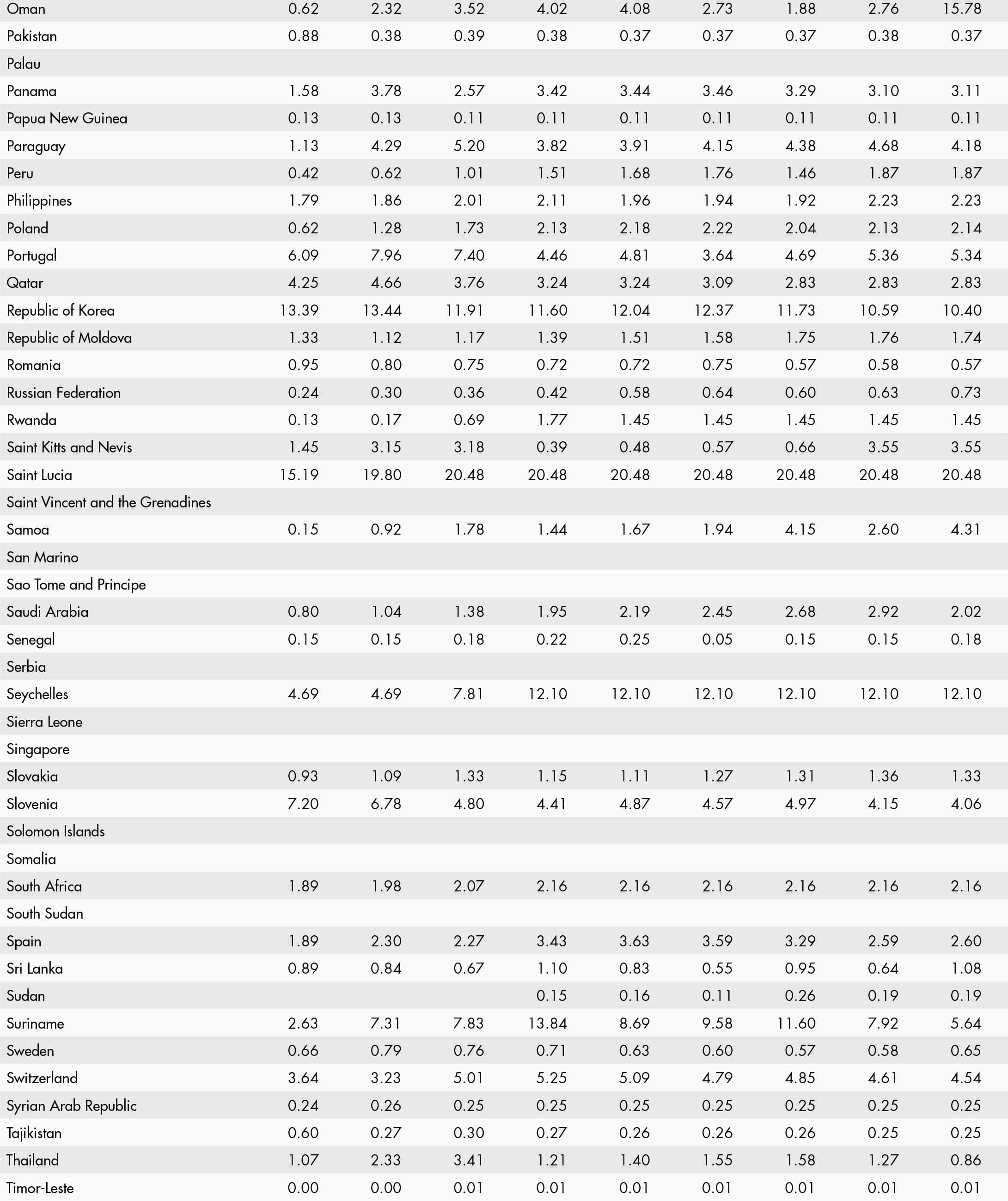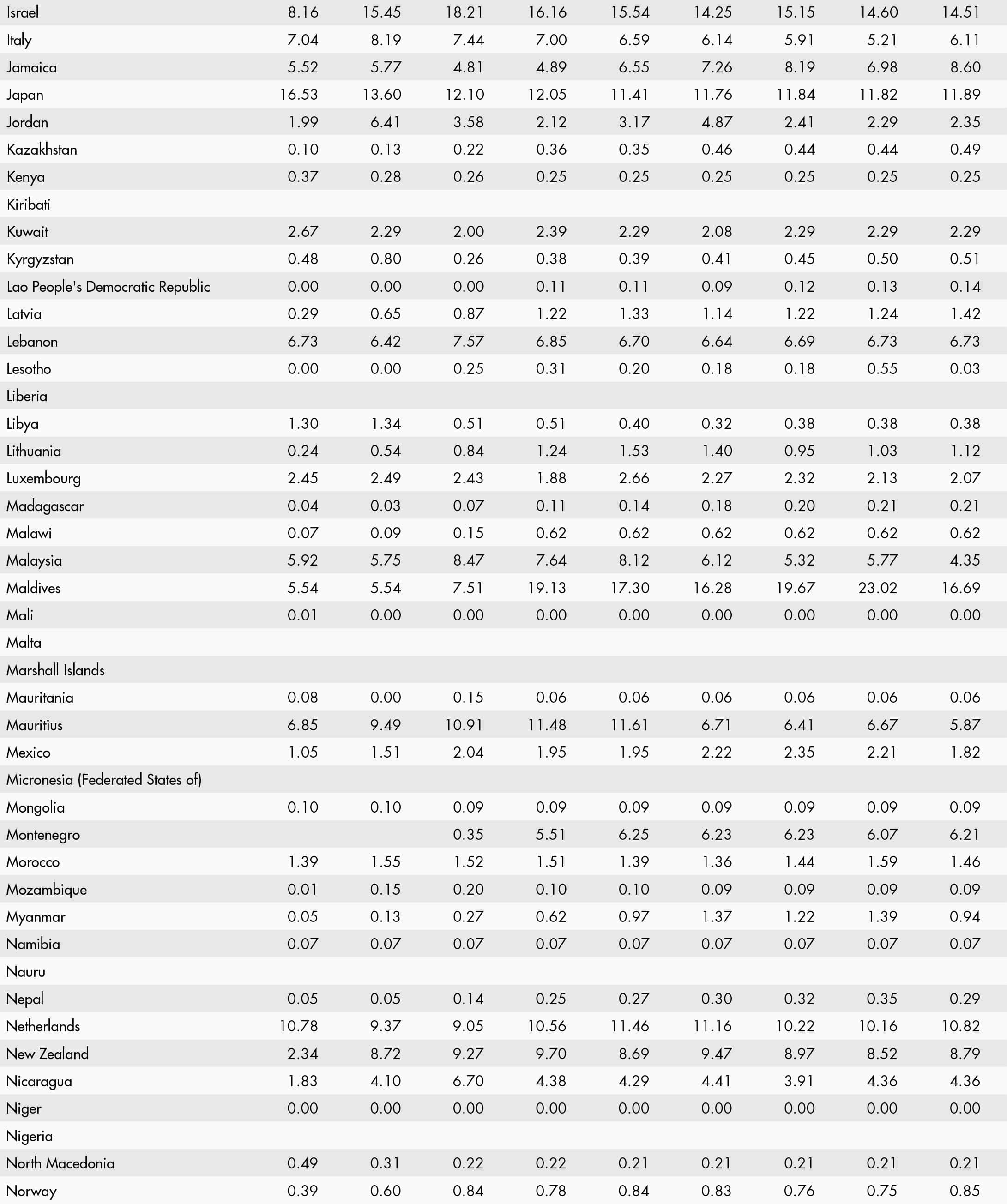 The country classification adopted in this publication is based on the United Nations M49 classification (https://unstats.un.org/unsd/methodology/m49/). The country names have been abbreviated in the data tables and figures. The official Food and Agriculture Organization of the United Nations (FAO) names can be found at http://www.fao.org/nocs/en.