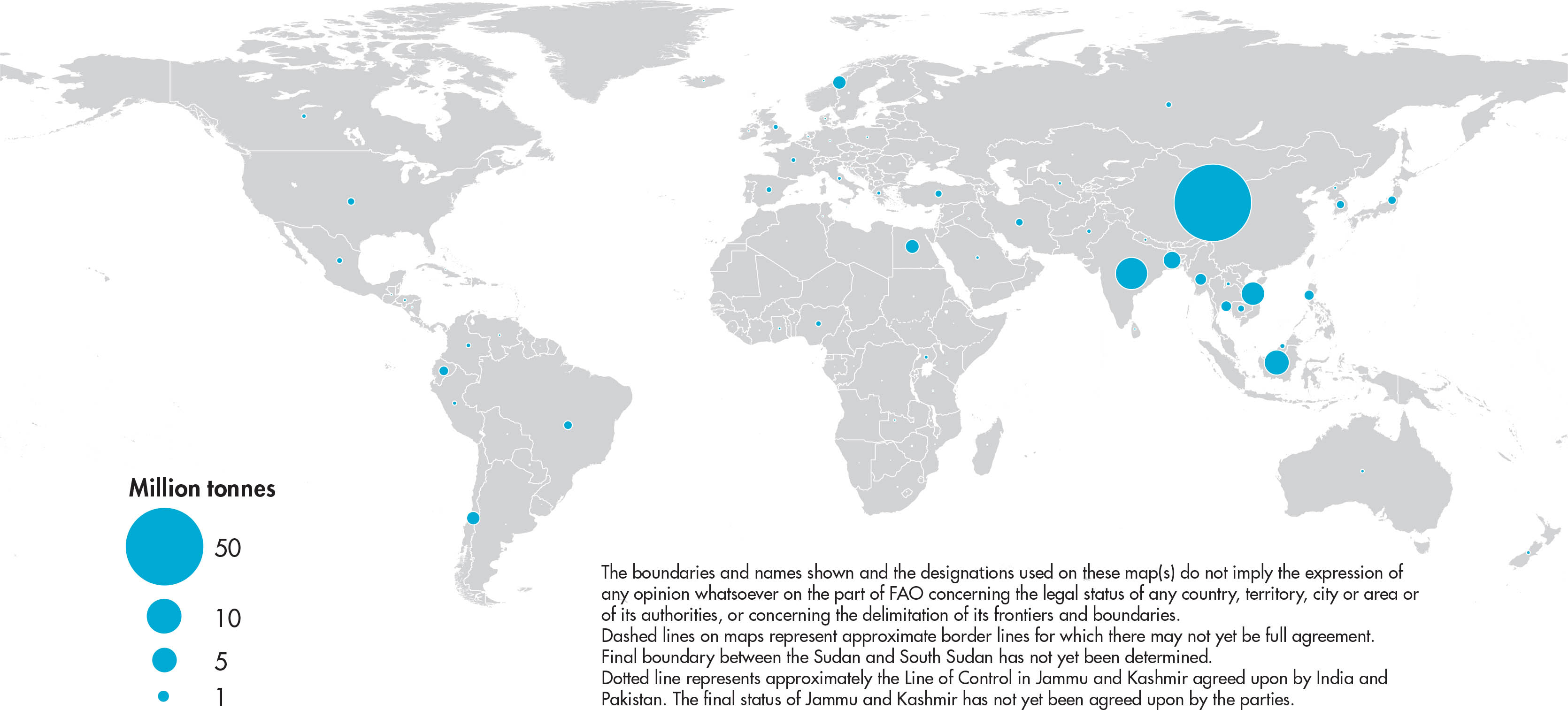 32. World capture fisheries and aquaculture production by main producers (2020)