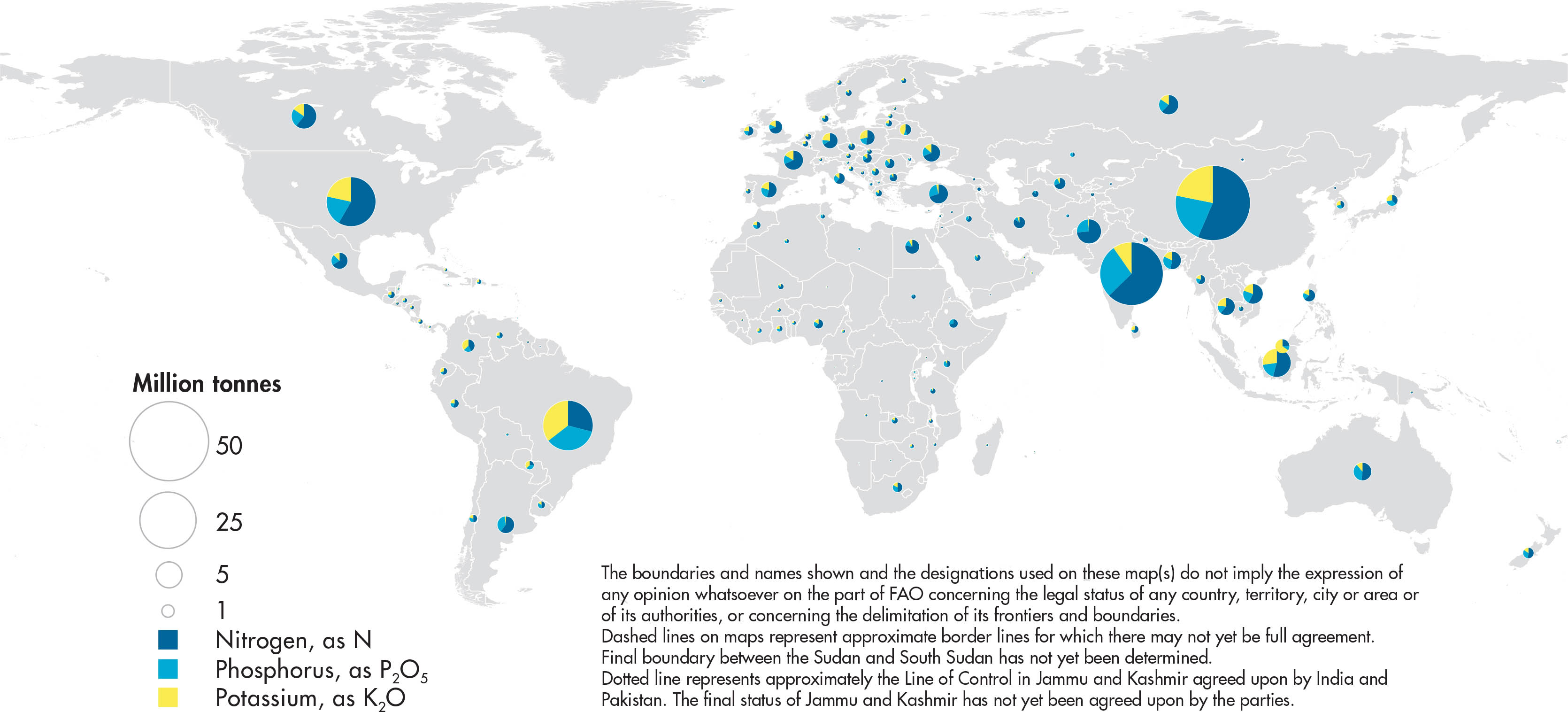 The use of fertilizers refers to agricultural use of inorganic (mineral or chemical) fertilizers for the three main plant nutrients: nitrogen (N), phosphorus (expressed as P2O5) and potassium (expressed as K2O). It includes both straight fertilizers (those containing only one of the three primary plant nutrients) and compound fertilizers (those containing more than one of the three primary plant nutrients; they may be NP, NK, PK or NPK). Agricultural use refers to the use for crops, livestock, forestry, fisheries and aquaculture, excluding use for animal feed.
