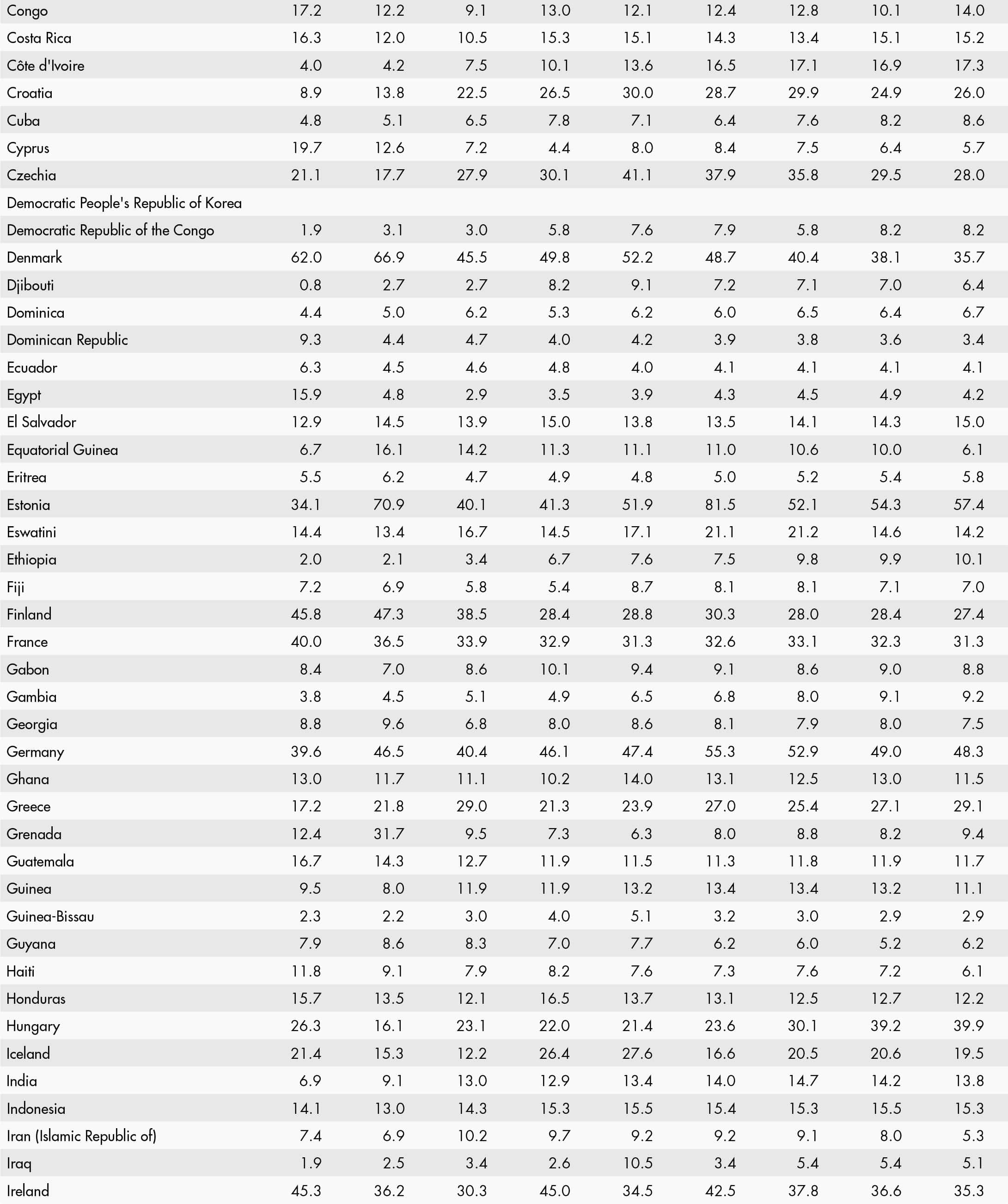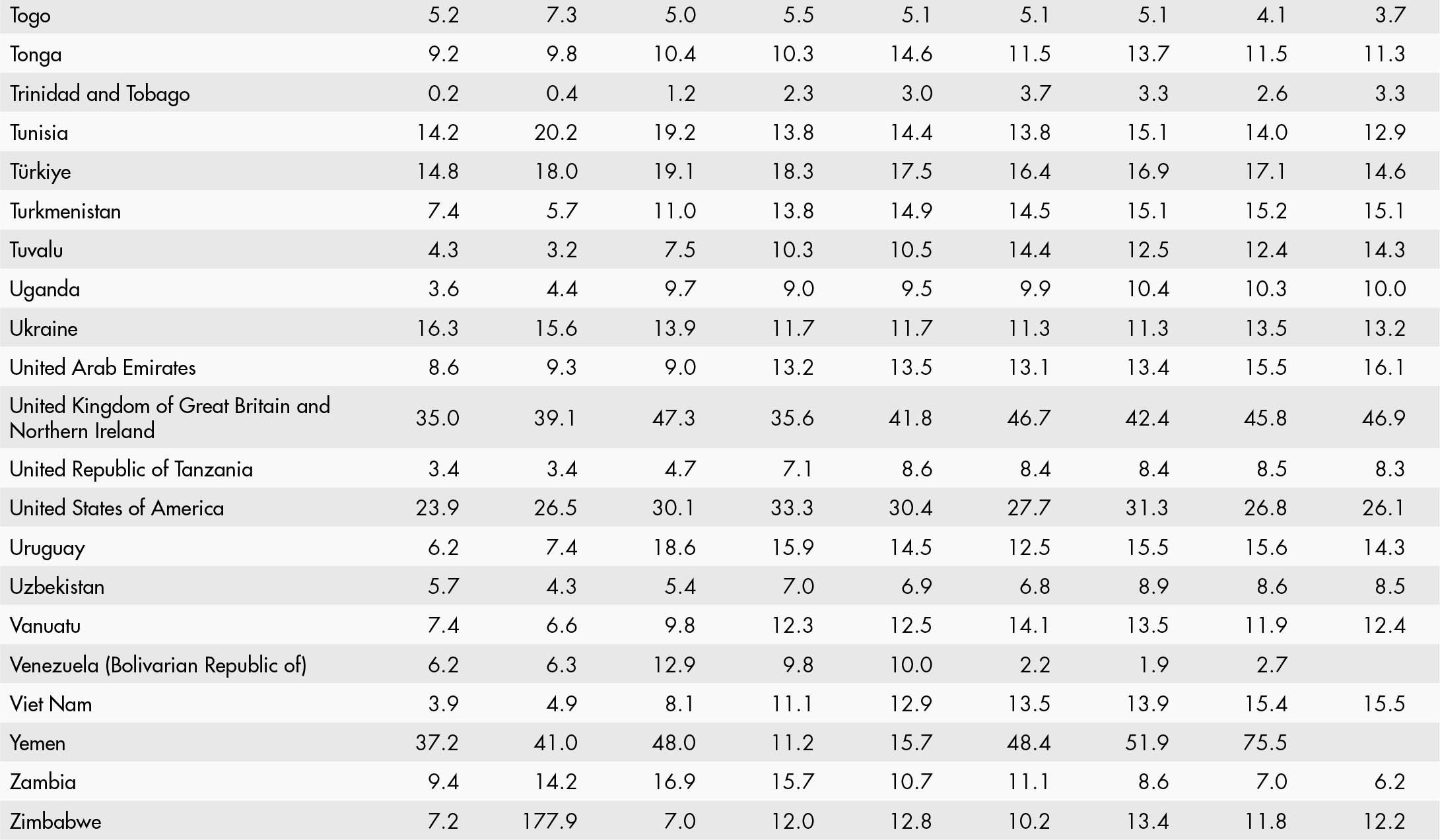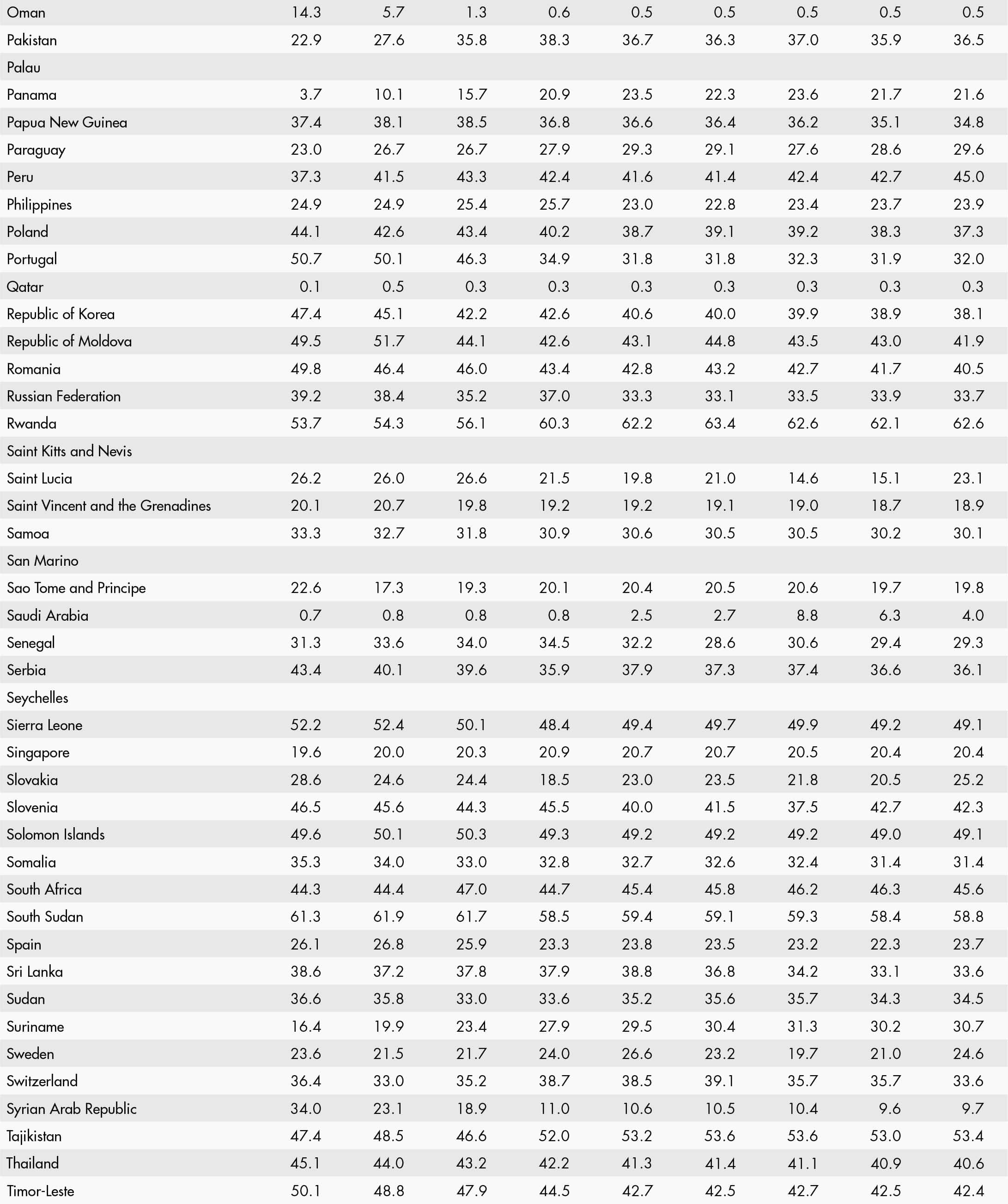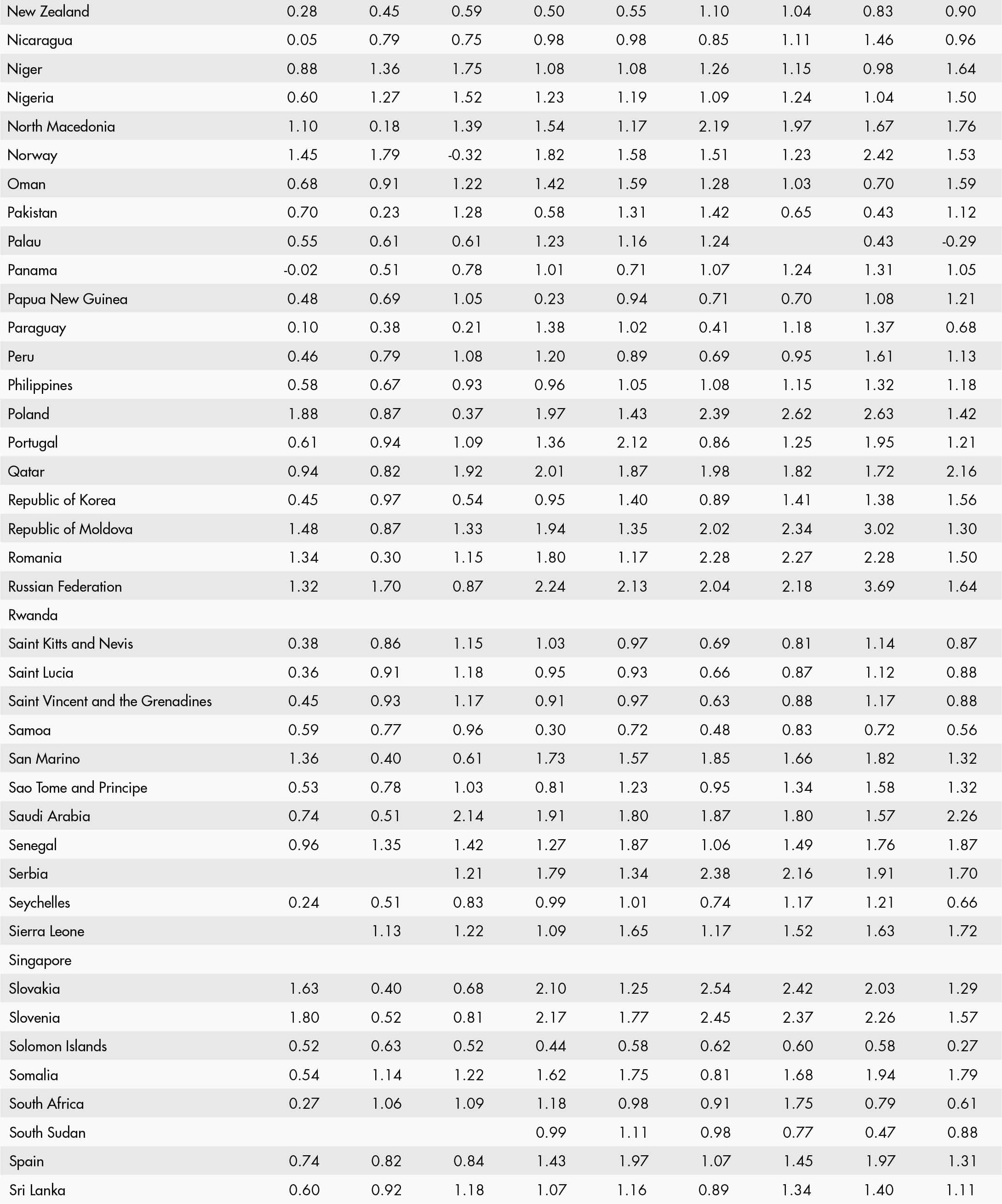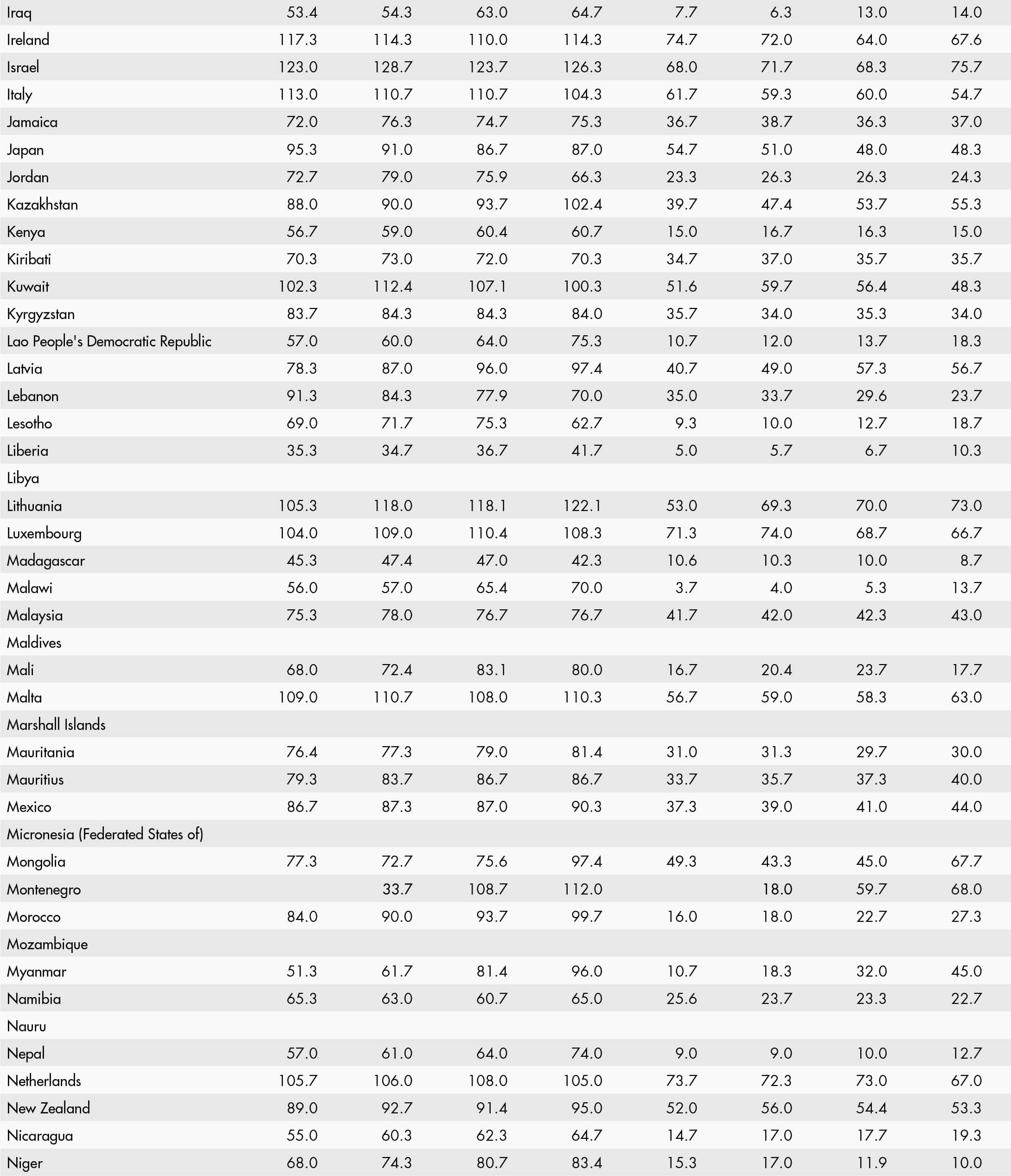 • A blank means that data are not available or that aggregates cannot be calculated because of missing data for the years shown.