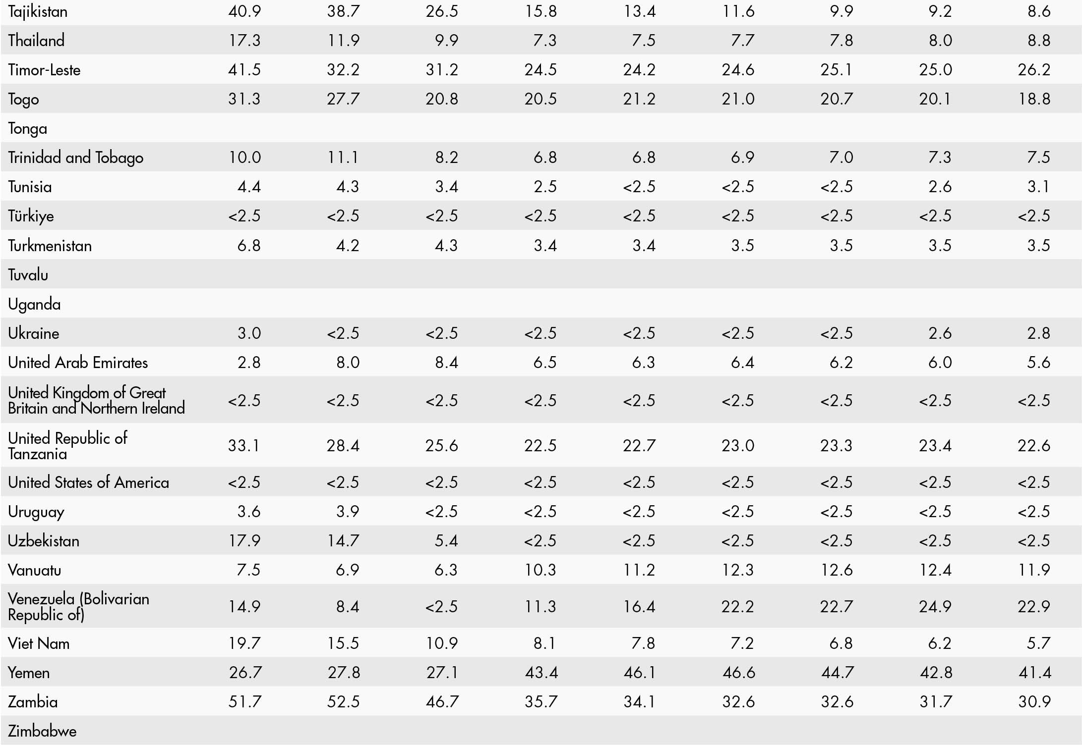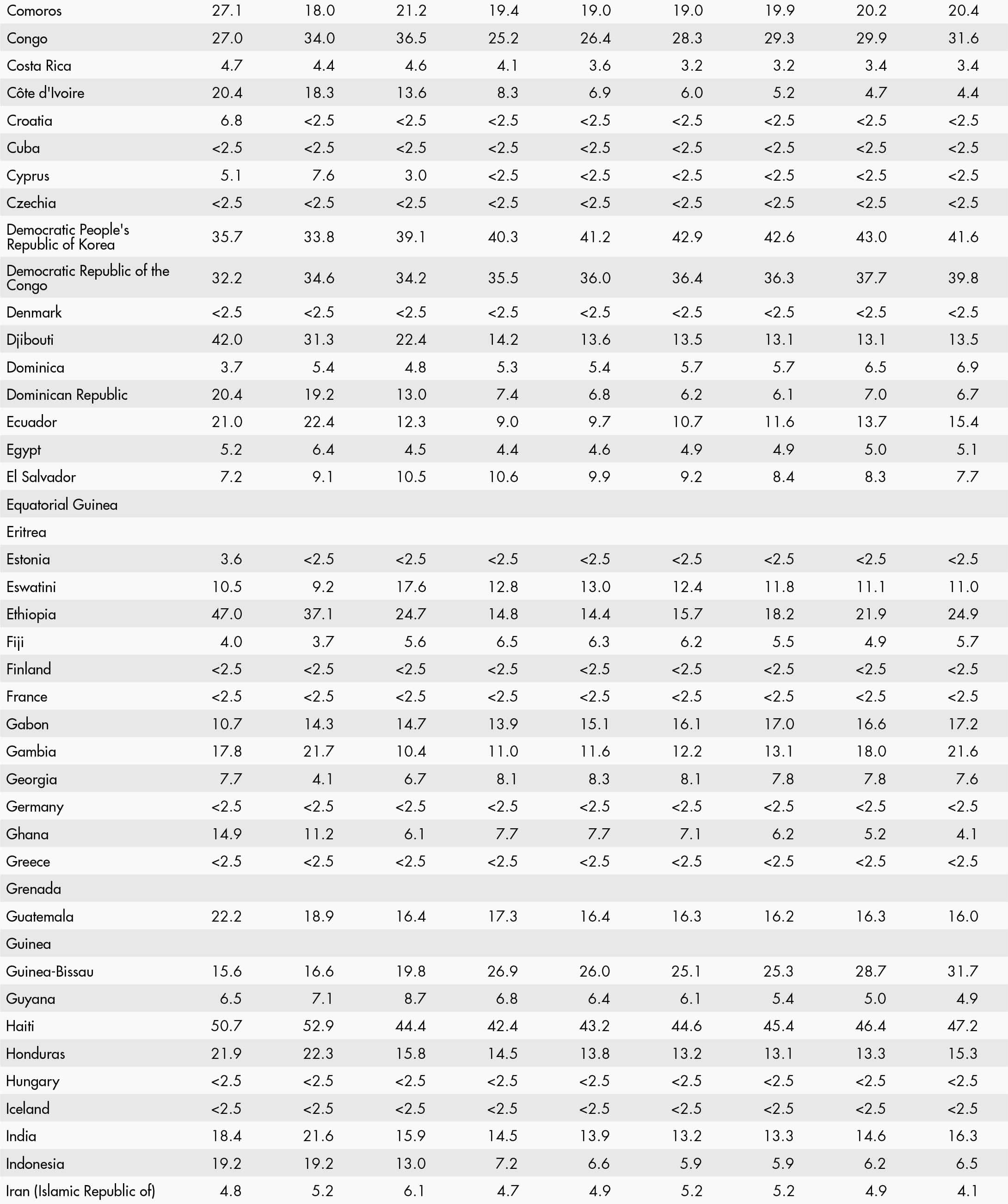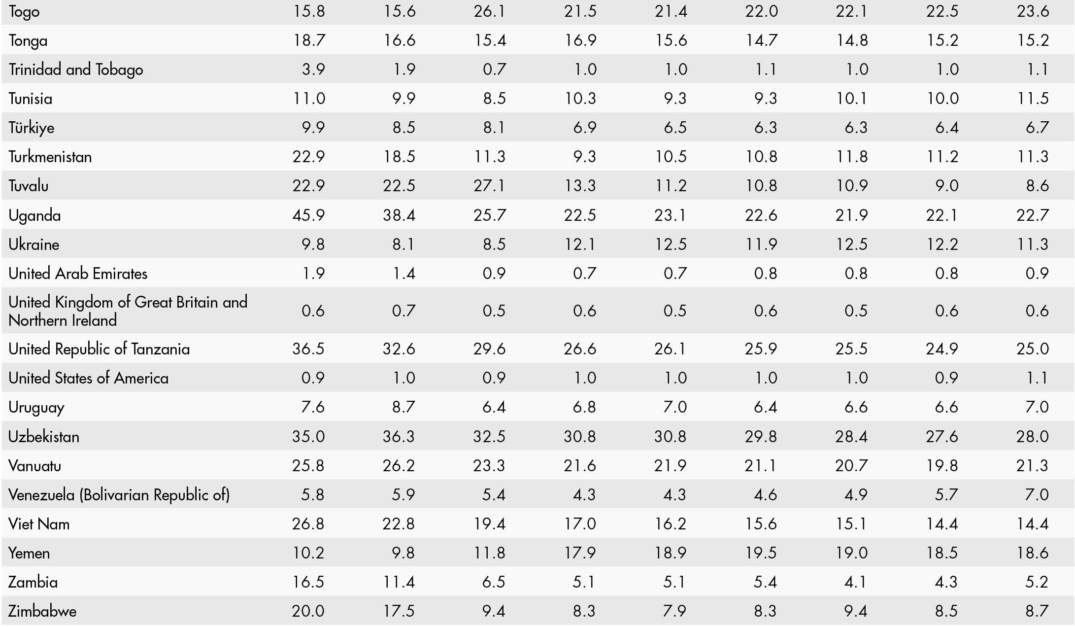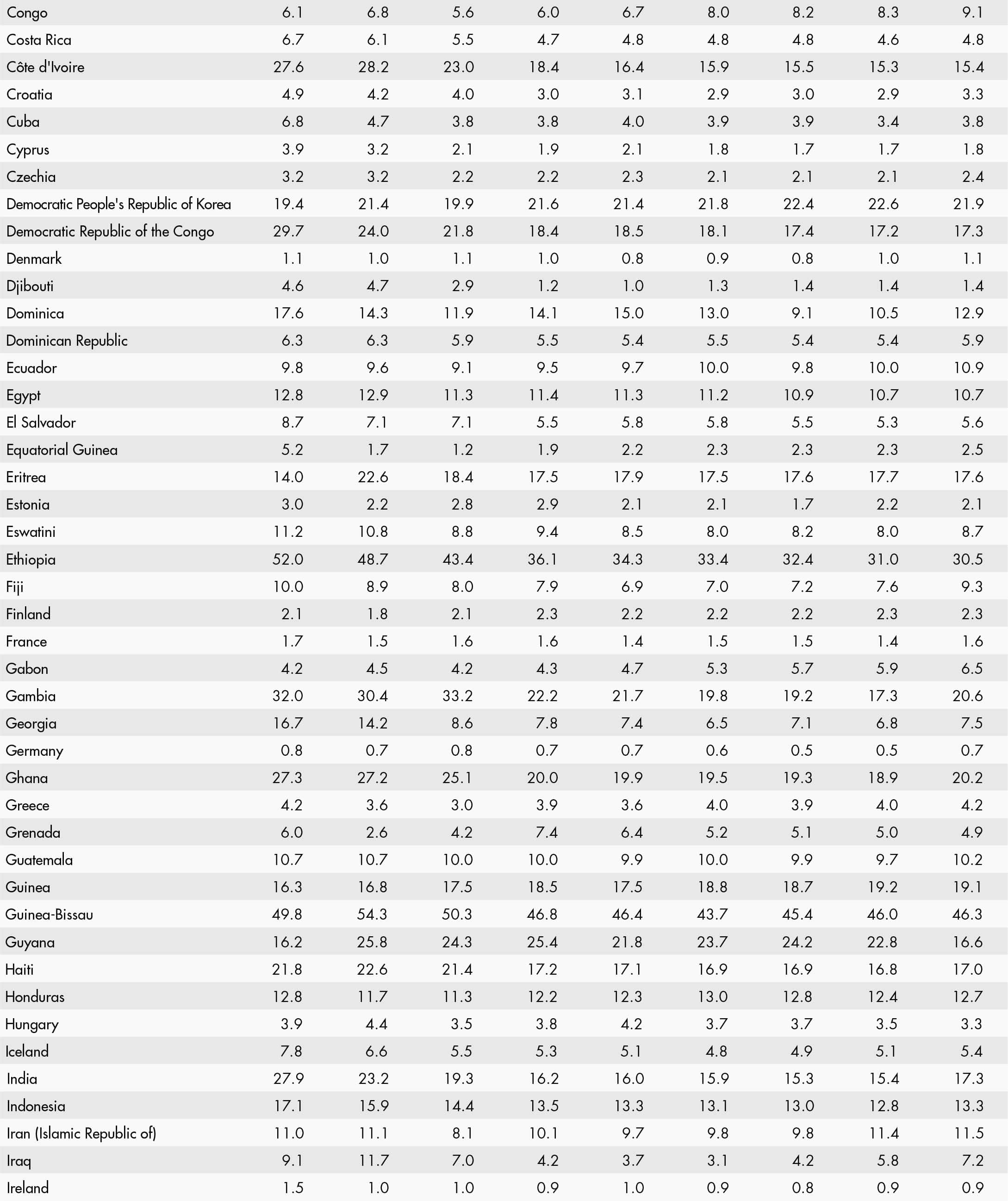 Regional and subregional aggregates are based on the country groupings defined in the United Nations M49 classification. A small subset of indicators used in Part 3 is based on the aggregation rules defined in The State of Food Security and Nutrition in the World 2022 report, which can be found at https://doi.org/10.4060/cc0639en.