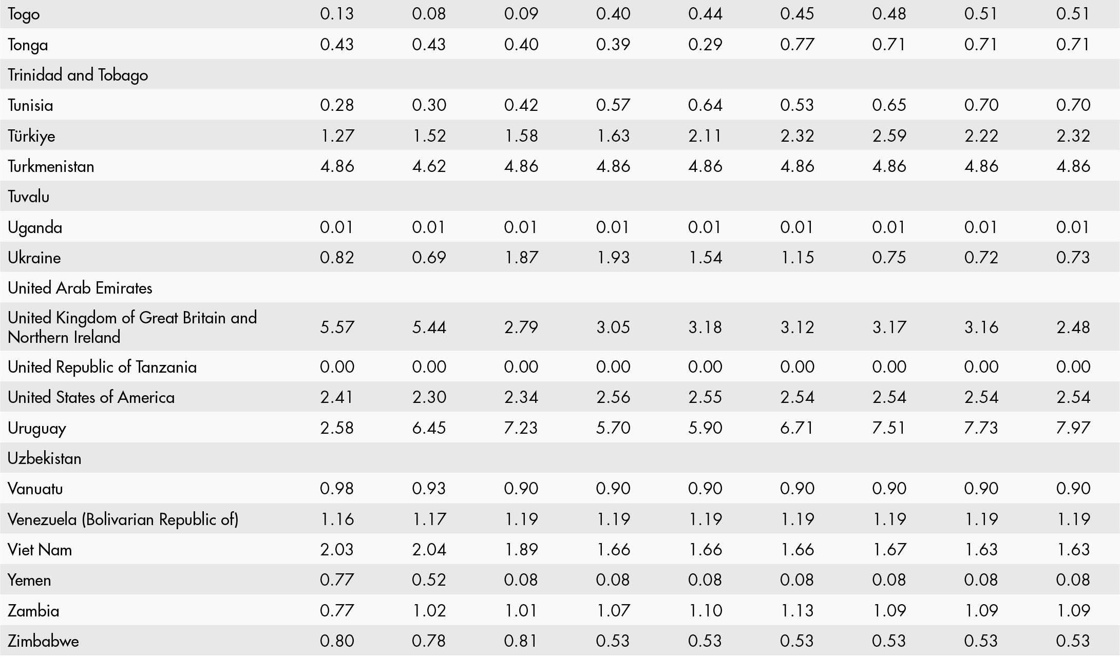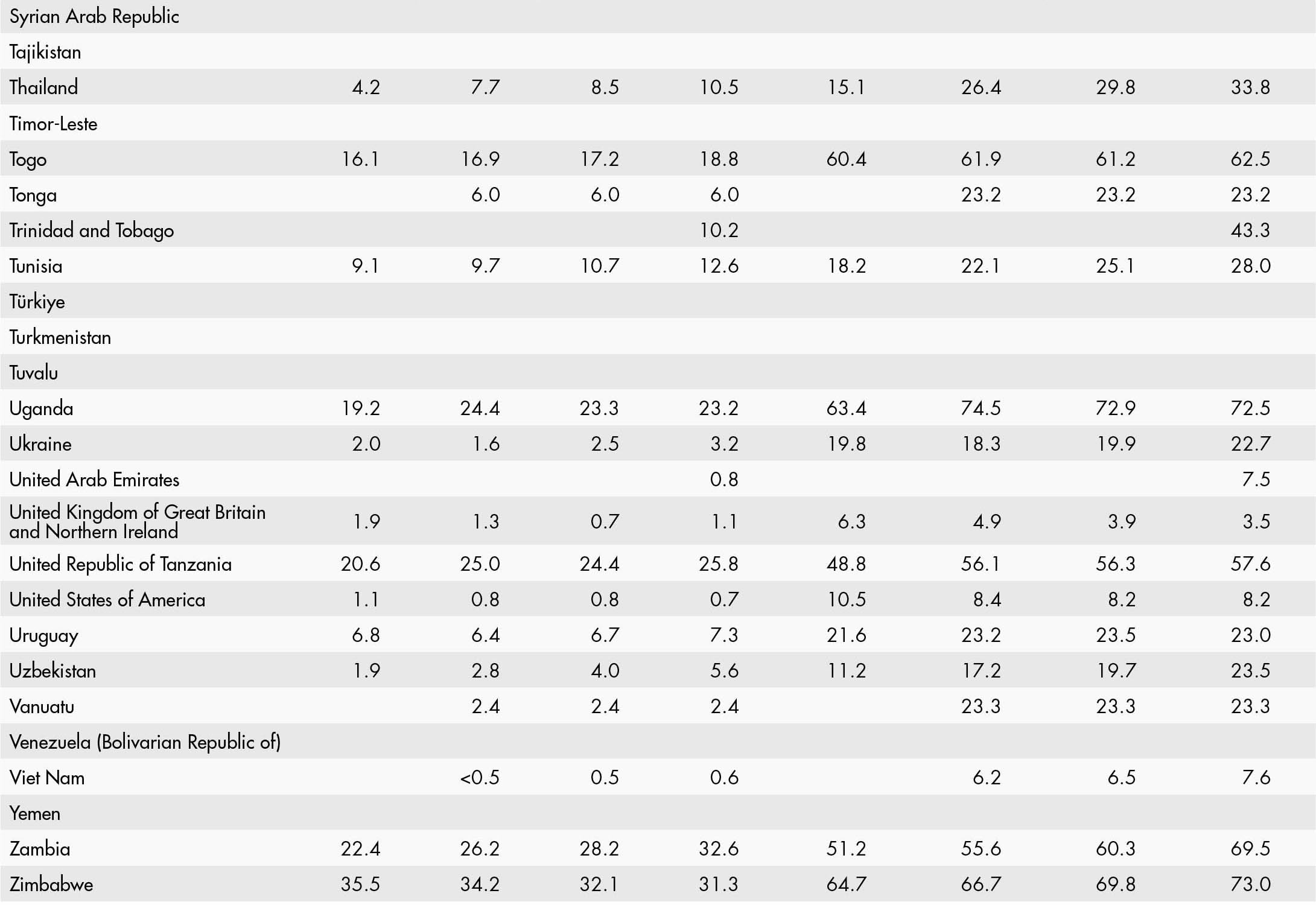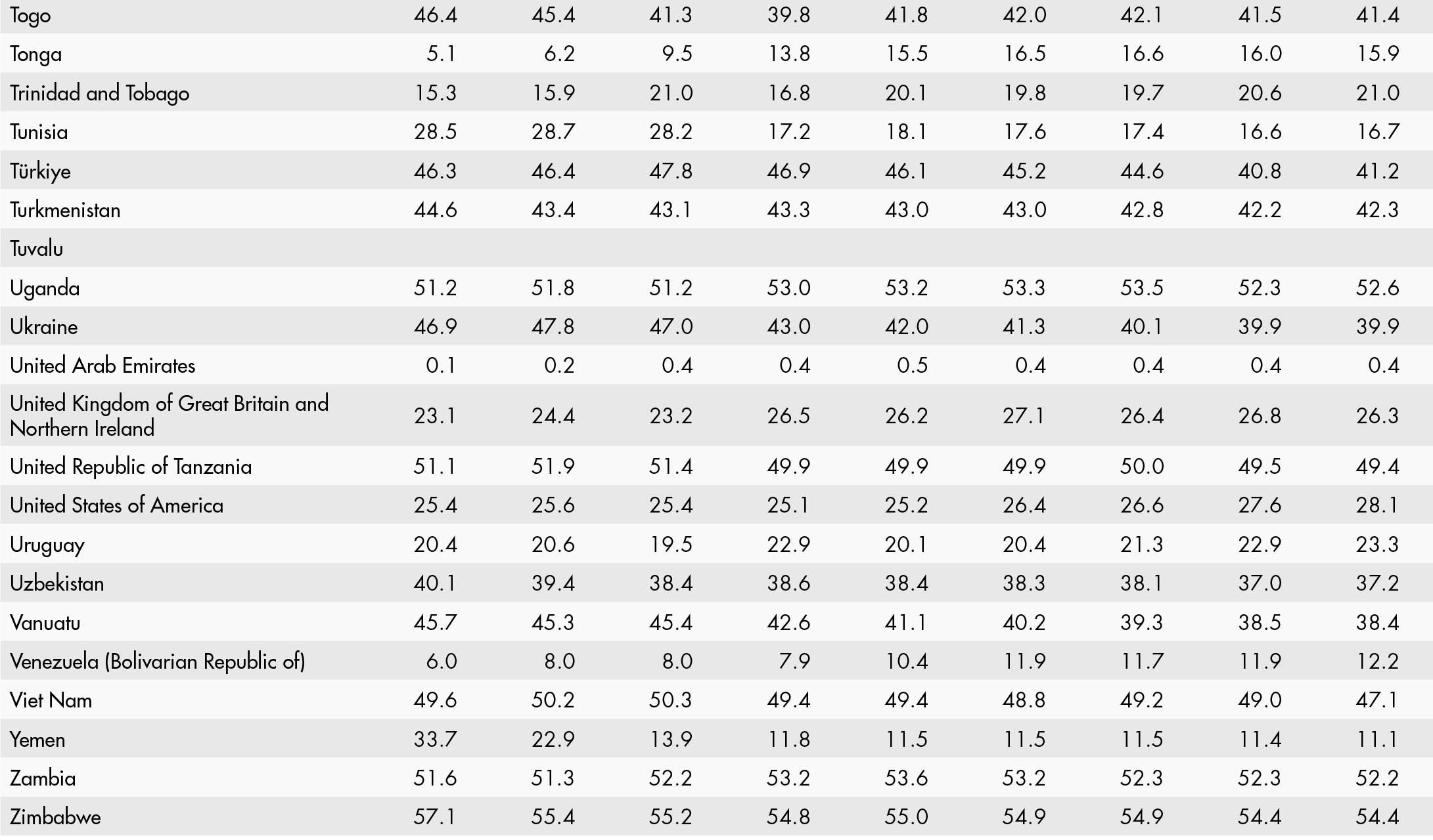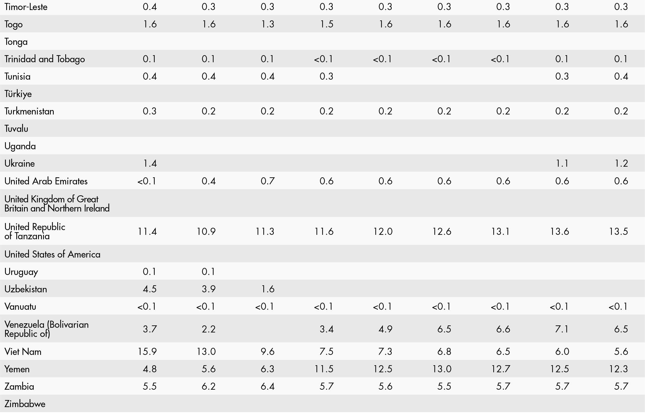 Regional and subregional aggregates are based on the country groupings defined in the United Nations M49 classification. A small subset of indicators used in Part 3 is based on the aggregation rules defined in The State of Food Security and Nutrition in the World 2022 report, which can be found at https://doi.org/10.4060/cc0639en.