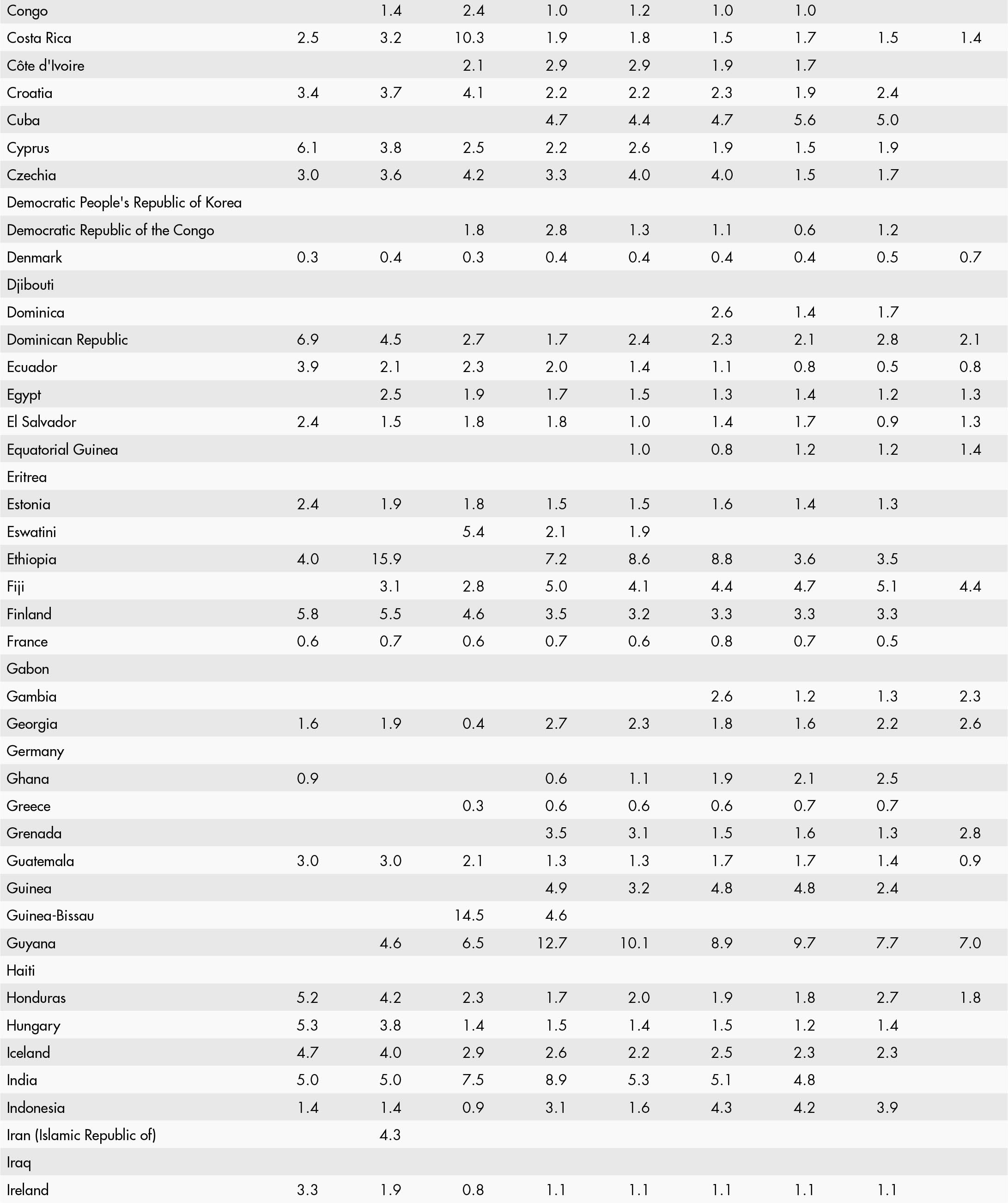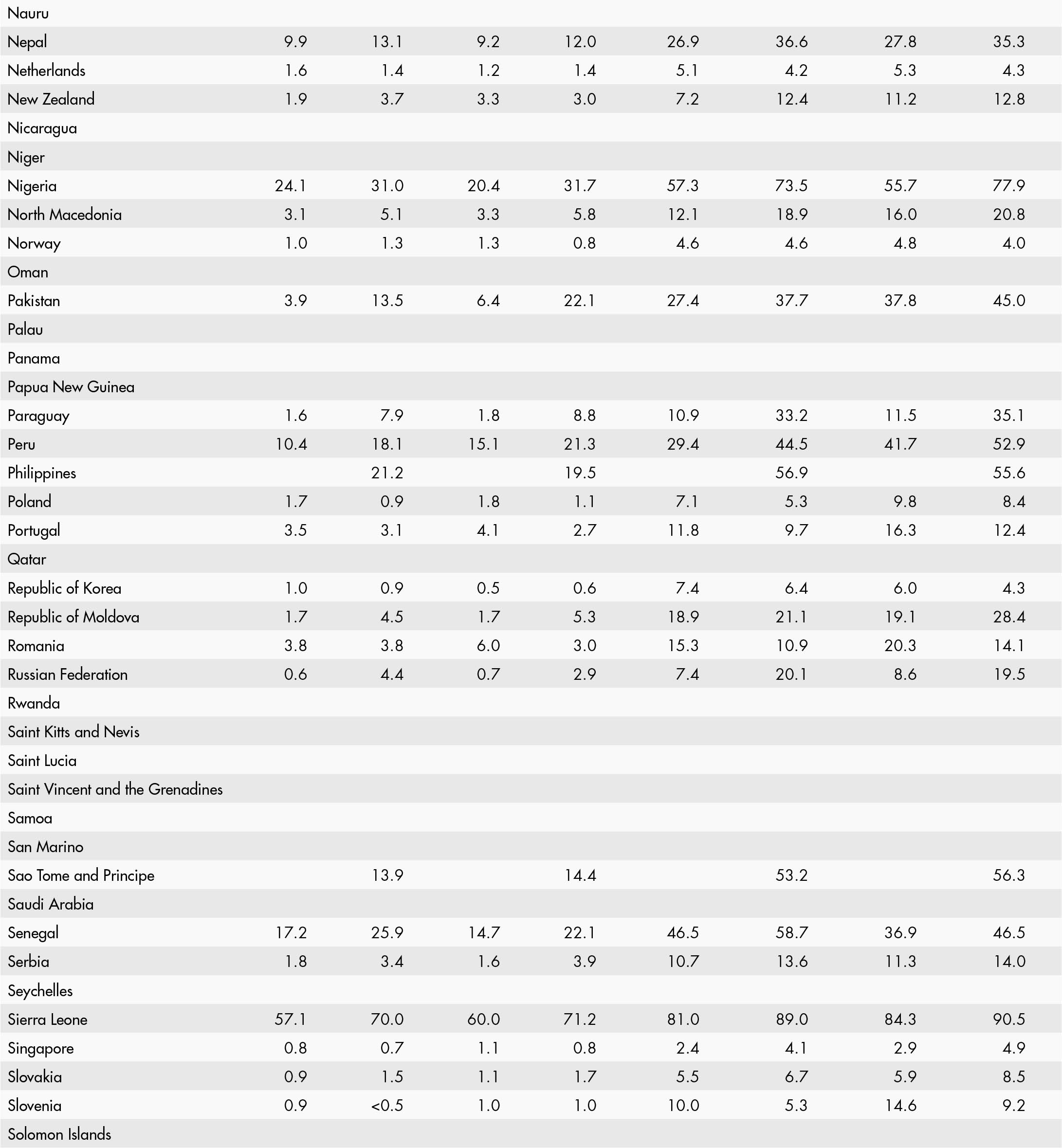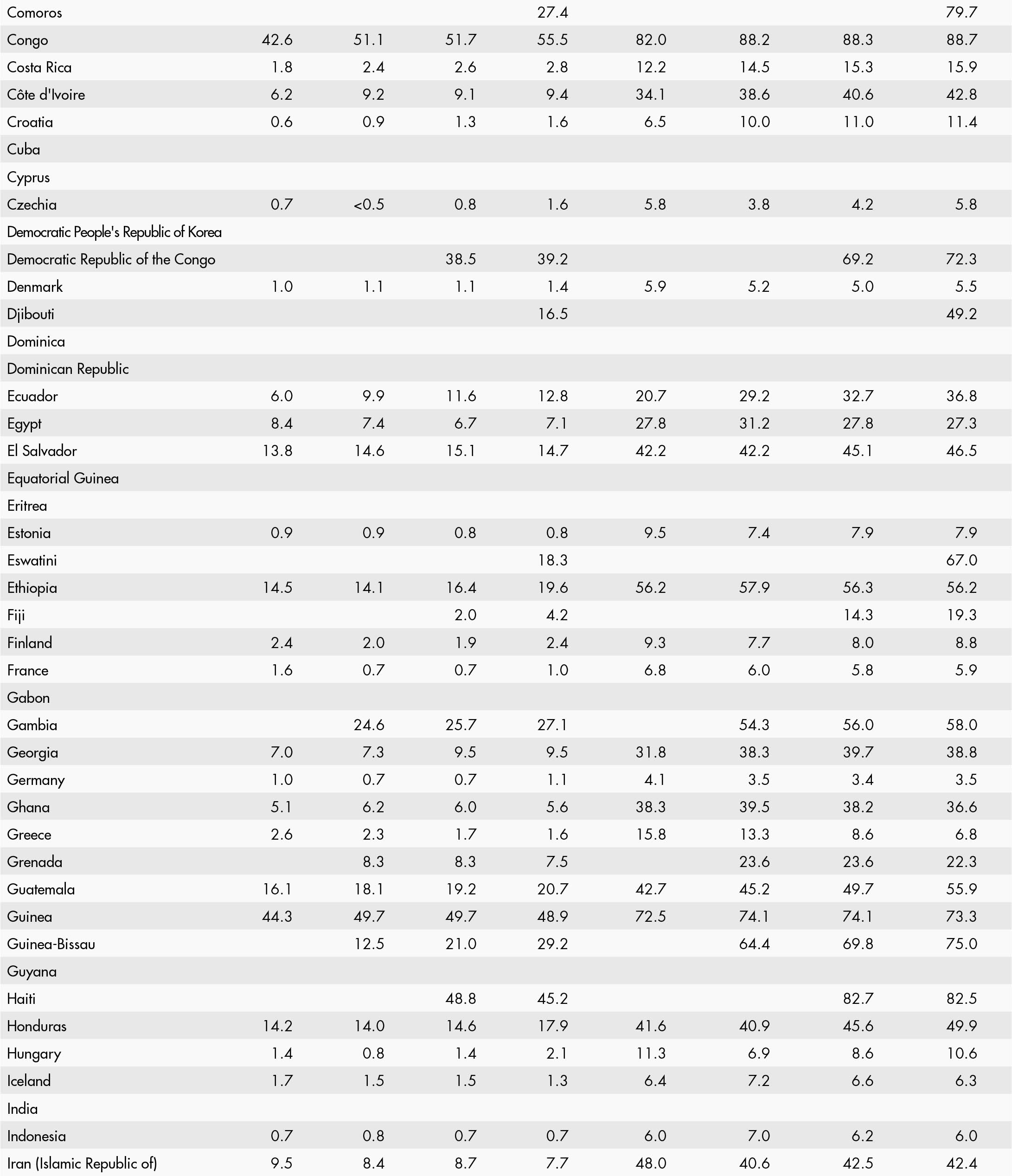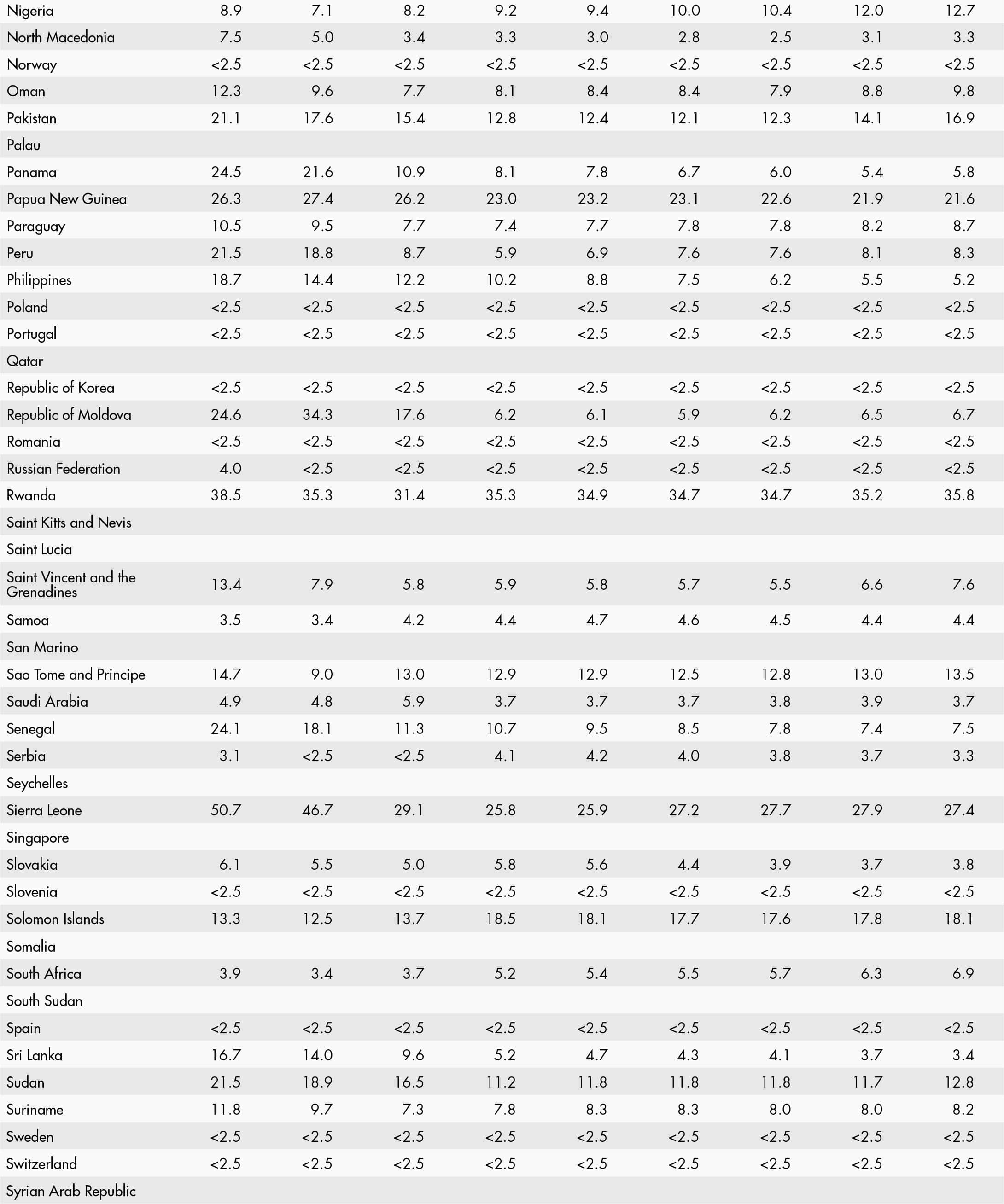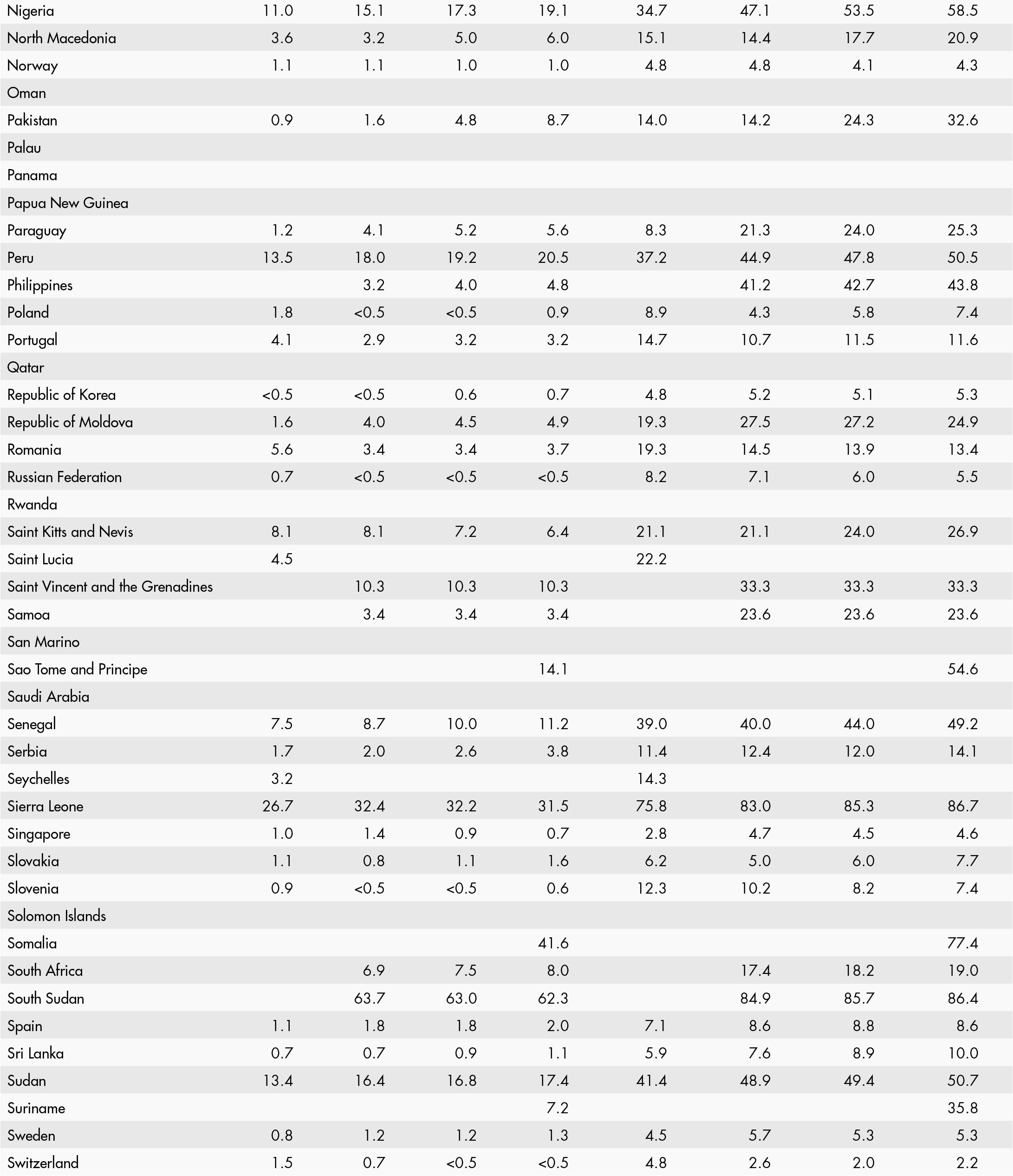 • When country data have not been reported for the reference year, an asterisk (*) on the year label indicates that the value for the most recent year available is shown. For example, 2018–2020* means that the most recent value for the period from 2018 to 2020 is shown.