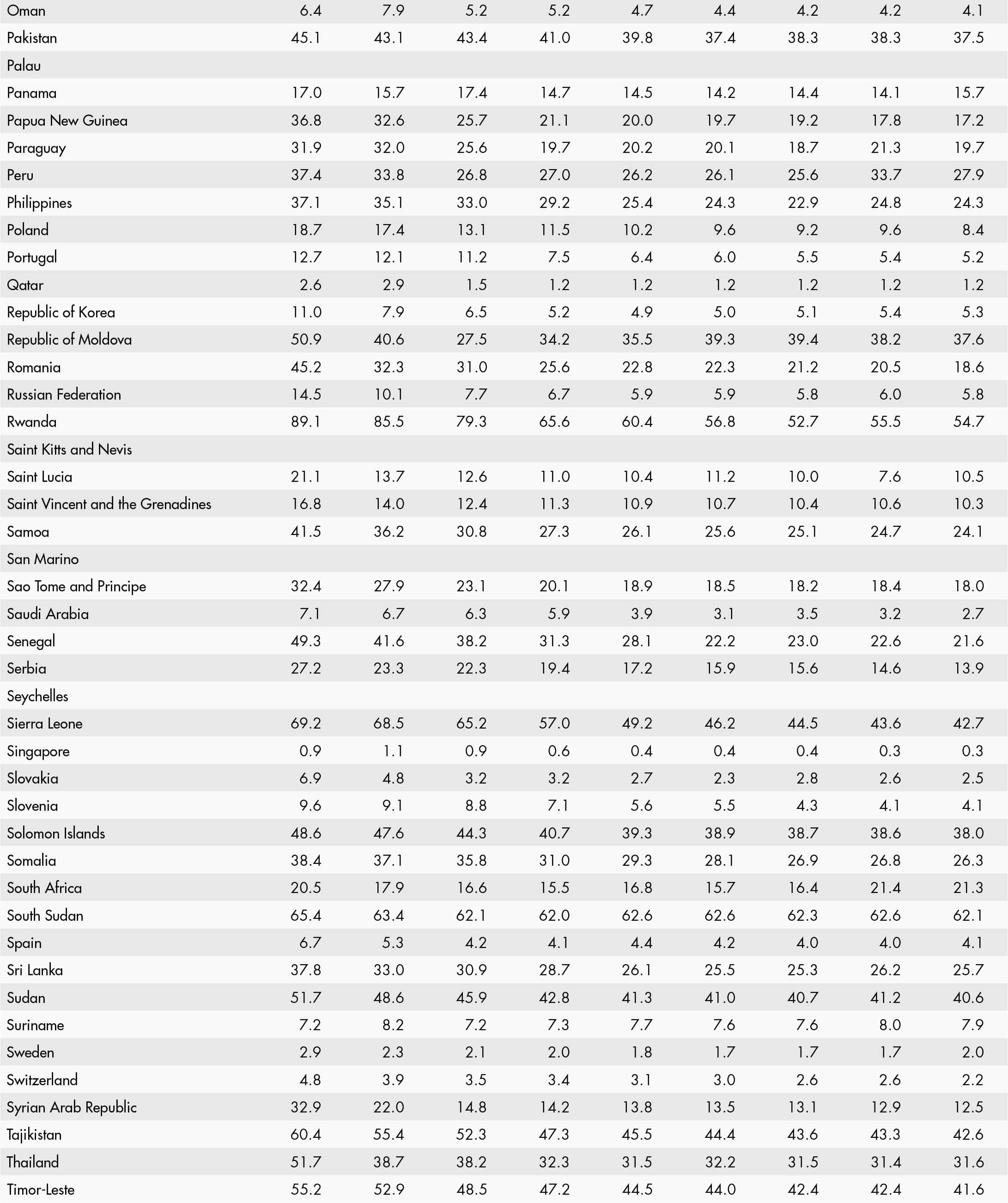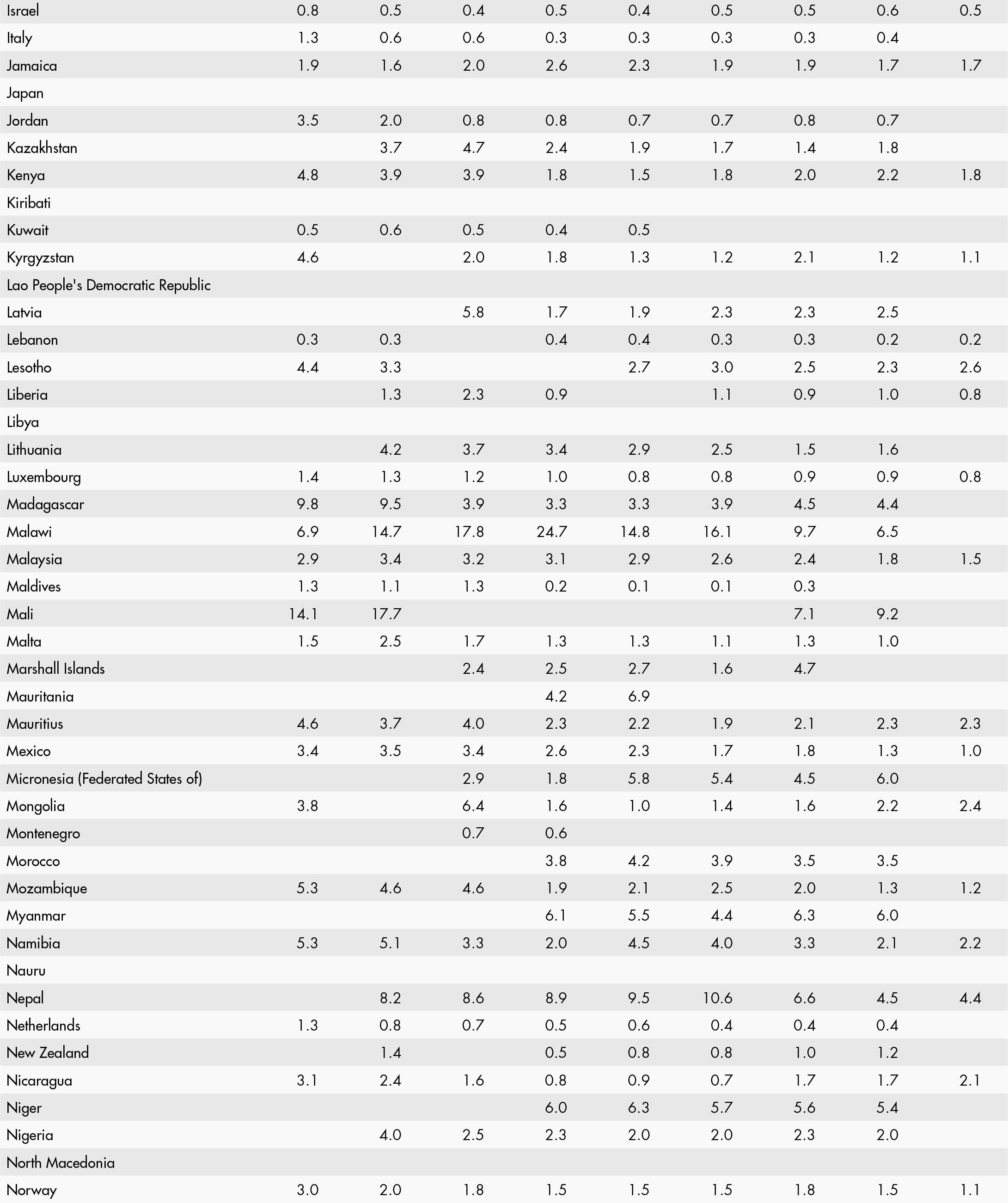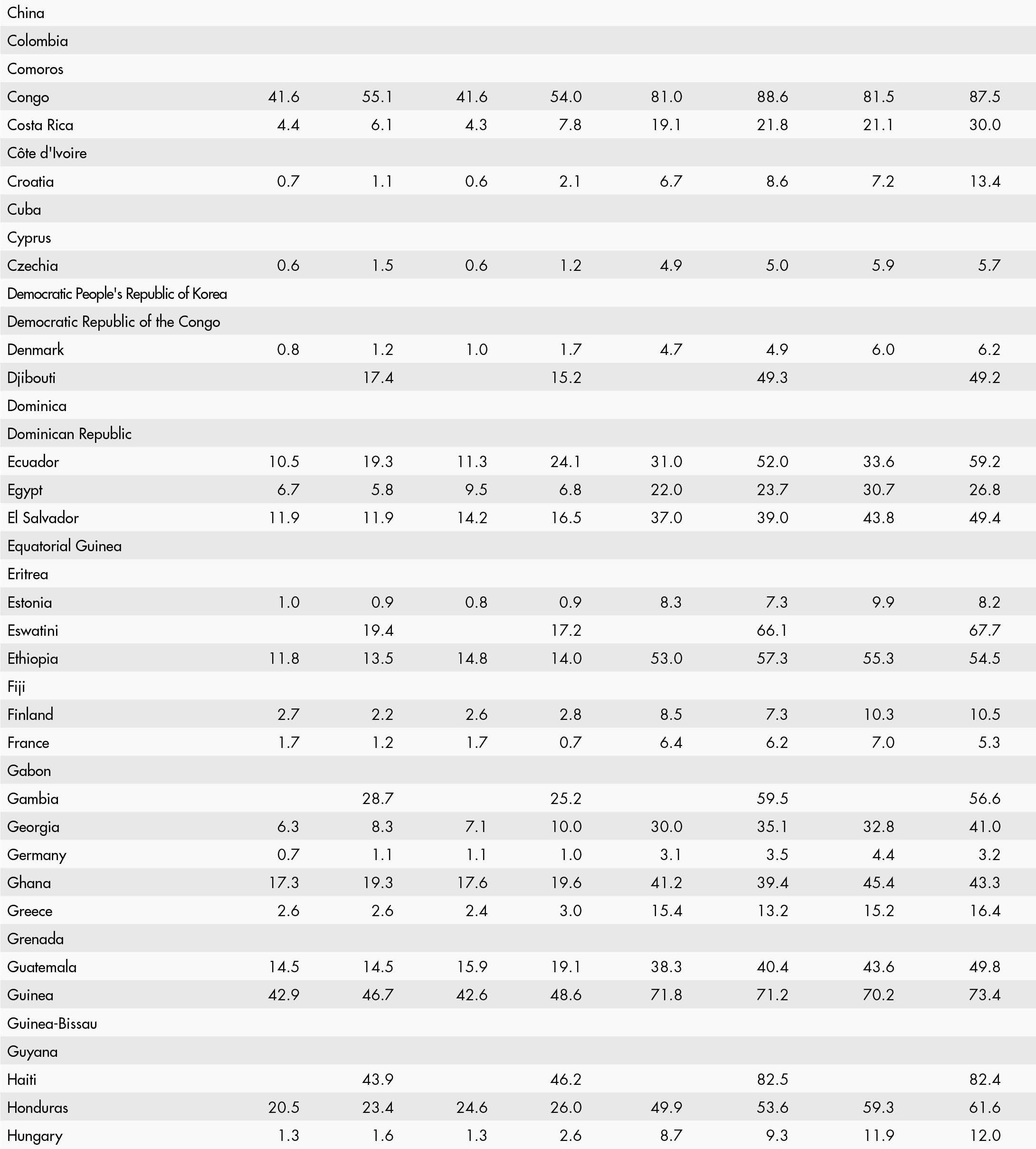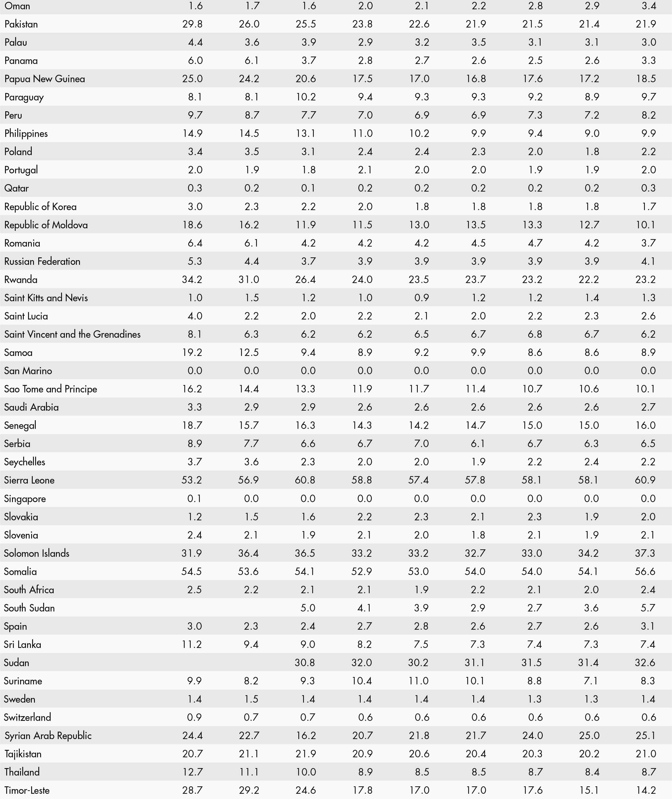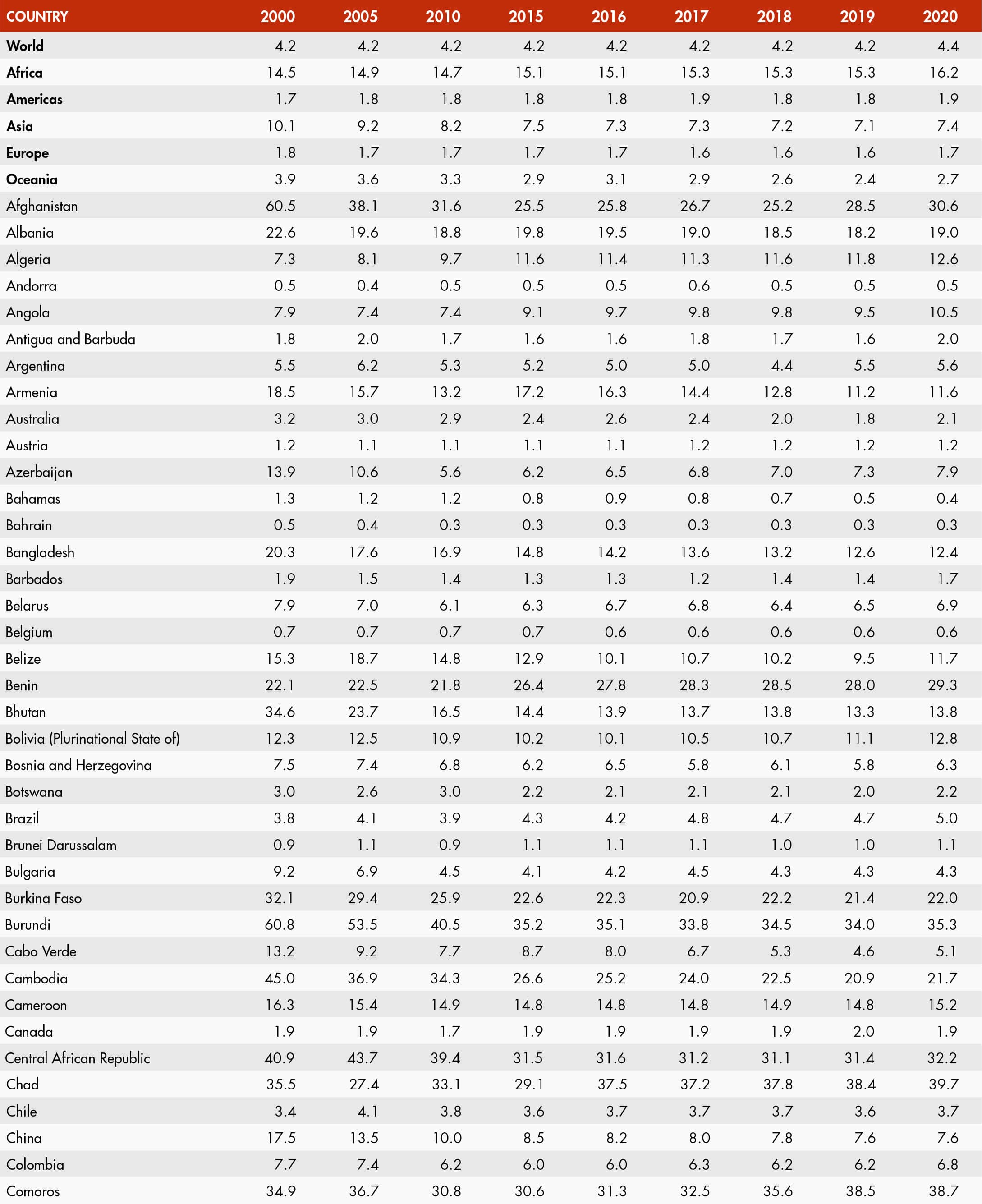 • When country data have not been reported for the reference year, an asterisk (*) on the year label indicates that the value for the most recent year available is shown. For example, 2018–2020* means that the most recent value for the period from 2018 to 2020 is shown.