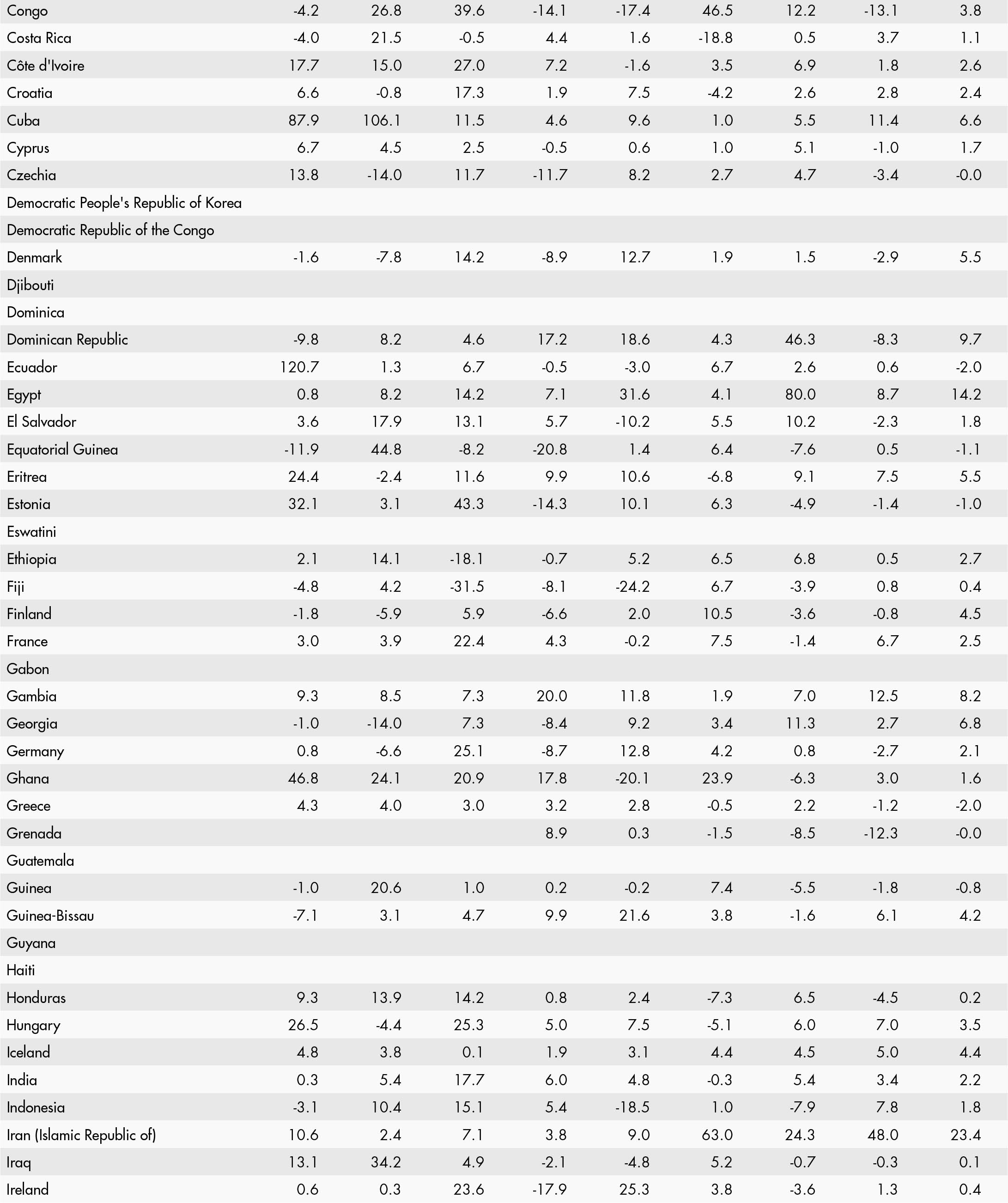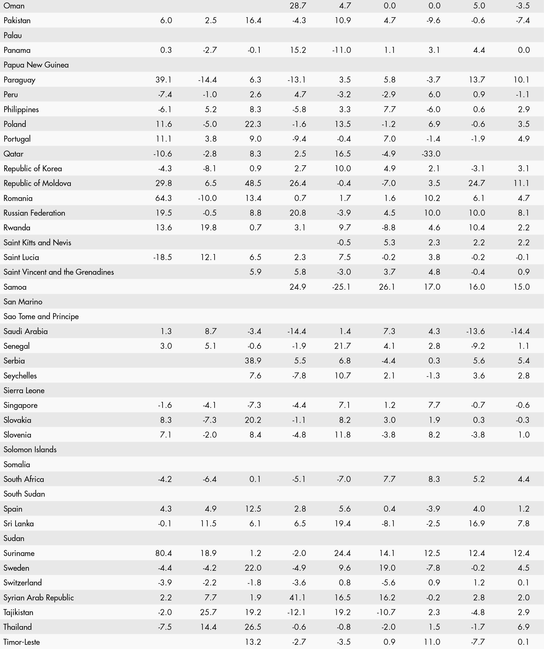 45. Annual changes in prices received by farmers, top and bottom countries (2021)