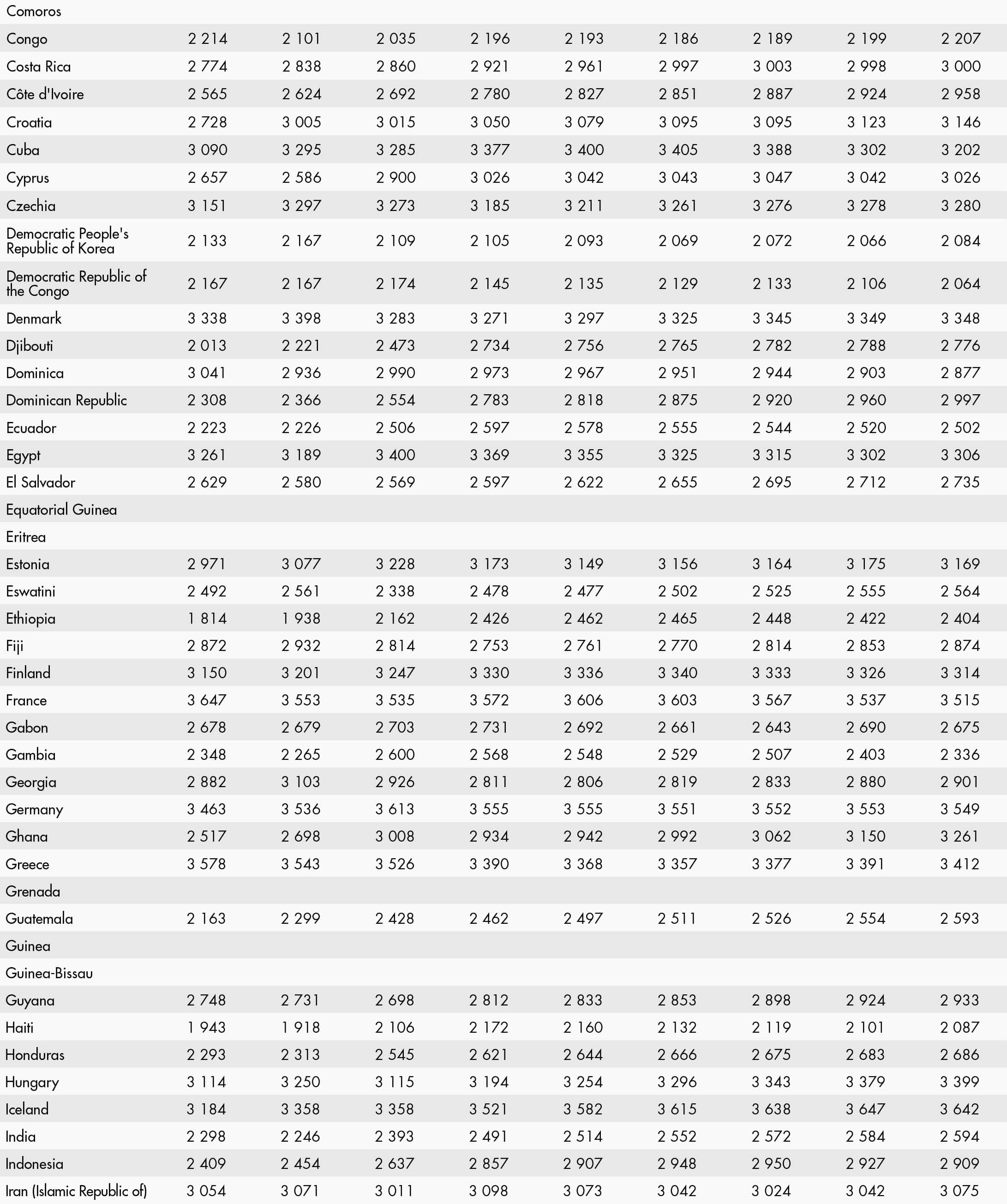 The figures for the dietary energy supply average are based on the latest available data from national food balance sheets and represent the amount of food available for human consumption.