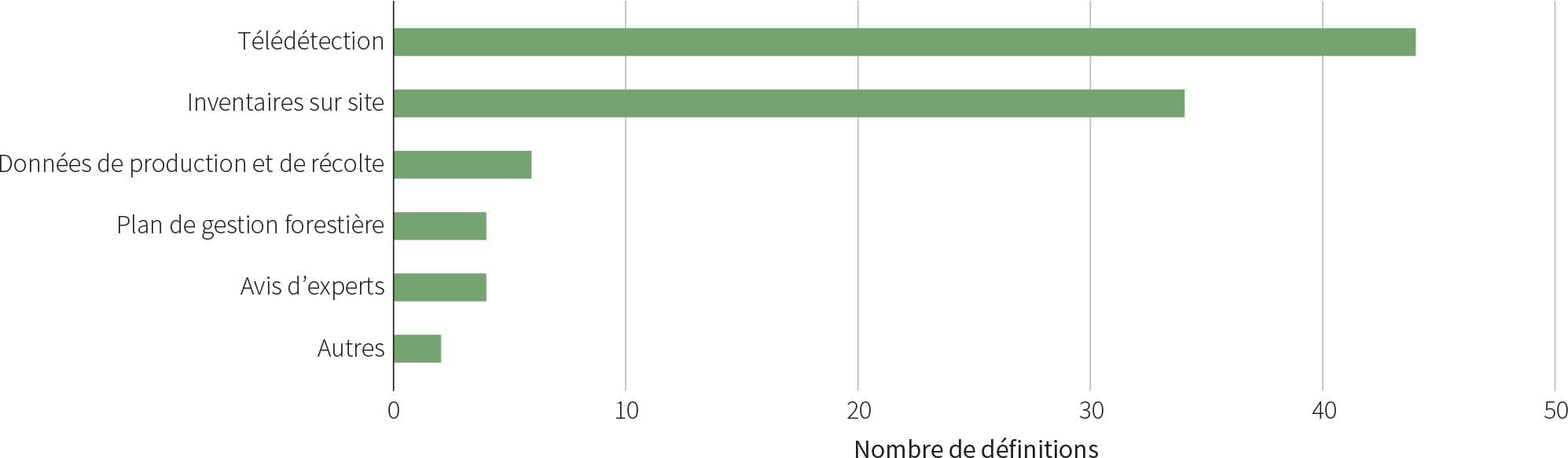 La dégradation des forêts n’est pas toujours définie de la même façon dans les travaux scientifiques et les publications sur les politiques, du fait non seulement de différences biophysiques selon les types de forêts mais aussi de divergences dans les perceptions, les objectifs et les valeurs. Pour clarifier les débats sur ce sujet et faciliter l’établissement des futurs rapports sur la dégradation des forêts, les organes directeurs de la FAO ont recommandé que l’Organisation «[mène] des débats avec les Membres, ainsi que les organisations internationales pertinentes, selon qu’il convient, pour définir la “dégradation forestière” dans le cadre du processus d’évaluation des ressources forestières». Pour donner suite à cette recommandation, l’équipe de l’Évaluation des ressources forestières mondiales 2025 a réuni des informations sur la dégradation des forêts dans le cadre du processus d’établissement des rapports. Il a été demandé aux pays et aux territoires de fournir des informations sur l’existence de définitions nationales et sur leurs caractéristiques, l’existence de systèmes de suivi et les méthodes utilisées, ainsi que la superficie estimée de forêts dégradées.