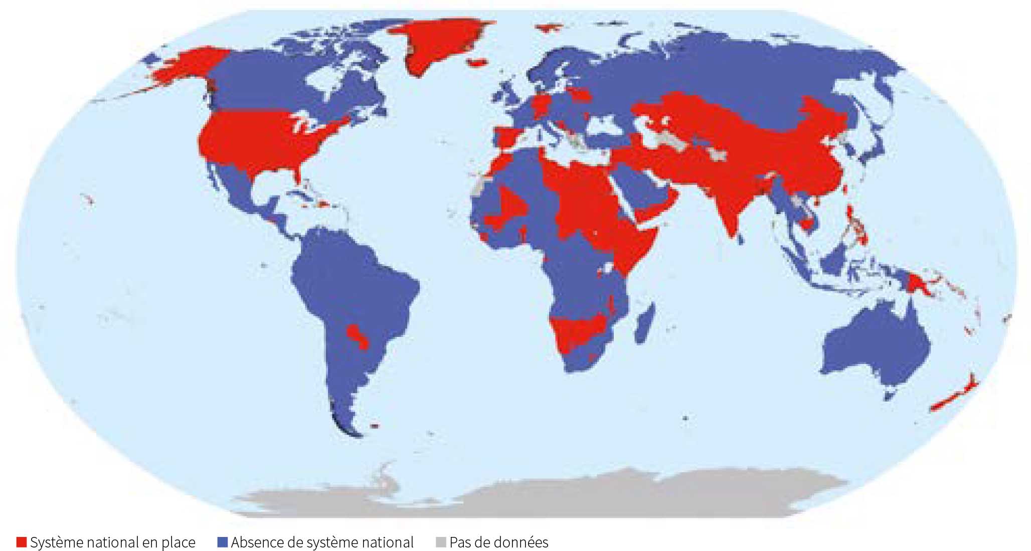 Sur les 236 pays et territoires, 102 (43 pour cent) – représentant 77 pour cent de la superficie forestière mondiale – ont mis en place un système national de traçabilité des produits ligneux (figures 54 et 55). Quarante et un pays et territoires (17 pour cent) ont établi des systèmes de traçabilité infranationaux (figure 56).