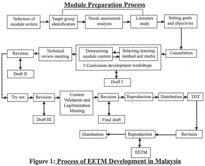 The EETM of Malaysia was presented at a regional EETM workshop in Denpasar, Indonesia, in October 1995. The workshop participants made comments on the module layout, use of icons, addition of more information on the background of the module, in order to prepare a preface to capture the process of module development and to include a brief write-up of the module writers to add further credibility to the module. All these comments and suggestions were incorporated into the Malaysian EETM.