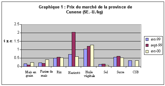 Accès des résidents à la terre : Les résidents ont généralement eu mieux accès à leurs terres cultivables pendant la période allant de septembre à mars 1999/2000 que lors de la même période en 1998/99. Néanmoins, à l'exception de Namibe et de Cabinda, l'accès limité a continué de peser sur la production dans toutes les provinces. Cette situation a été encore aggravée par l'infertilité des sols à proximité de nombreuses capitales provinciales et par une pénurie d'outils, de semences et d'engrais, en particulier dans les provinces enclavées qui ne sont pas accessibles par route (mauvaises conditions des routes et/ou des ponts, présence de mines, attaques de bandits et/ou rebelles, etc.).