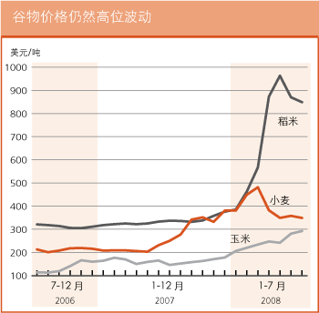 要点预测2008年世界谷物产量将增长2.8%,至创纪录的21.80亿吨。增量的大部分来自小麦,原因是所有区域小麦播种面积都有大幅增加。预计粗粮产量与去年的丰产水平相当,但低于先前预期,原因是世界最大生产国和出口国美国发生了严重洪涝。初步预测稻米产量将比去年的好水平略有增长。 尽管世界产量预期增长,但2008/09年度谷物市场仍将紧张。谷物供应总量(结转库存量加上产量)仅勉强高于预期利用量,世界谷物库存量与当前估计为30年来低点的水平相比将仅略微有所回升。 美国玉米供应量紧张对主要谷物品种的价格形成支撑,国际谷物价格仍处高位。近几周玉米出口价格攀升至创纪录新高,比一年前的水平翻了一番。尽管存在季节性收获压力,但小麦价格仅有小幅走弱,仍比一年前高约40%。在5月份创下高点之后,6月和7月初稻米出口价格回落,原因是主要出口国出口供应量增加;但稻米价格比一年前的水平高了近三倍。 预测2008年低收入缺粮国作为一个整体的谷物产量将小幅增长,增幅仅为1.2%。若不包括中国和印度这两个最大国家,则其他国家的增幅甚至更低,而上年曾出现减产。 在南部非洲,最近收获的主季谷物的收成总体看好,其中南非产量回升,其他若干国家收成良好,但津巴布韦减产,大大低于去年和平均水平。在东部非洲,包括埃塞俄比亚、索马里及肯尼亚和乌干达部分地区在内的若干国家的谷物收成前景不佳。在北部非洲,预计摩洛哥谷物产量比去年因干旱造成的减产水平大幅回升,但突尼斯则出现减产。 在亚洲,区域谷物总产有望接近去年的高水平,中国和印度的丰产抵消了巴基斯坦和伊朗伊斯兰共和国的预计减产还有余。预计阿富汗和塔吉克斯坦的粮食不安全状况将加剧。 在南美洲,主季粗粮作物的收获工作正在进行,预计产量达创纪录水平,原因是播种面积因国际价格上扬而扩大。小麦收成前景喜忧参半;巴西播种面积增加,但政策和天气因素导致阿根廷播种面积减少。