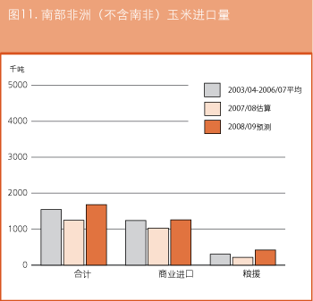 由于对进口的依赖程度很高,北部非洲国家受到国际谷物高价格的严重影响。各国政府采取了一系列旨在抵消国际价格大幅上涨的措施,包括免征关税、价格管制和补贴,这对公共财政造成了较大压力。例如在阿尔及利亚,估计面包补贴制度每月需政府耗资约5000万美元。尽管采取了这些措施,但该次区域通胀仍继续加速:在埃及,2008年4月年同比通胀率达16.4%,而2007年12月为6.9%,主要原因是食品行业价格上涨,食品年同比通胀率从2007年12月的8.6%猛增至2008年4月的22%。小麦产量的预期增长,尤其是在摩洛哥和埃及,有望缓解国际商品价格上涨对这些国家粮食获取渠道的影响。即便是在预测产量大幅下滑的突尼斯,5月份消费者价格指数在近一年中首次出现减速,至5.3%。当地新收成投放市场把食品价格通胀从4月份的8.1%压低至5月份的7.1%。