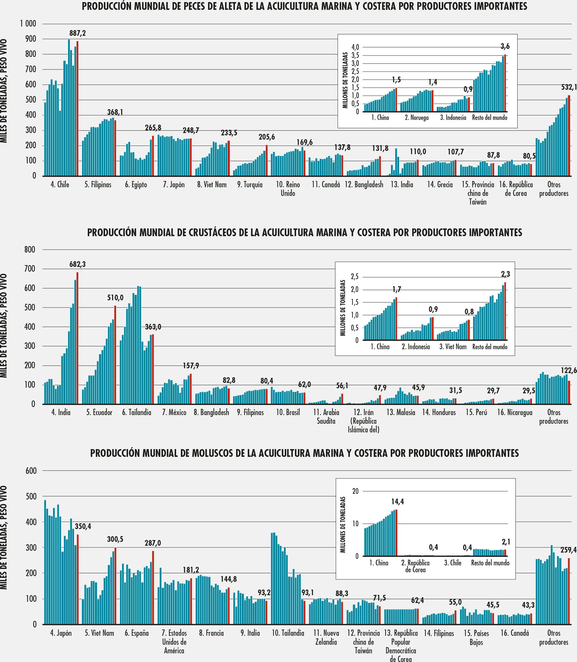 8. Principales especies producidas en la acuicultura mundial