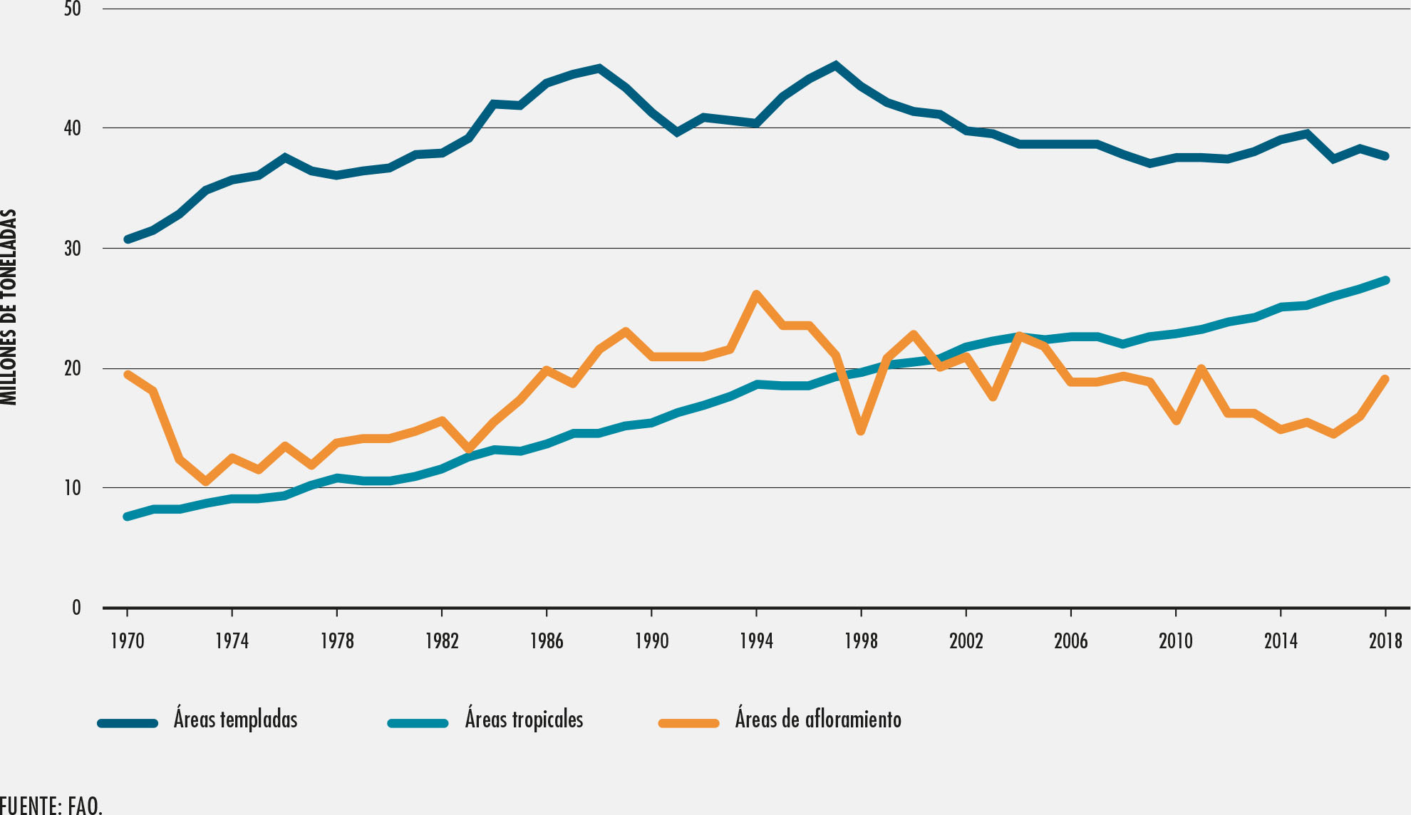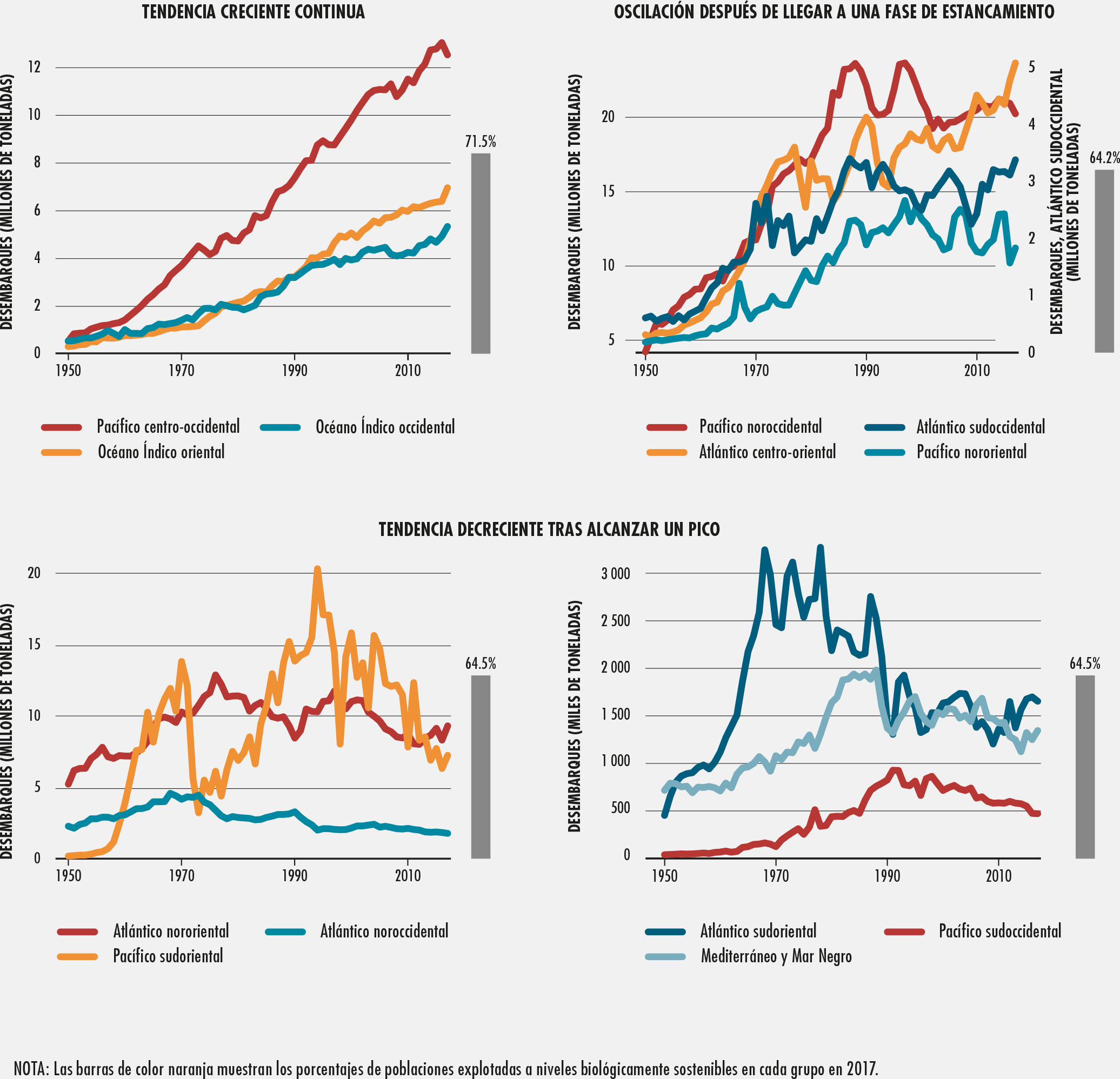6. Tendencias en las tres categorías principales de áreas de pesca