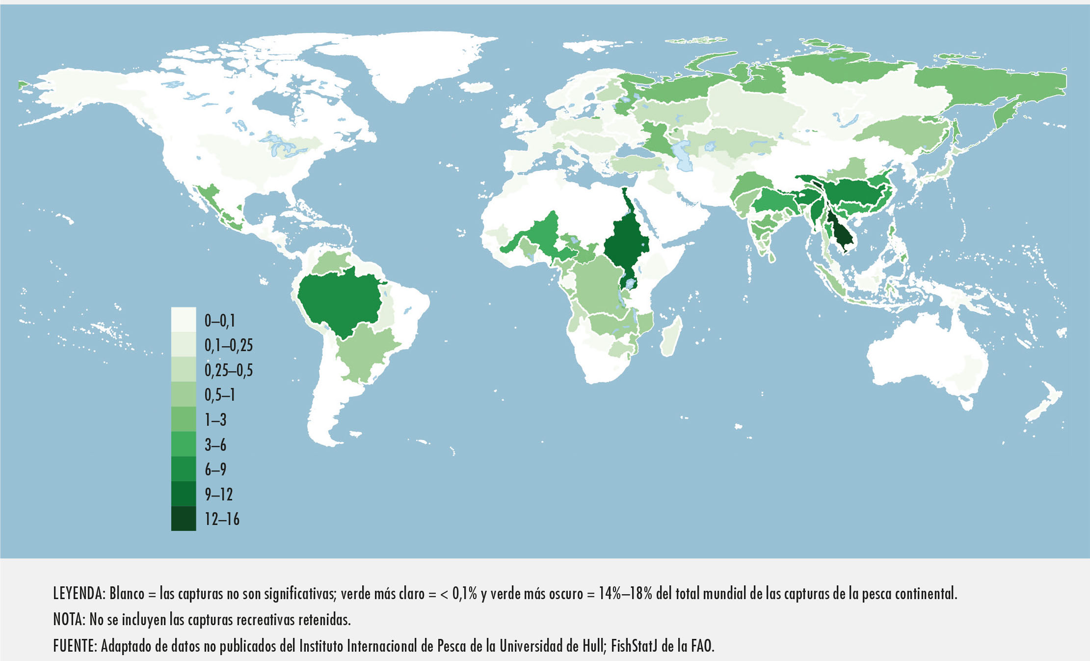 Fluet-Chouinard, E., Funge-Smith, S. y McIntyre, P.B. 2018. “Global hidden harvest of freshwater fish revealed by household surveys”. Proceedings of the National Academy of Sciences of the United States of America, 115(29): 7623-7628.