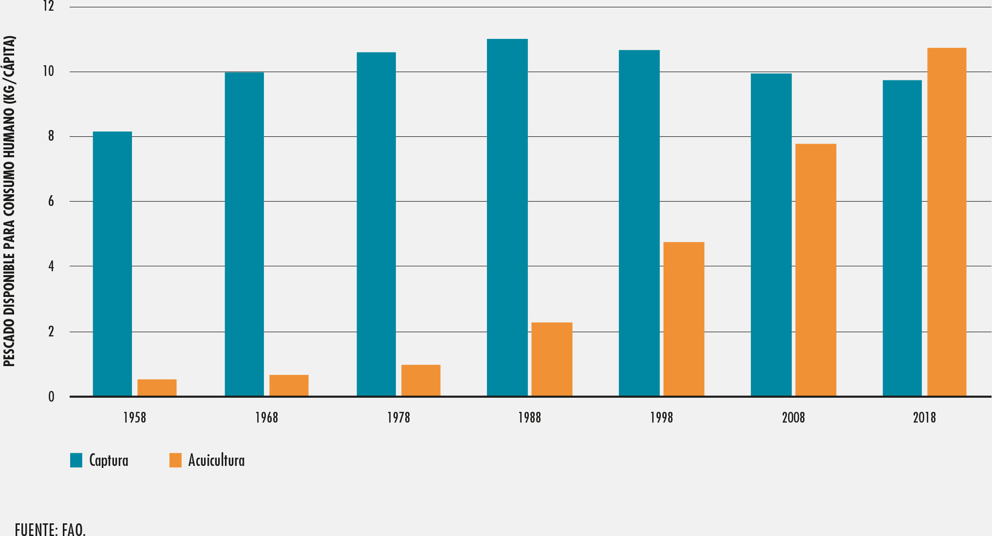 27. Contribución relativa de la acuicultura y la pesca de captura al pescado para consumo humano