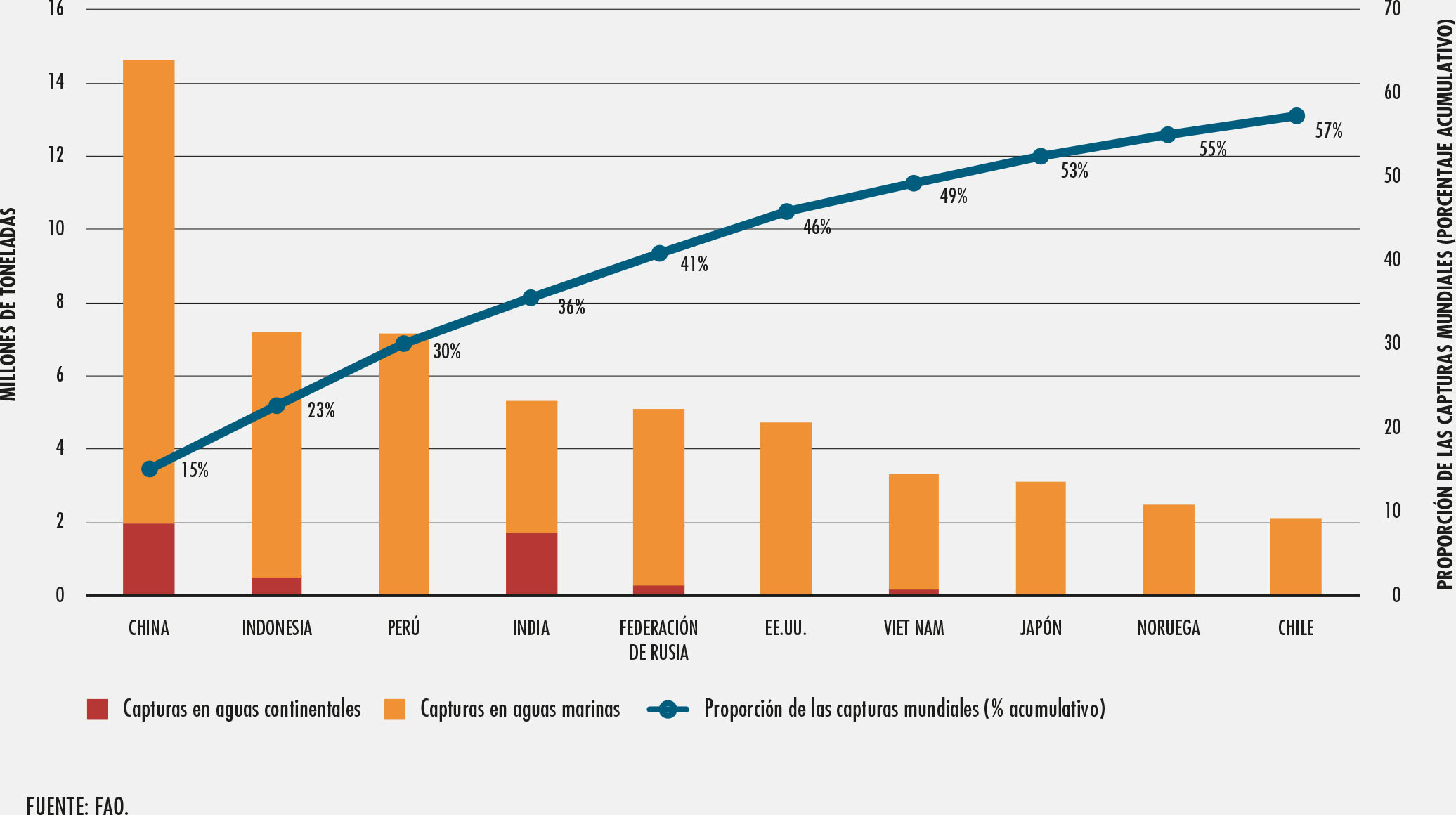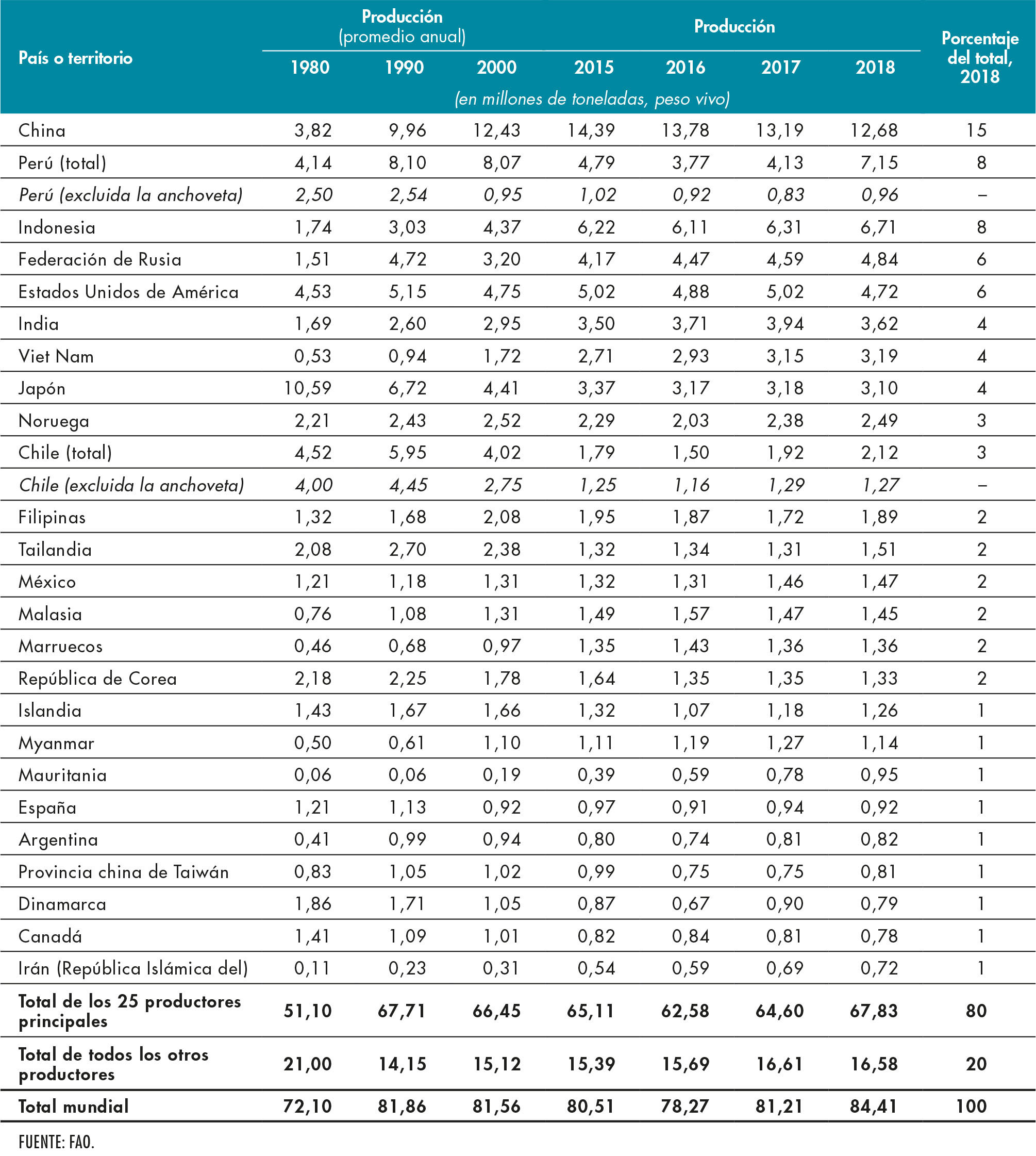 2. Producción de la pesca de captura marina: principales países y territorios productores