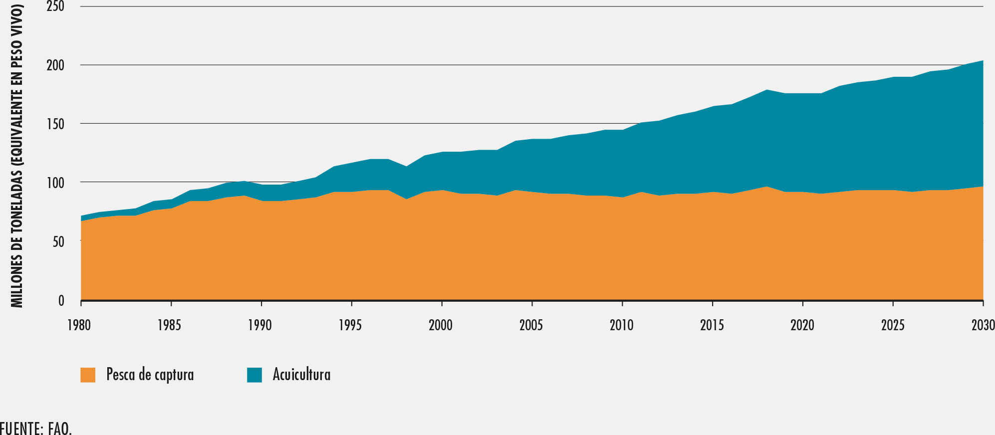 51. Producción mundial de la pesca de captura y la acuicultura, 1980-2030